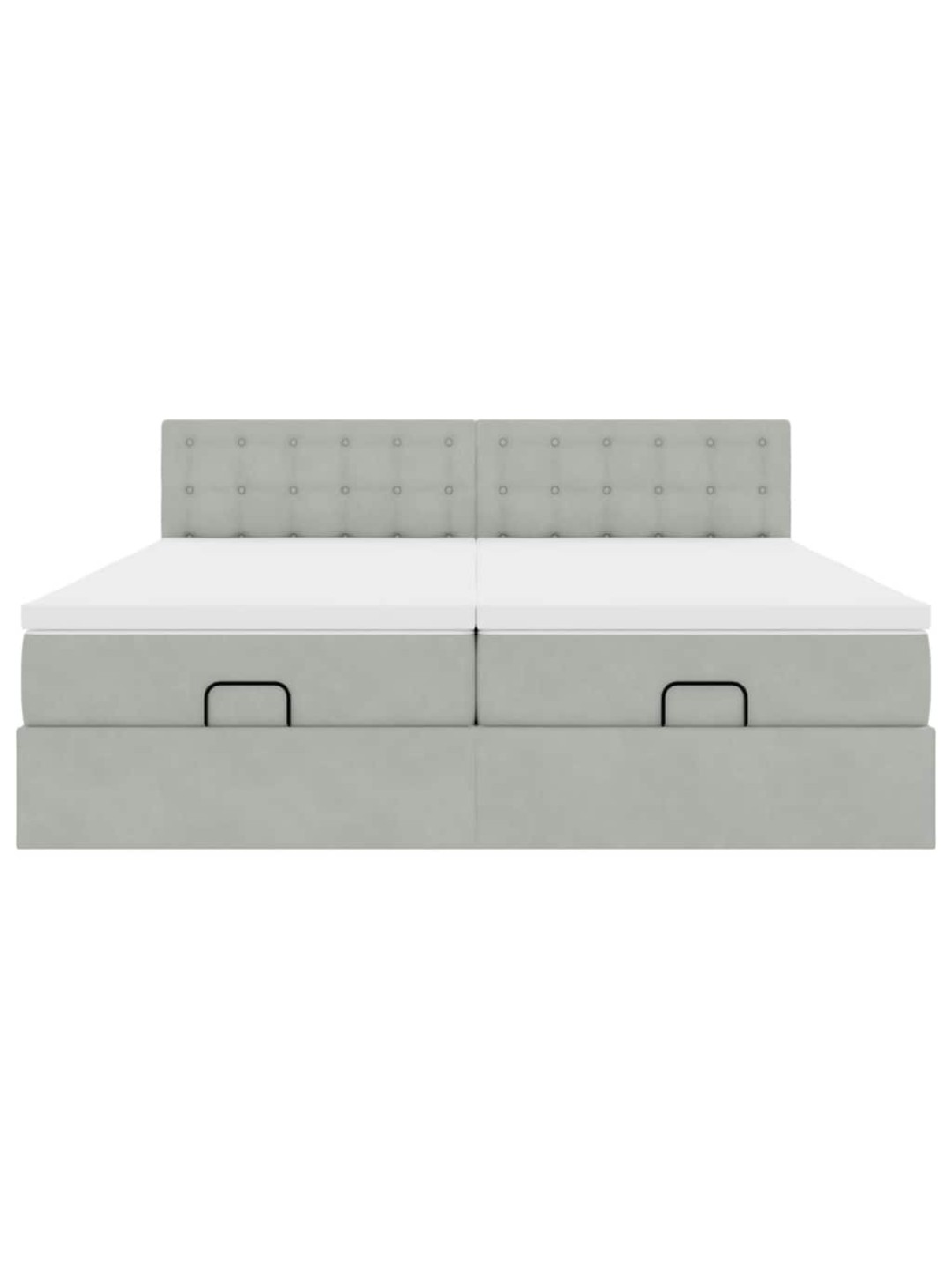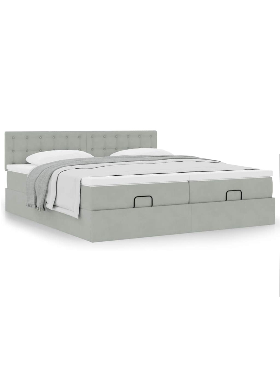 Ottomani voodiraam madratsitega, helehall, 200x200 cm, samet