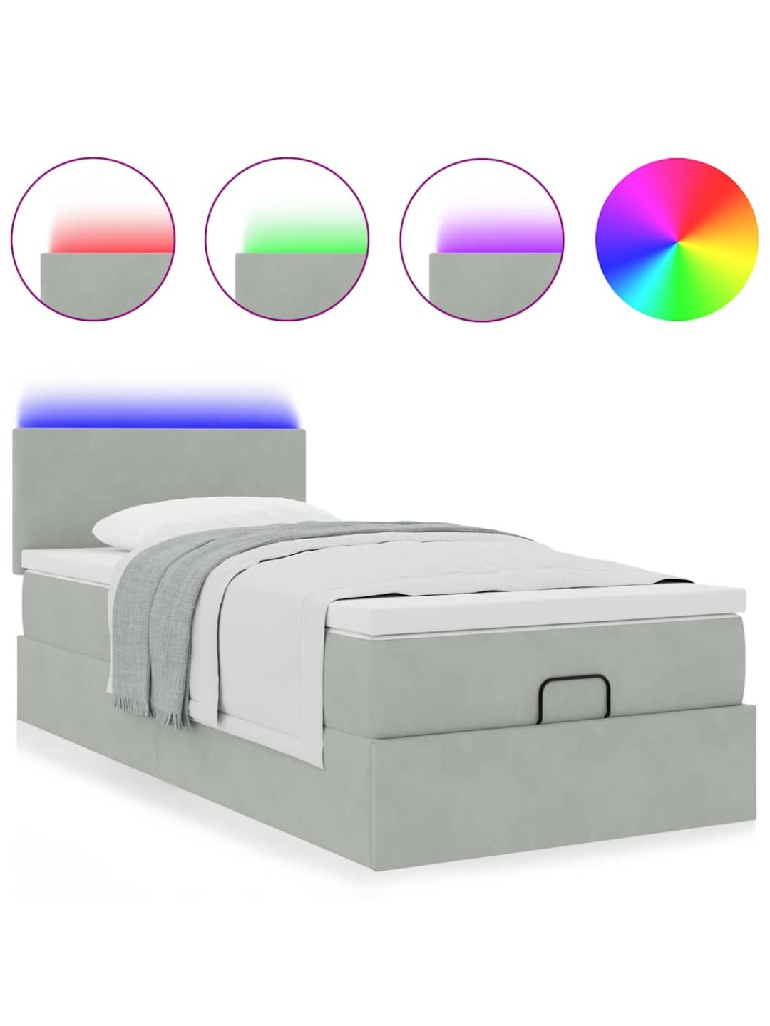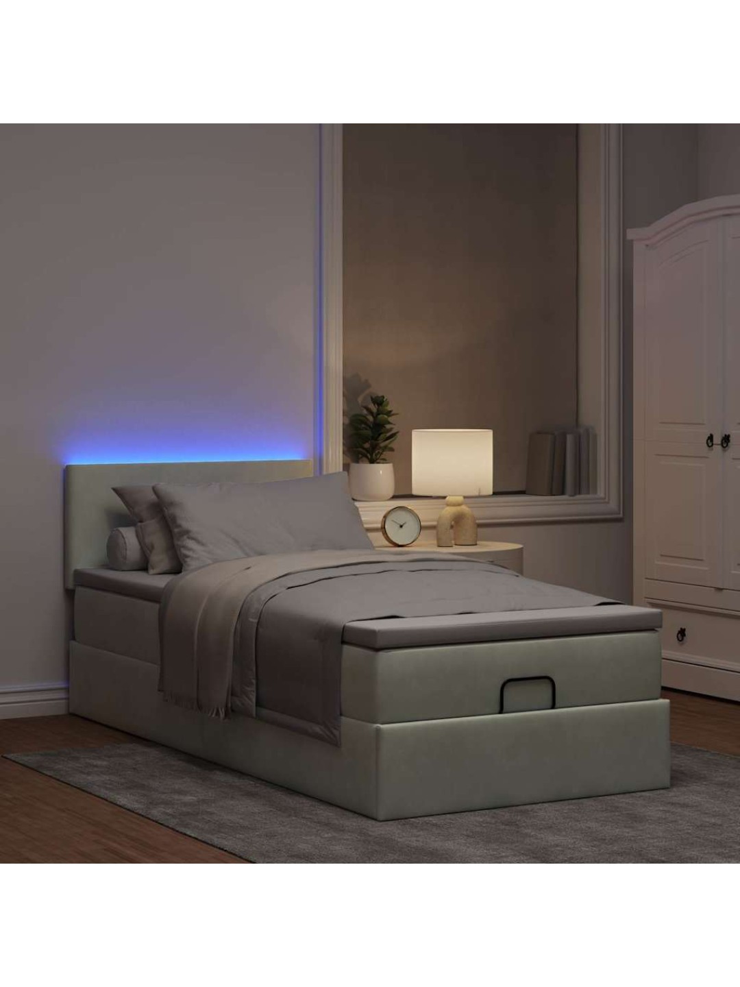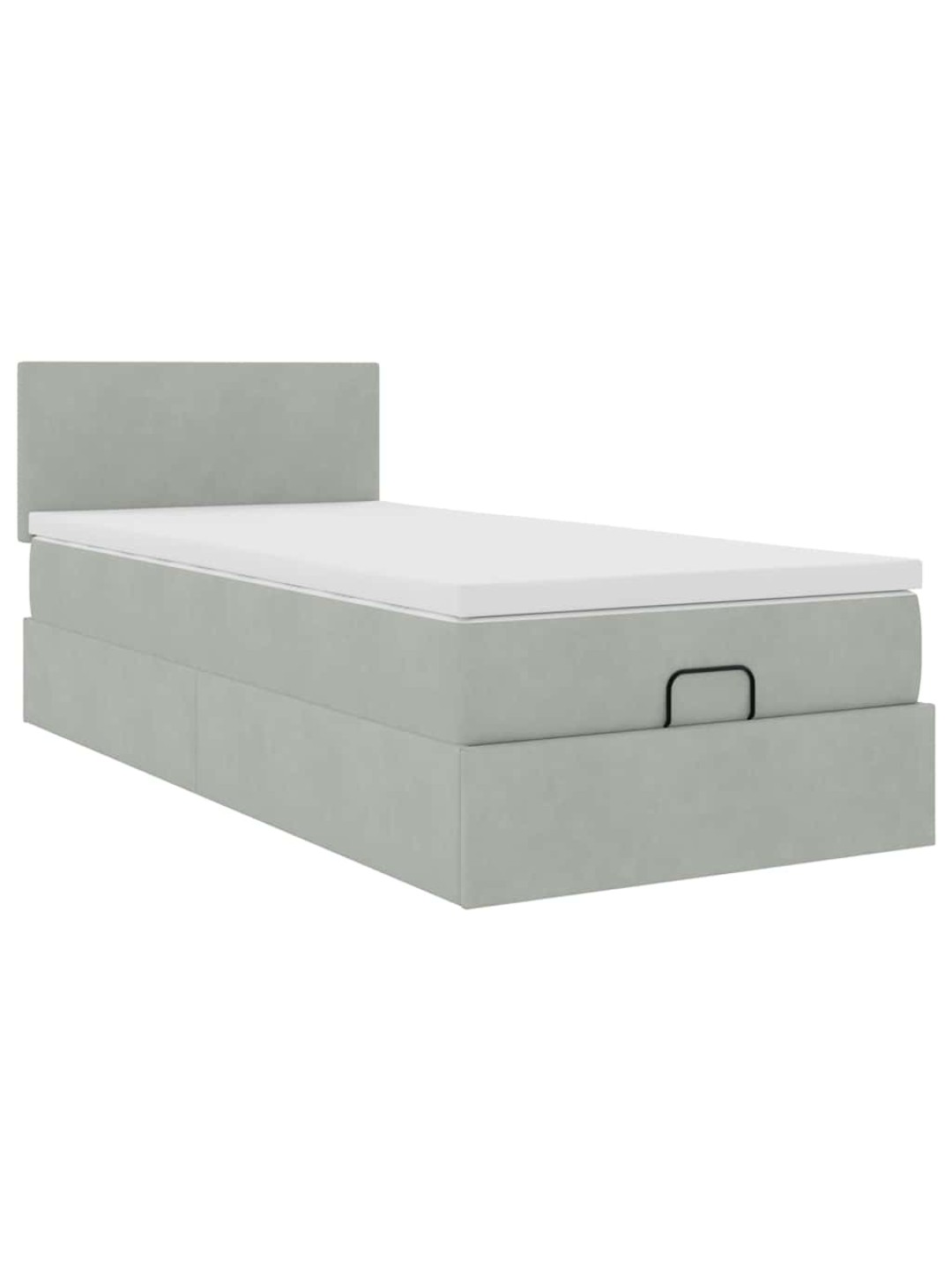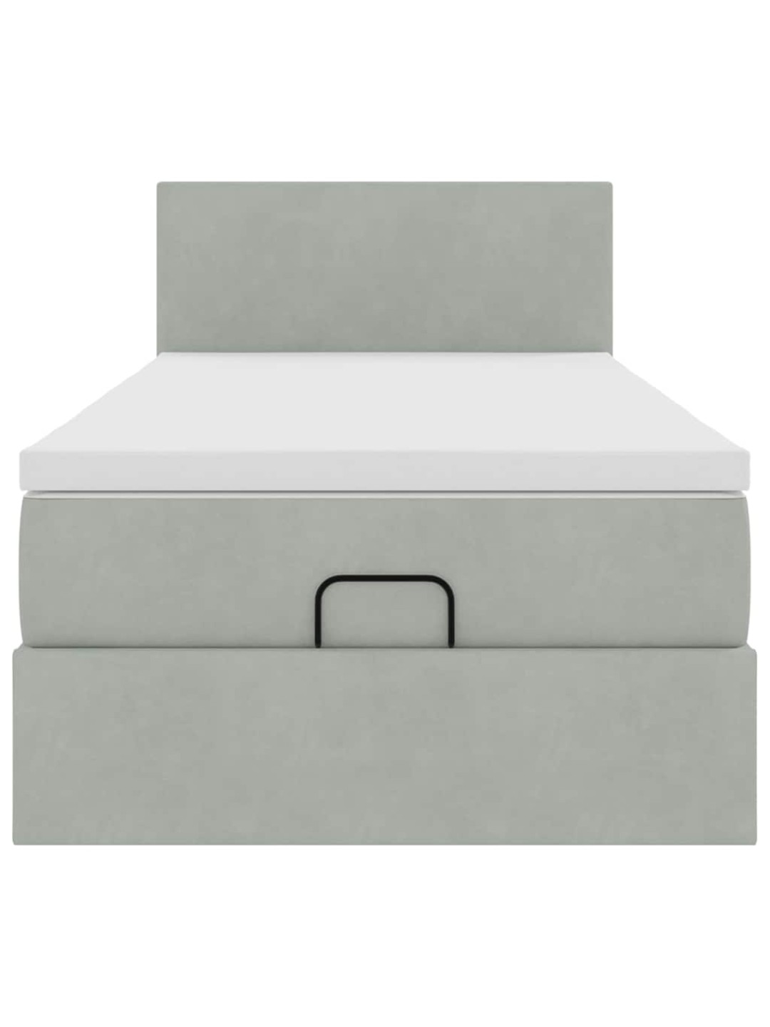Ottomani voodiraam madratsiga, helehall, 80x200 cm, samet