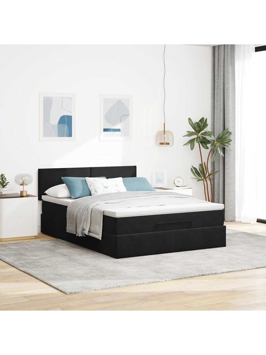 Ottomani voodi madratsiga ja led, must, 140x190cm, samet