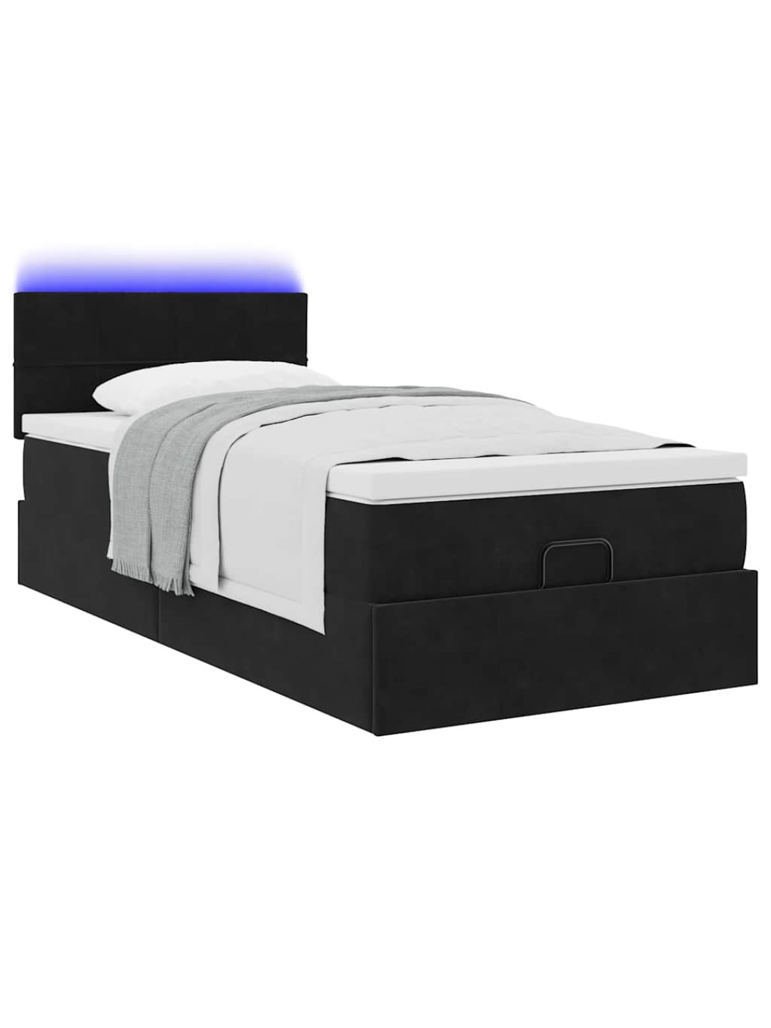 Ottomani voodiraam madratsiga, must, 90x200cm, samet