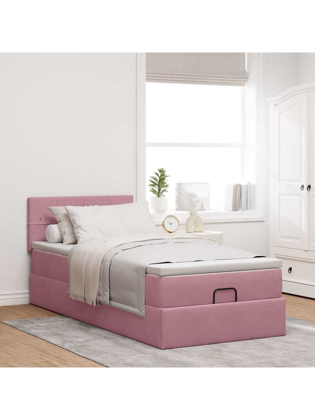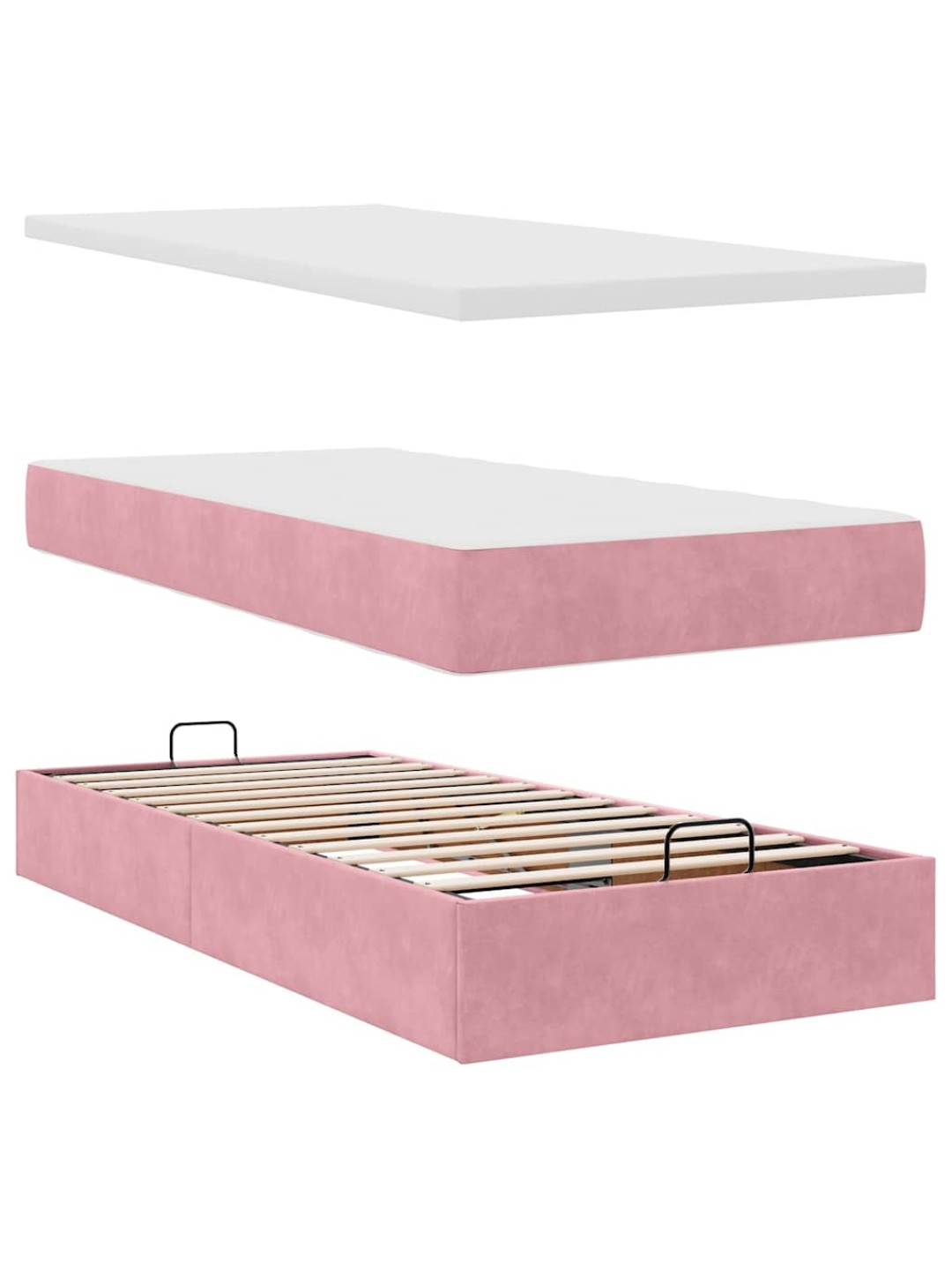 Ottomani voodiraam madratsiga, roosa, 100x200cm, samet