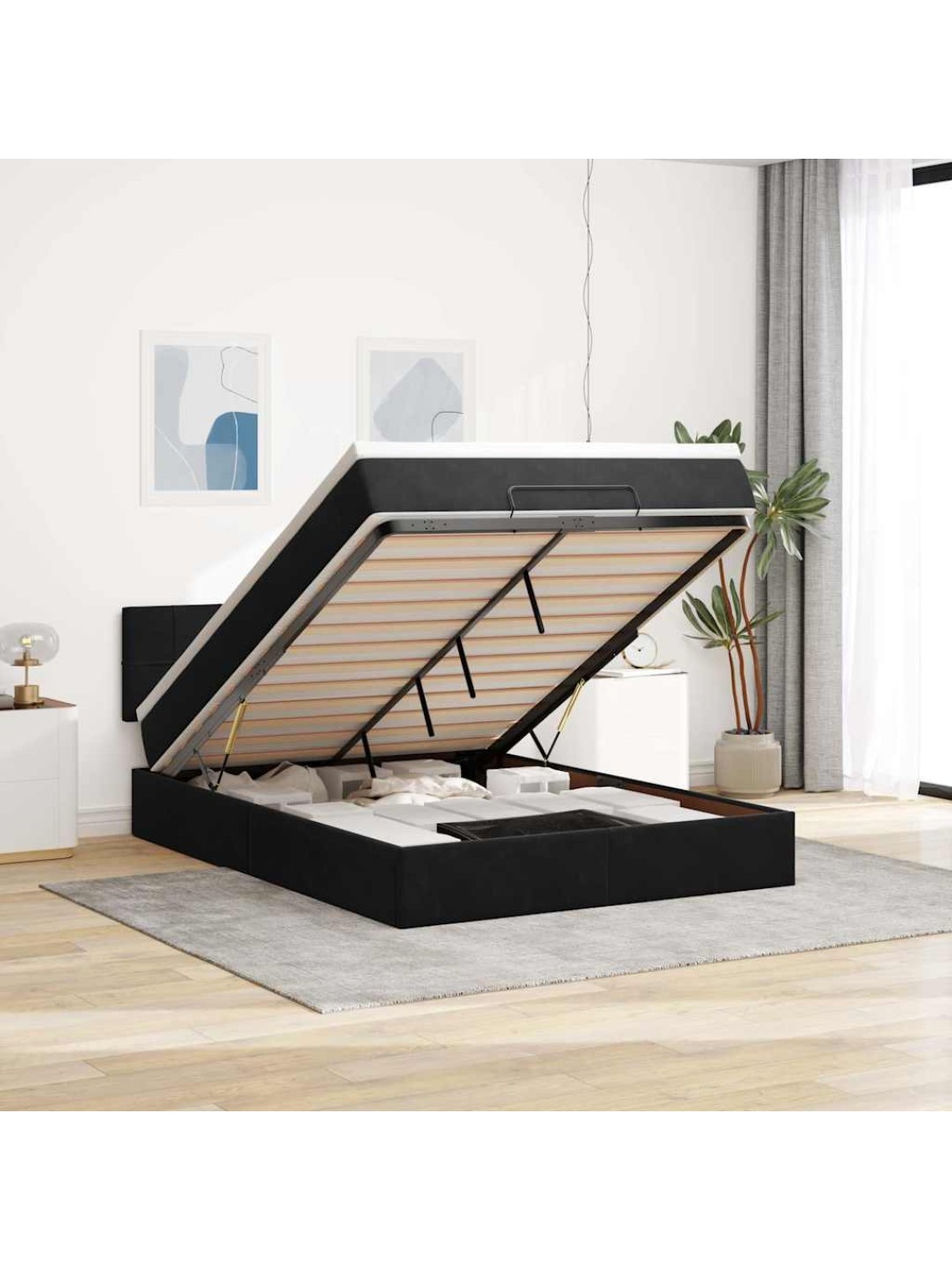 Ottomani voodi madratsiga ja led, must, 140x190cm, samet