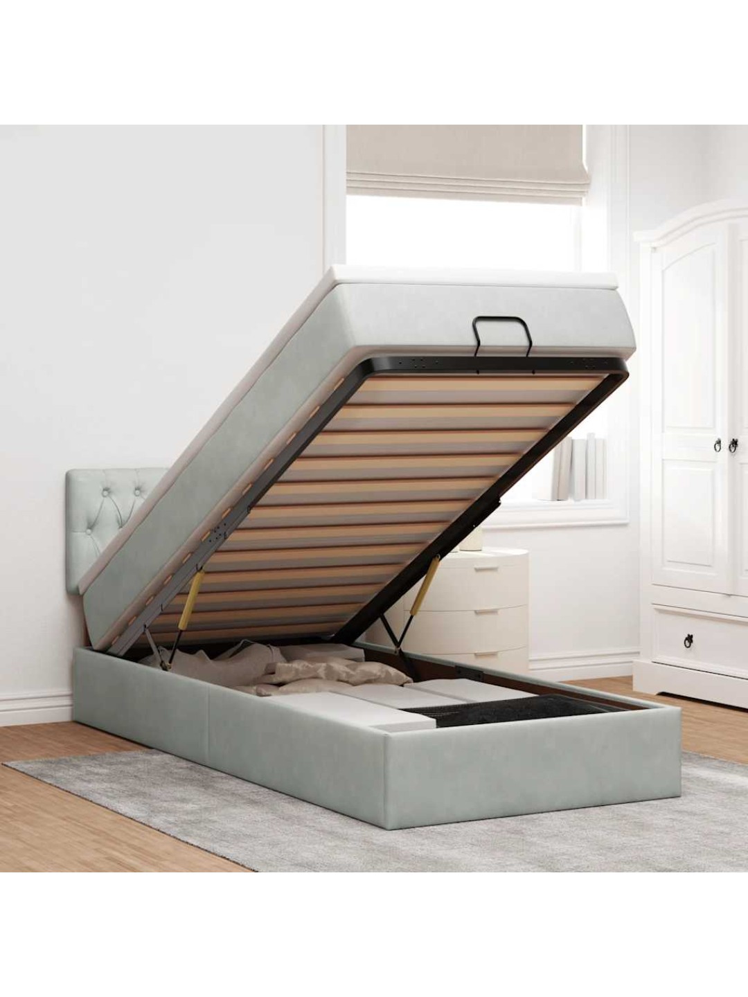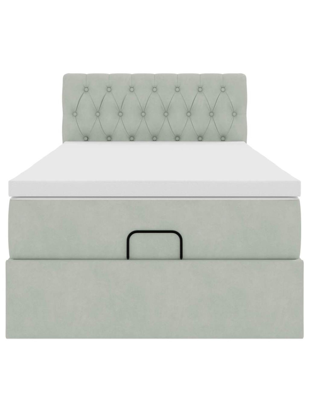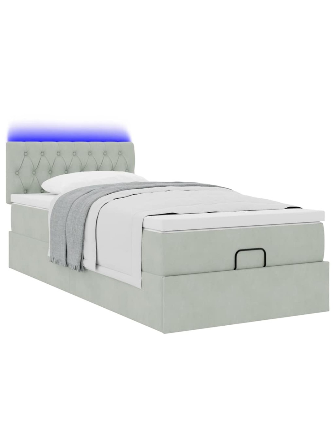 Ottomani voodiraam madratsiga, helehall, 80x200 cm, samet
