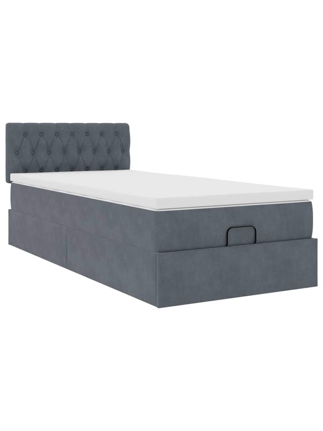 Ottomani voodiraam madratsiga, tumehall, 80x200cm, samet