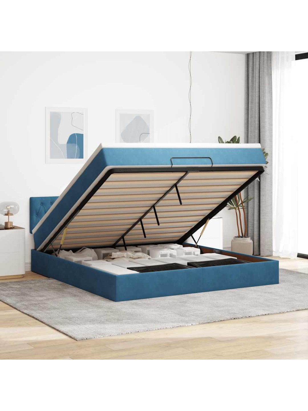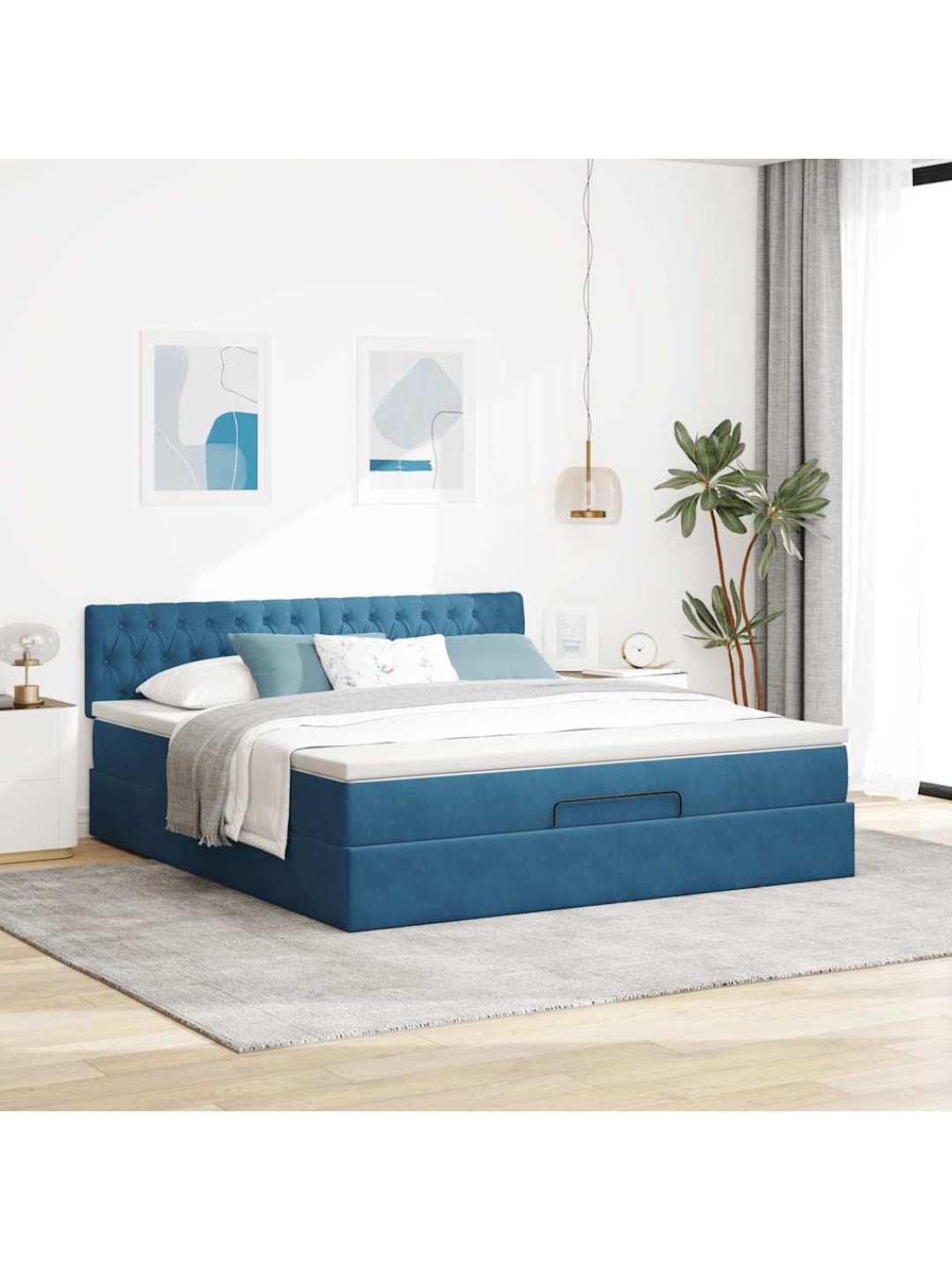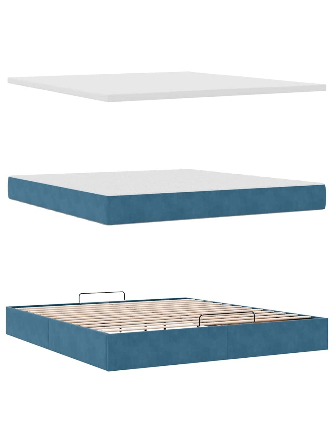 Ottomani voodiraam madratsiga, tumesinine, 180x200 cm, samet