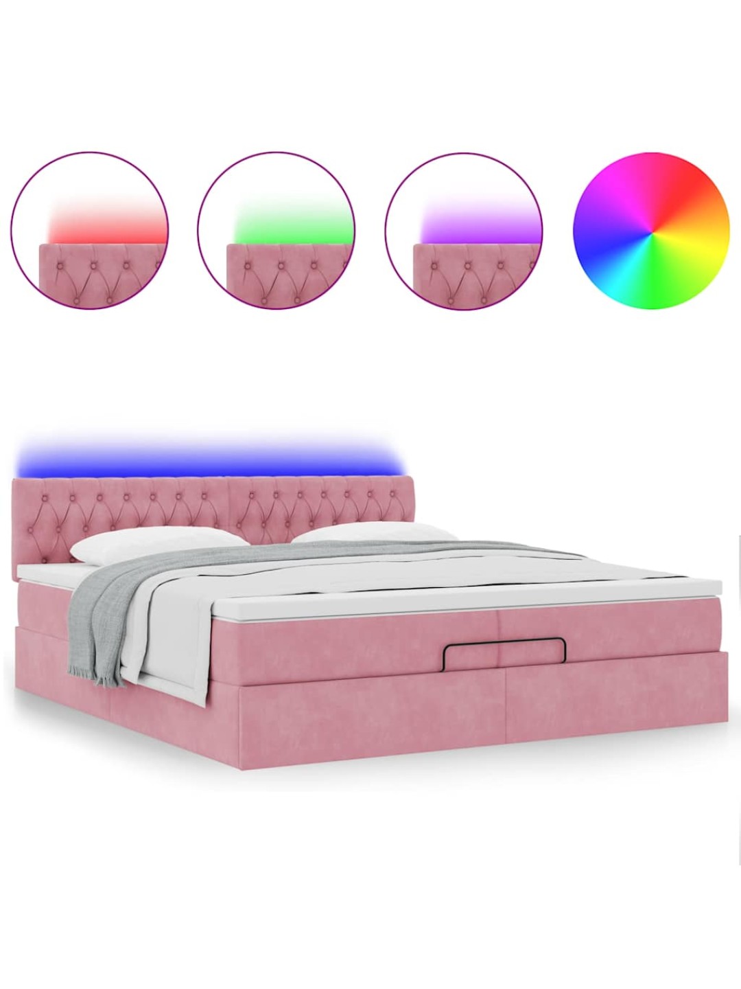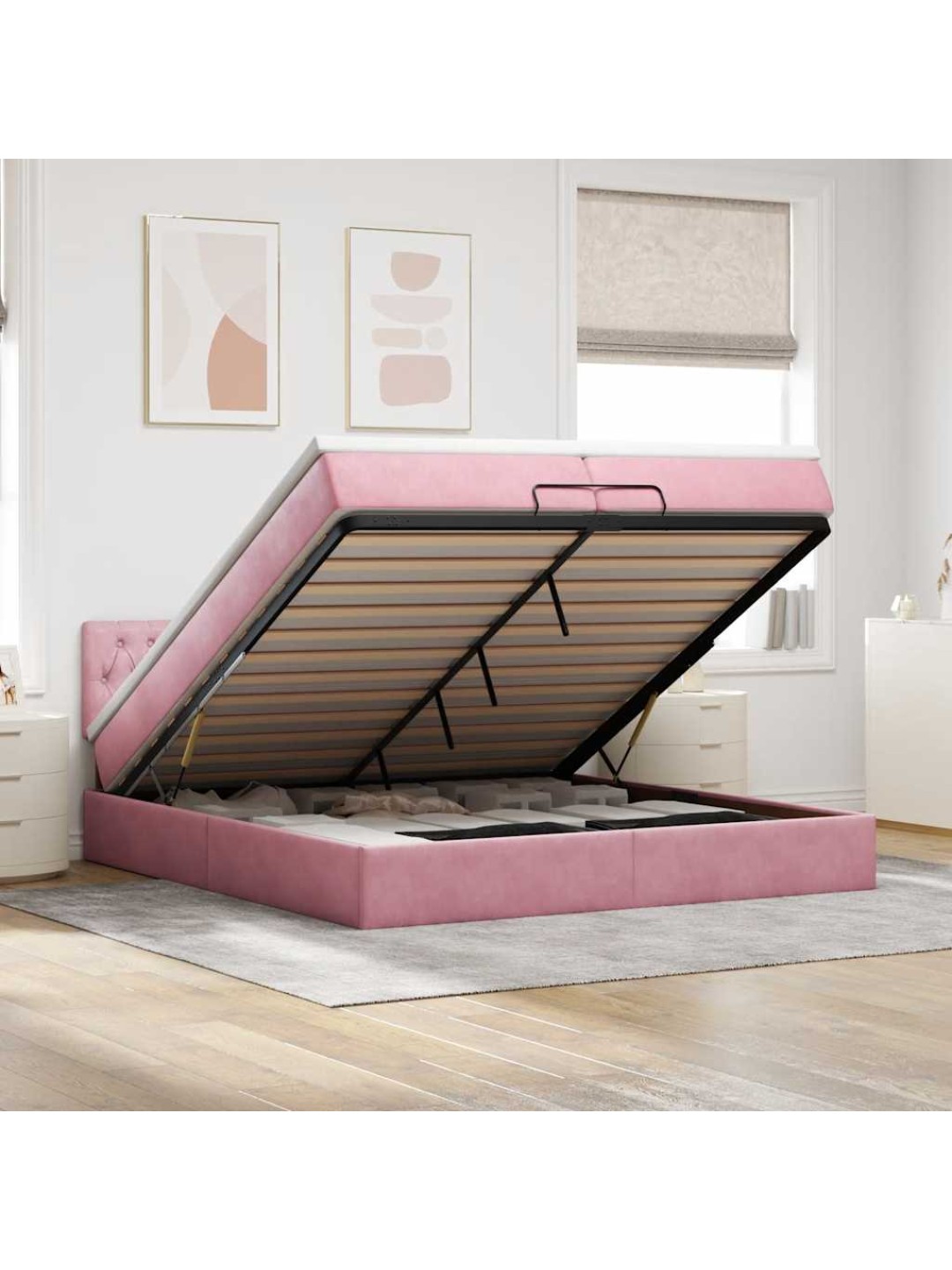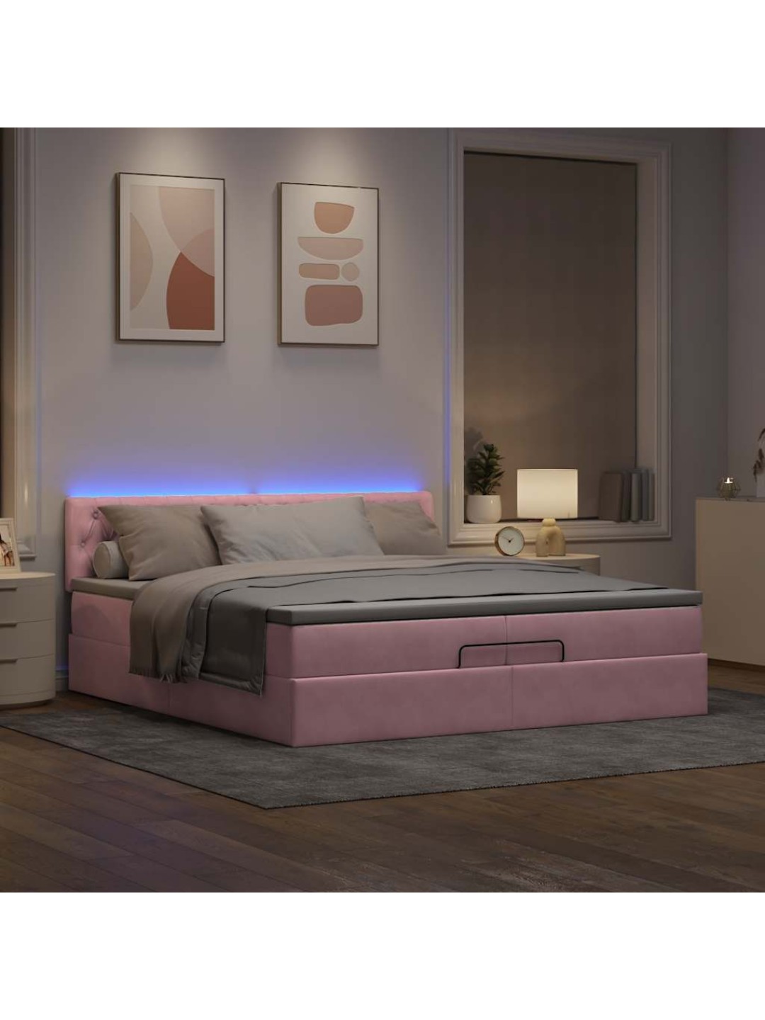 Ottomani voodiraam madratsitega, roosa, 200x200 cm, samet