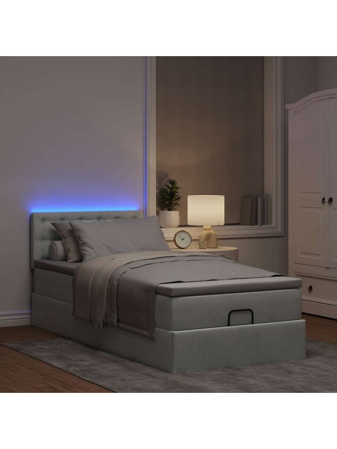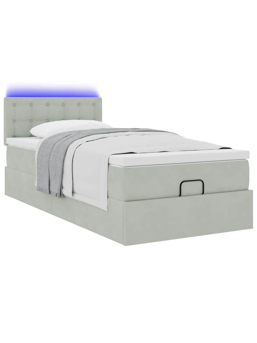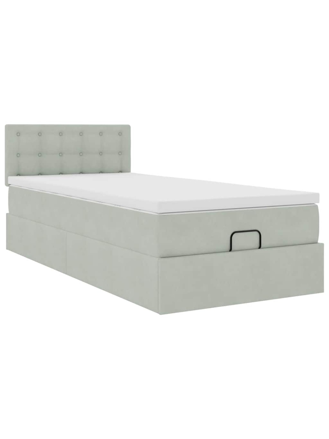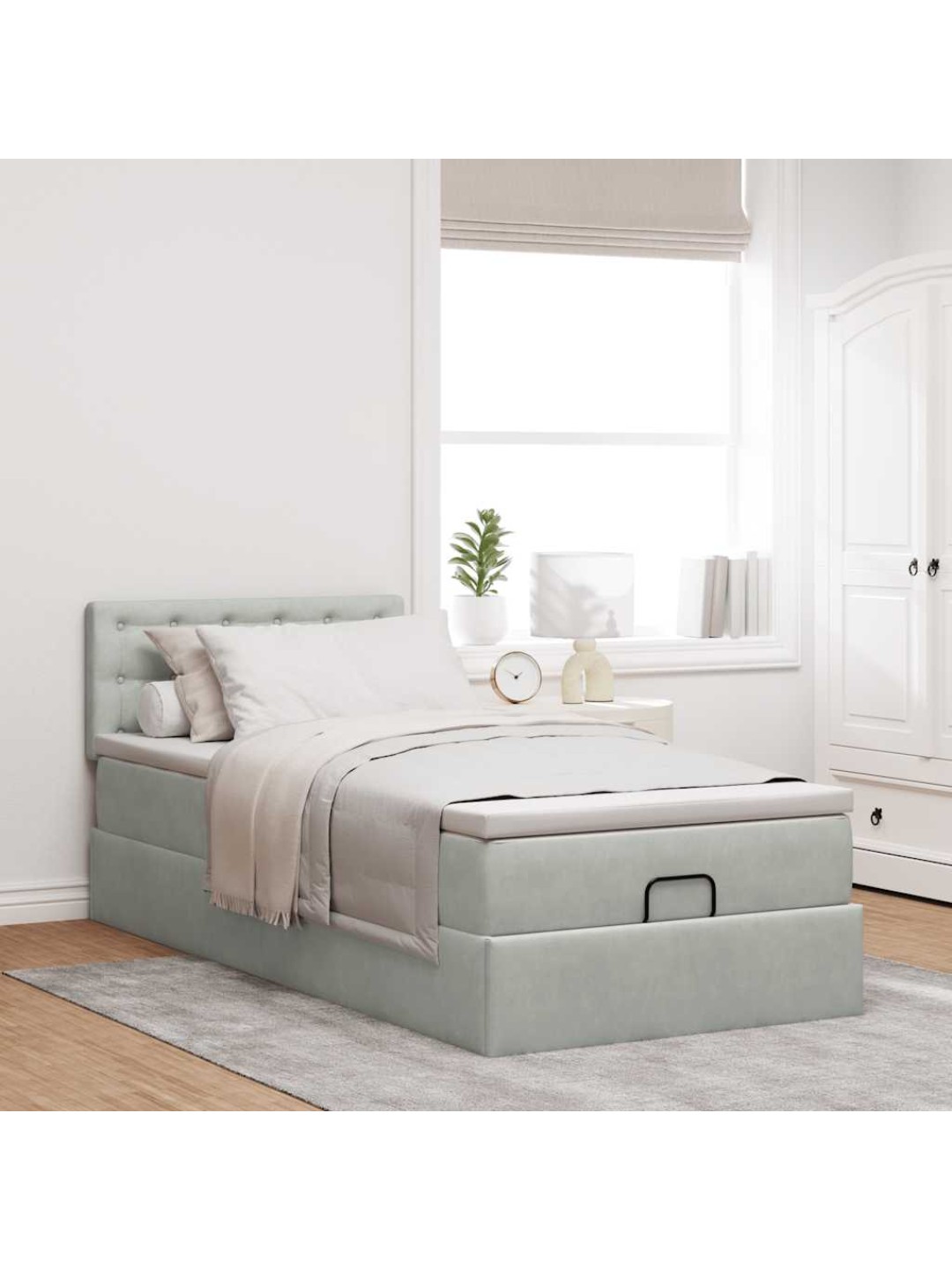 Ottomani voodiraam madratsiga, helehall, 80x200 cm, samet