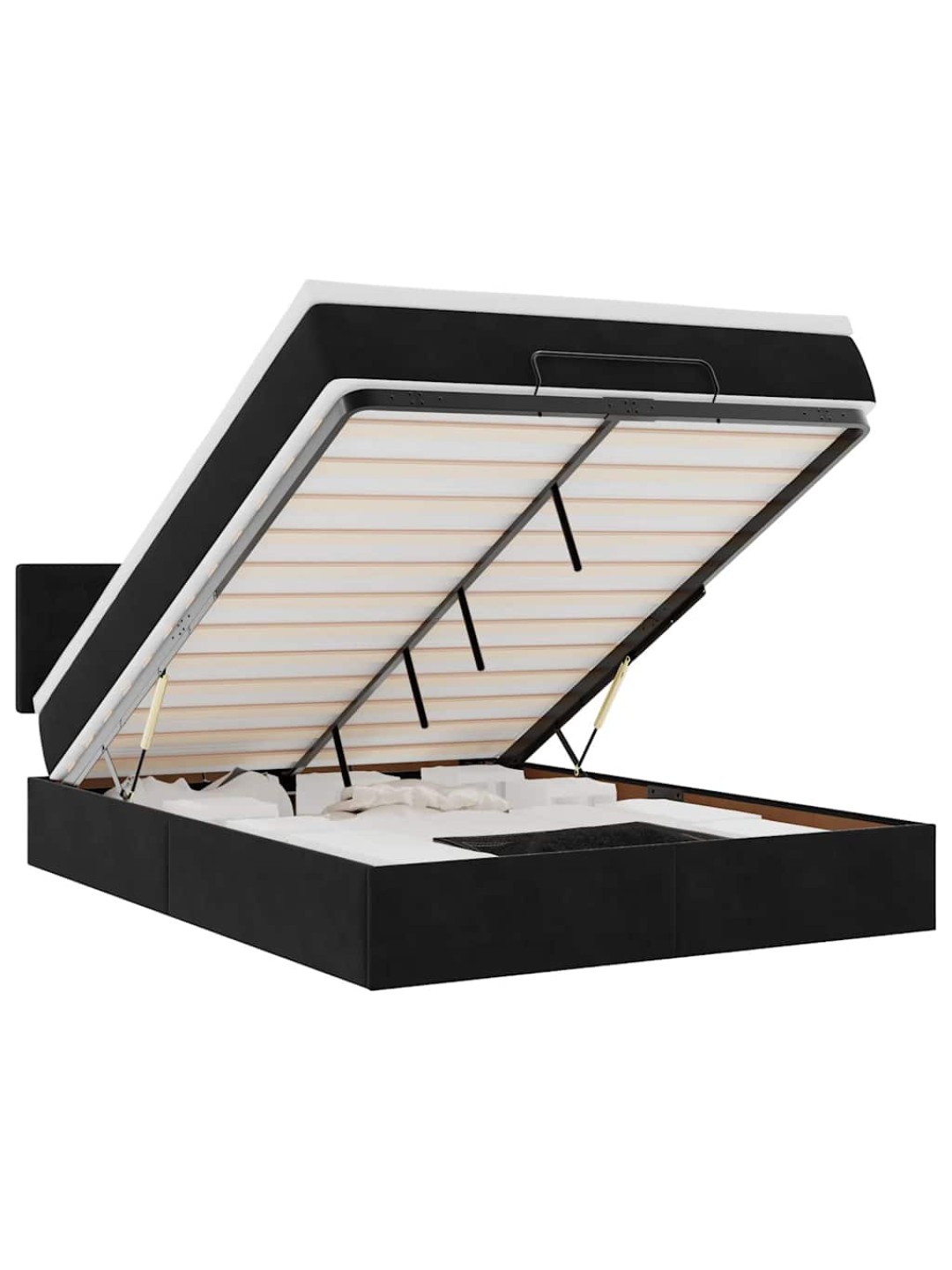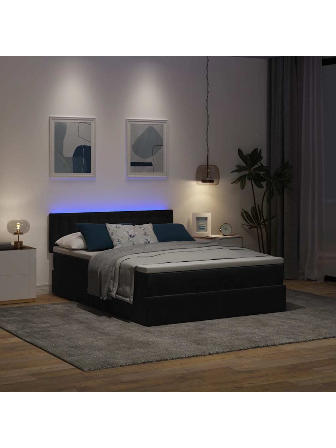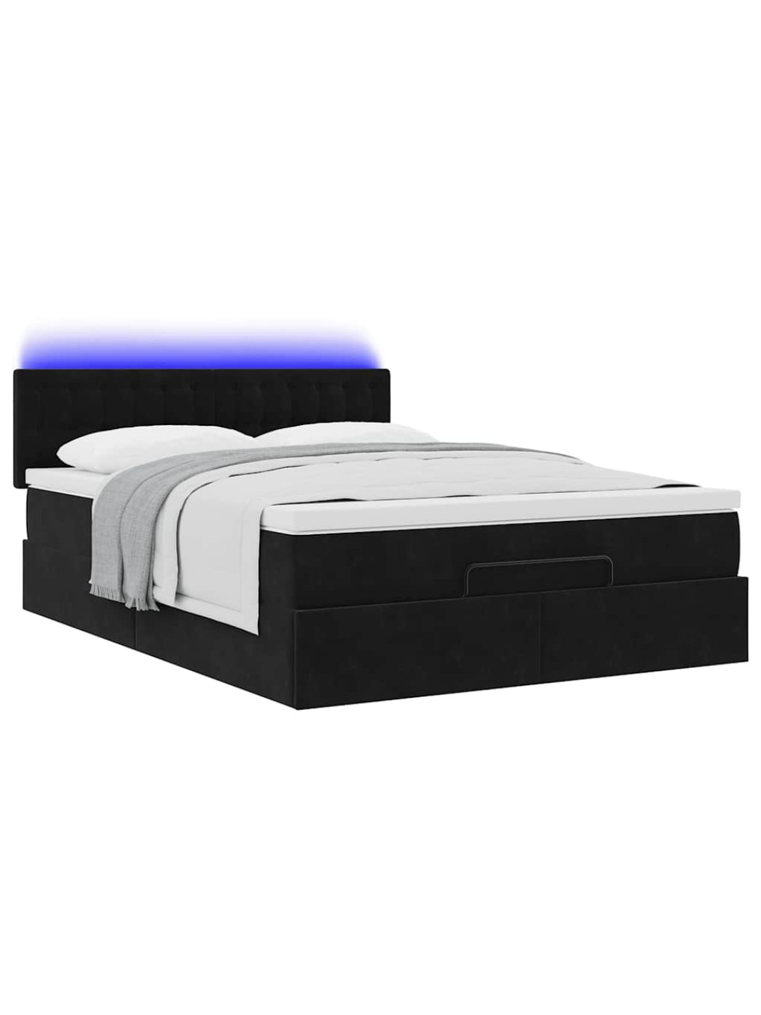 Ottomani voodi madratsiga ja led, must, 140x190cm, samet
