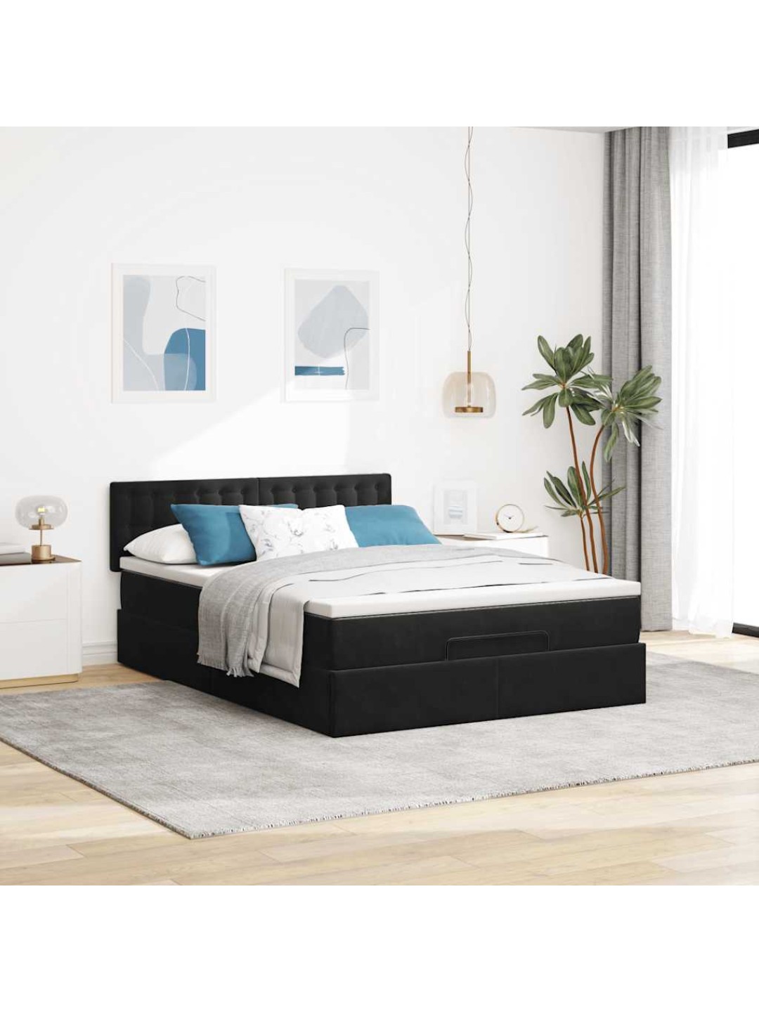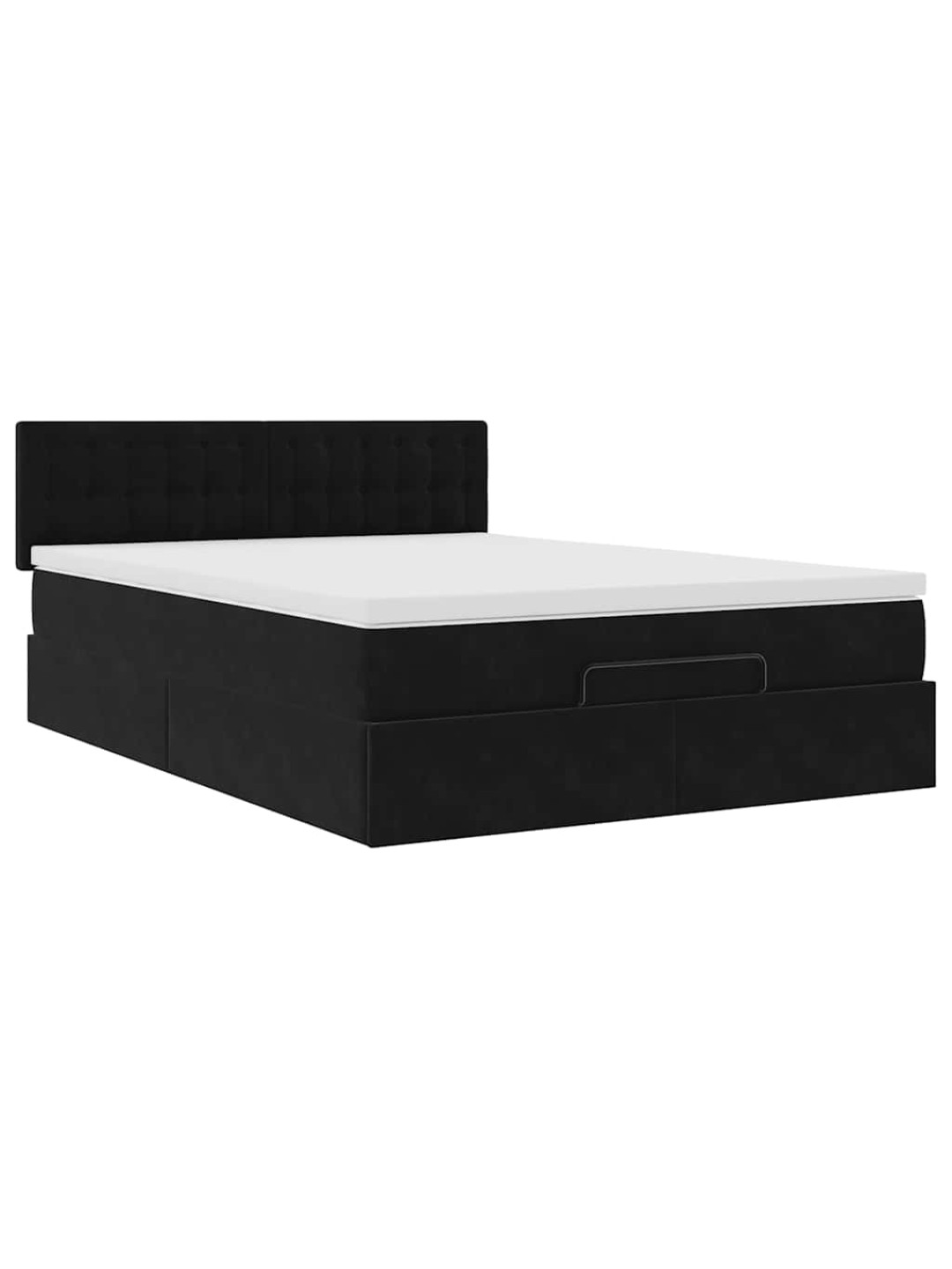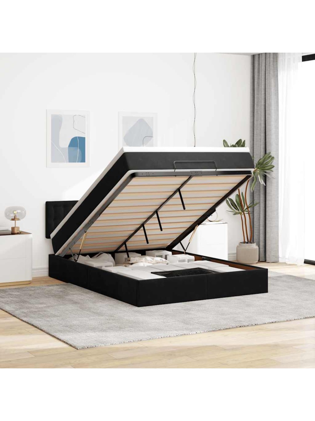 Ottomani voodi madratsiga ja led, must, 140x190cm, samet