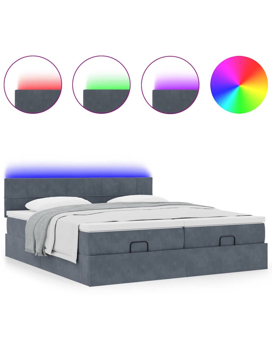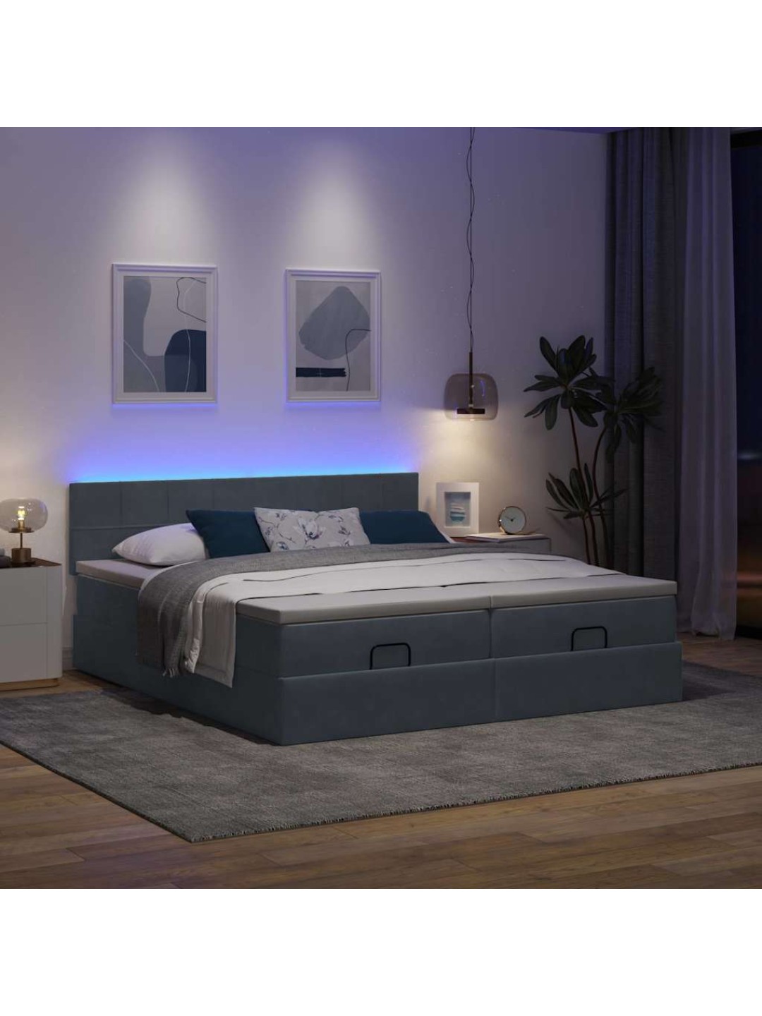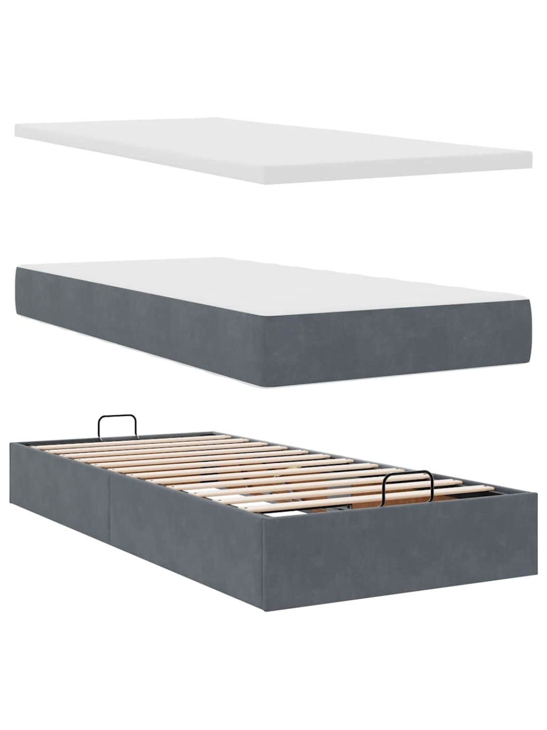 Ottomani voodiraam madratsitega, tumehall, 160x200 cm, samet
