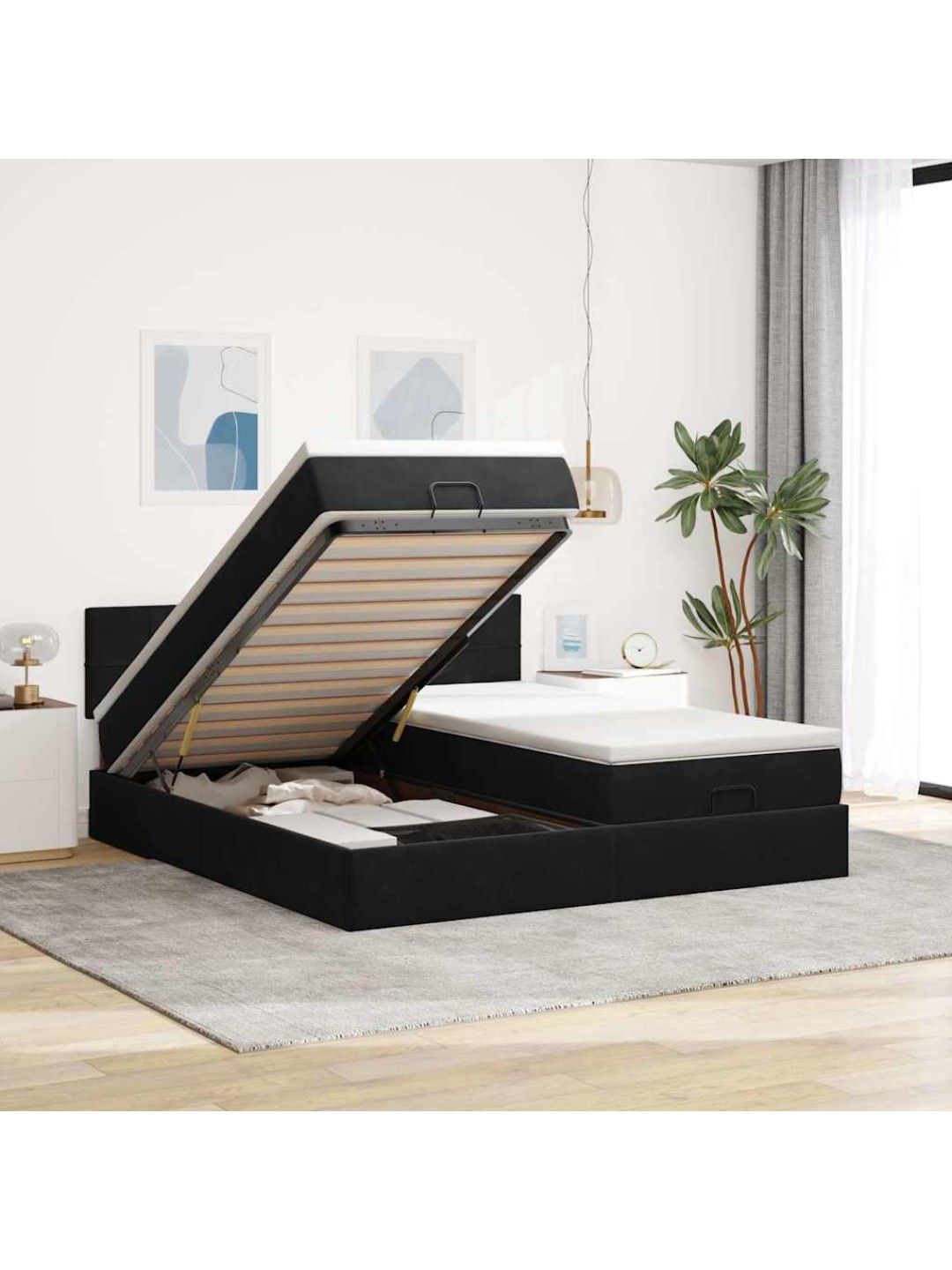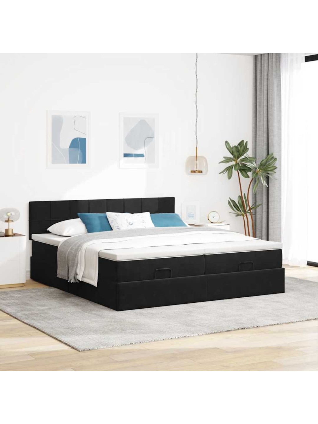 Ottomani voodiraam madratsitega, must, 180x200 cm, samet