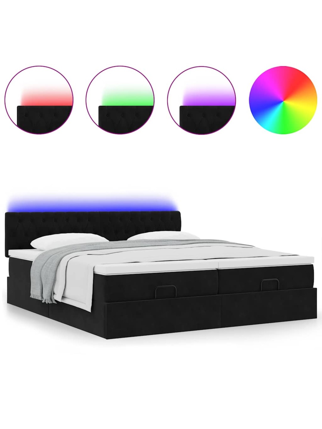 Ottomani voodiraam madratsitega, must, 200x200 cm, samet