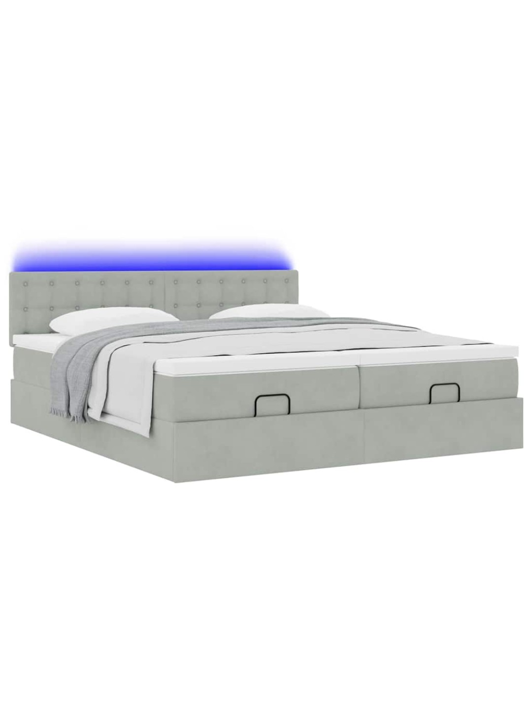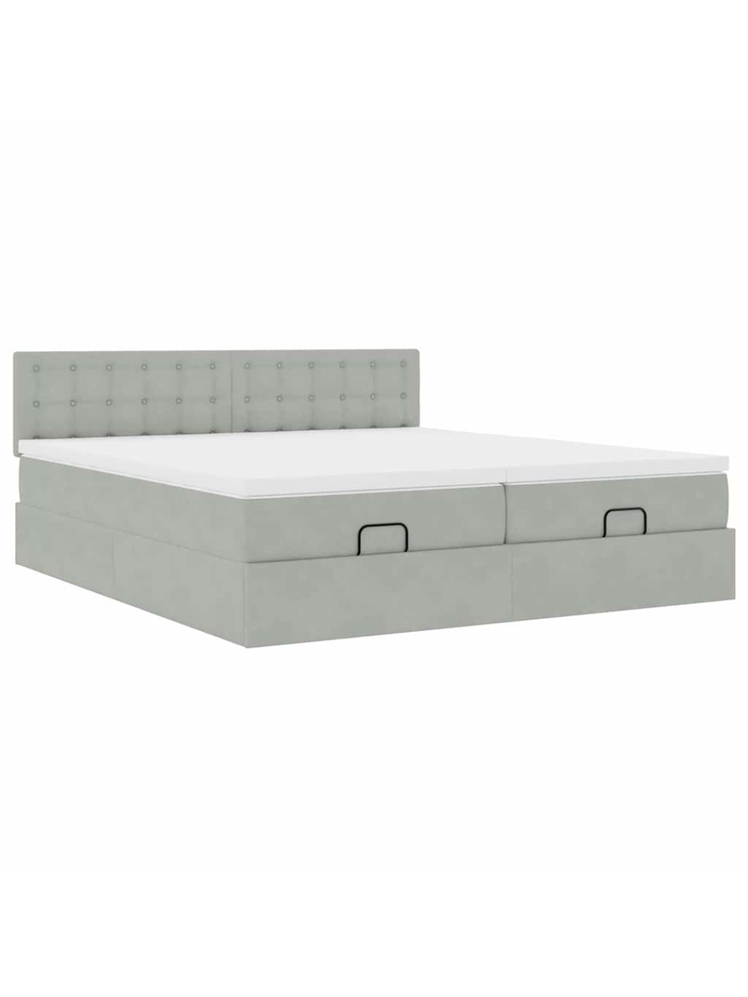 Ottomani voodiraam madratsitega, helehall, 160x200 cm, samet