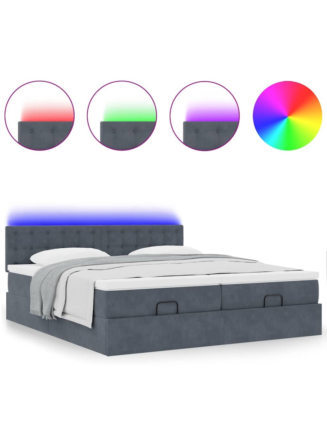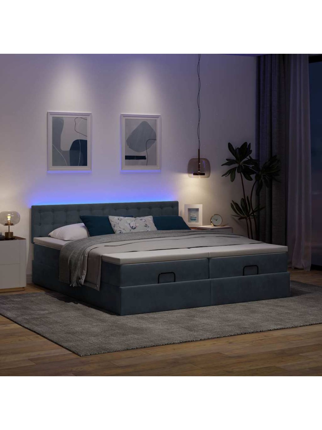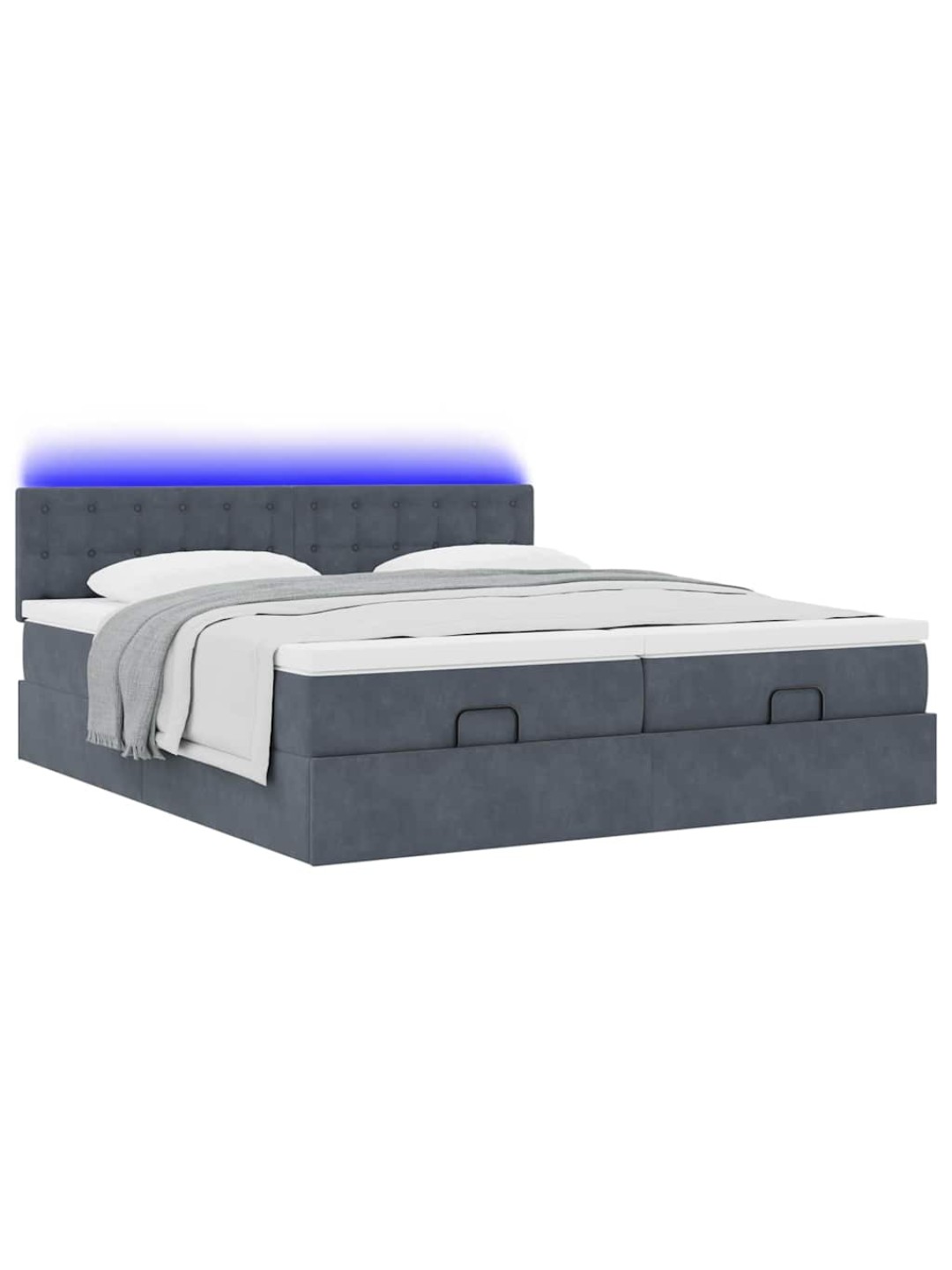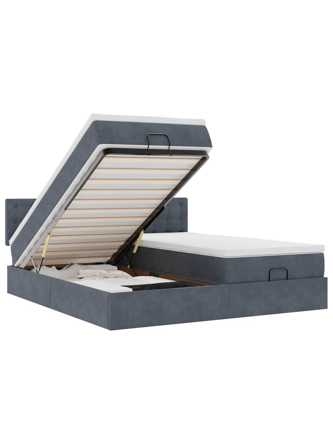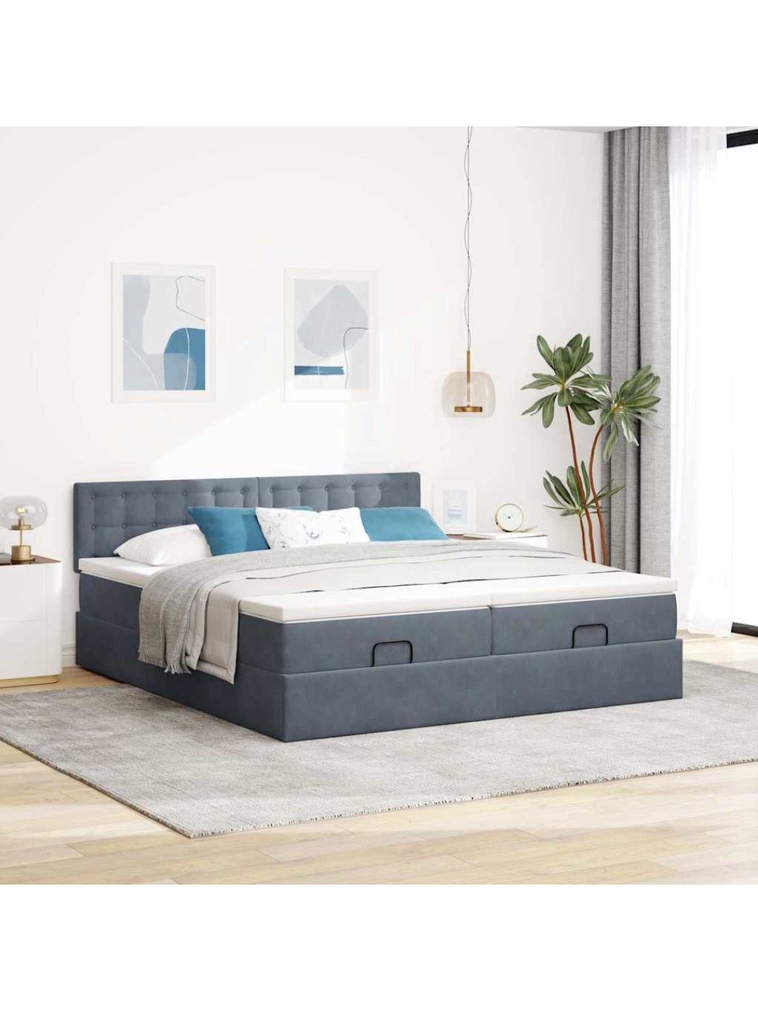 Ottomani voodiraam madratsitega, tumehall, 160x200 cm, samet
