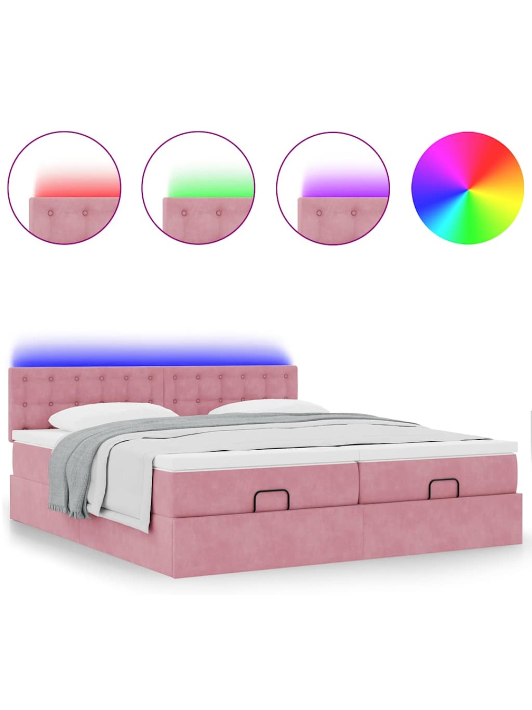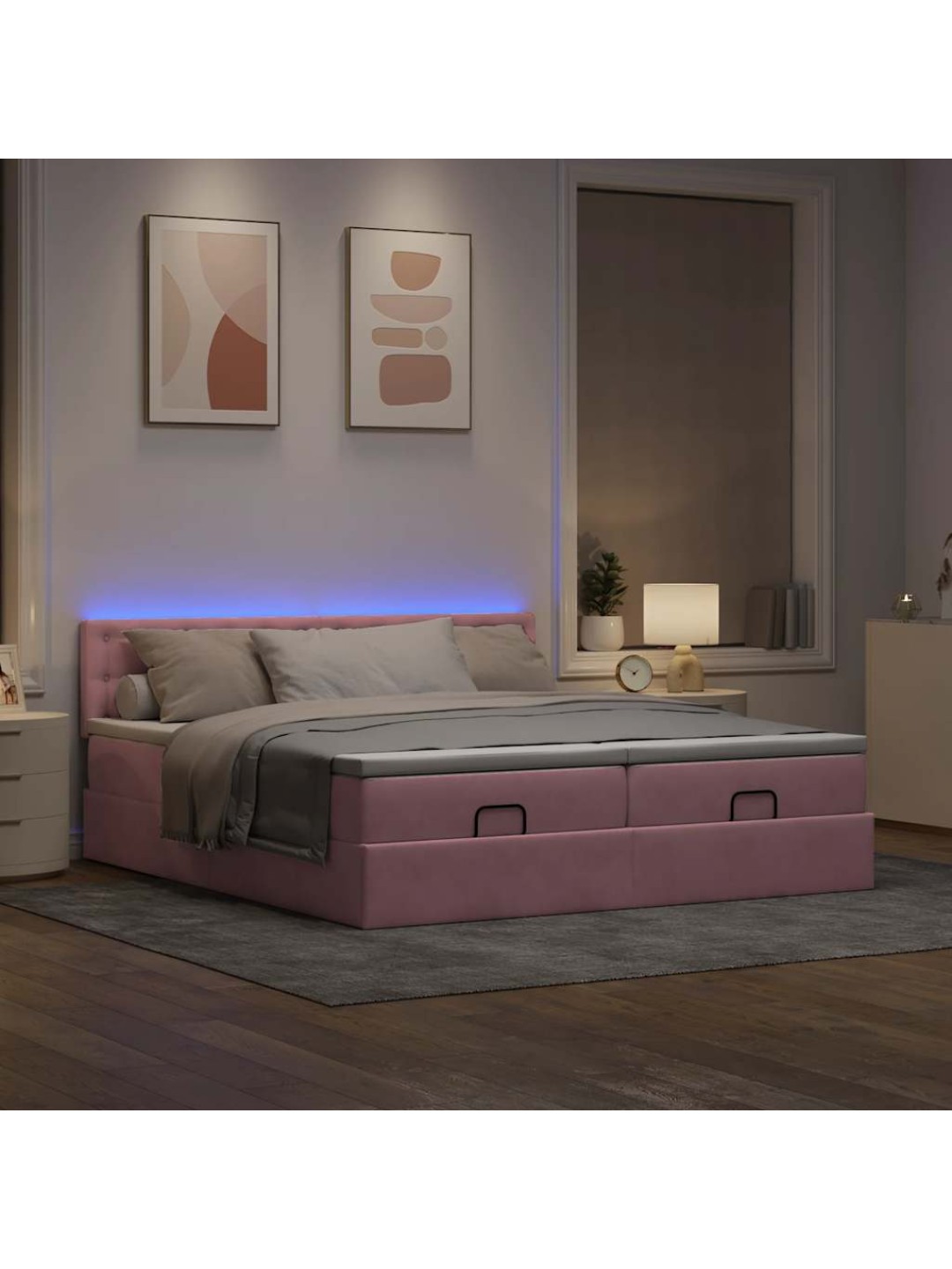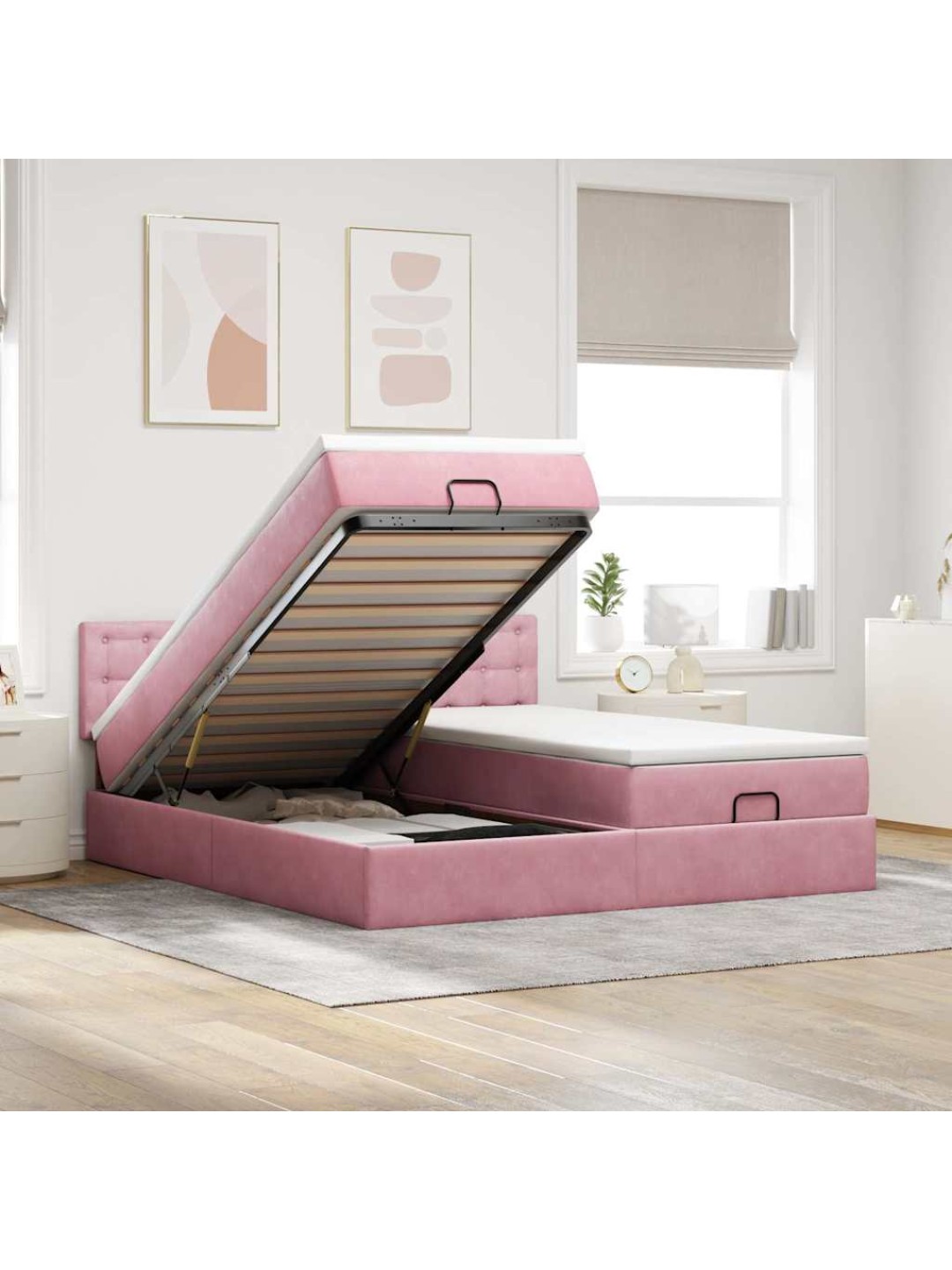 Ottomani voodiraam madratsitega, roosa, 200x200 cm, samet