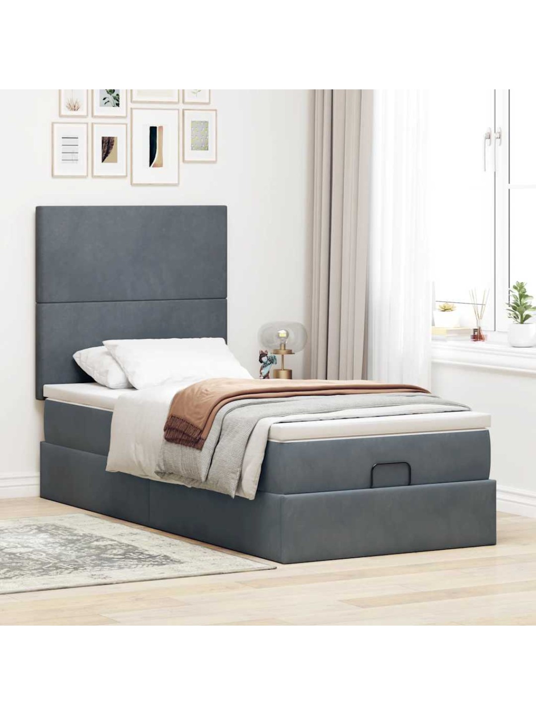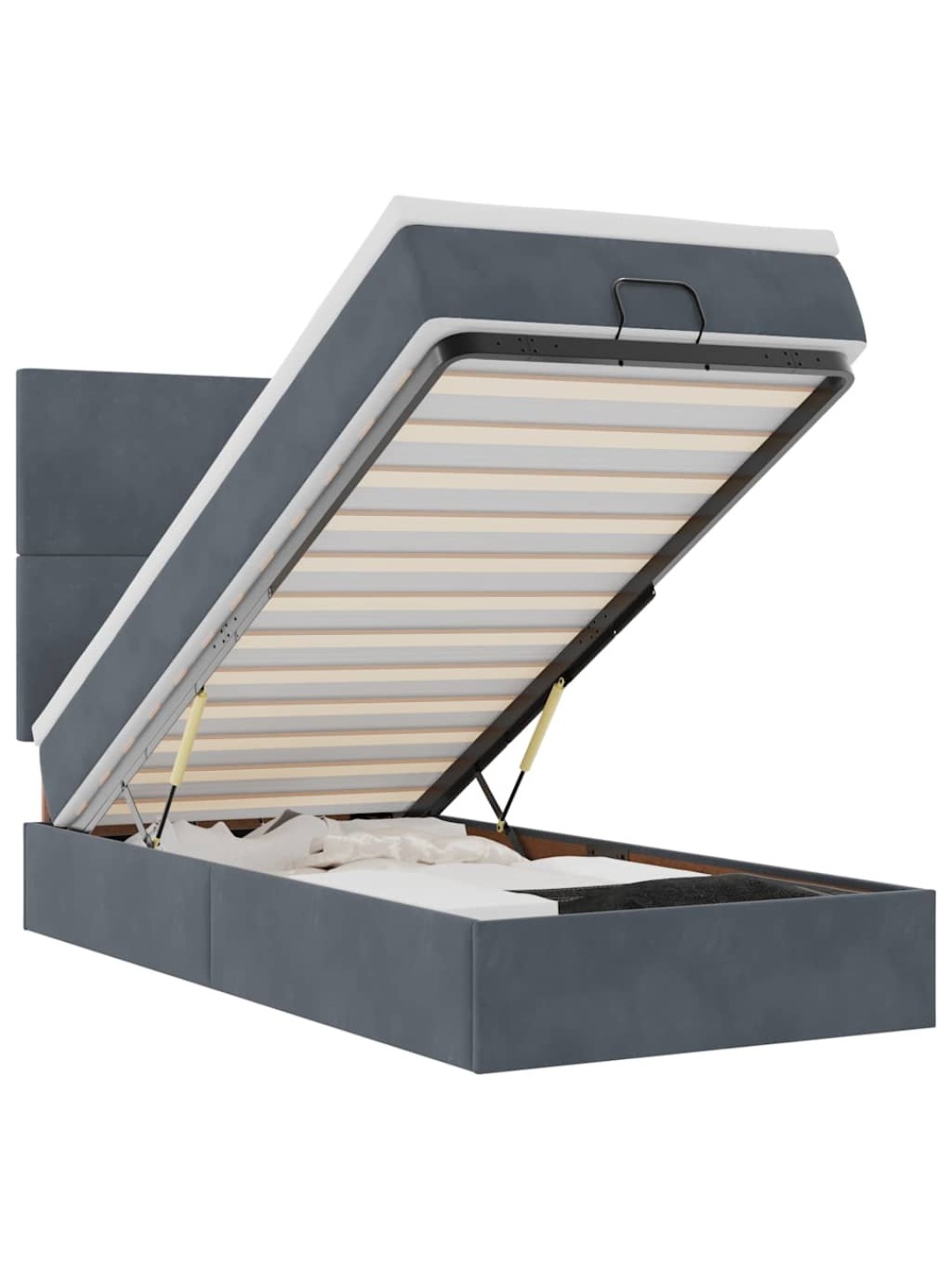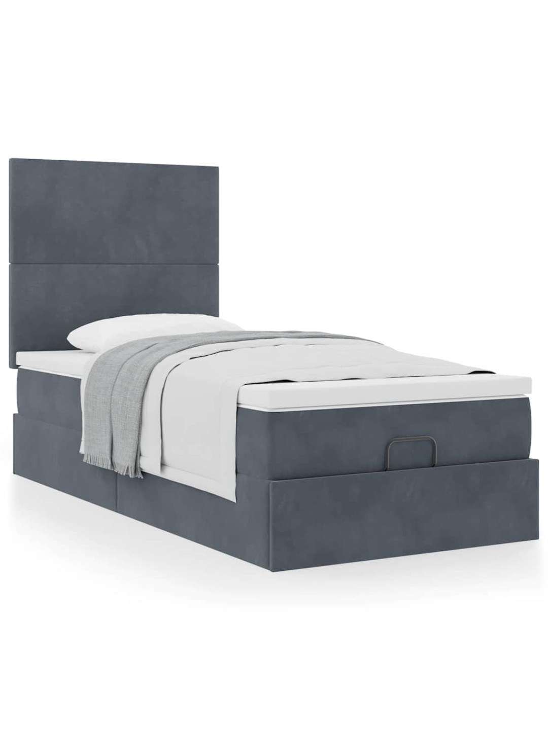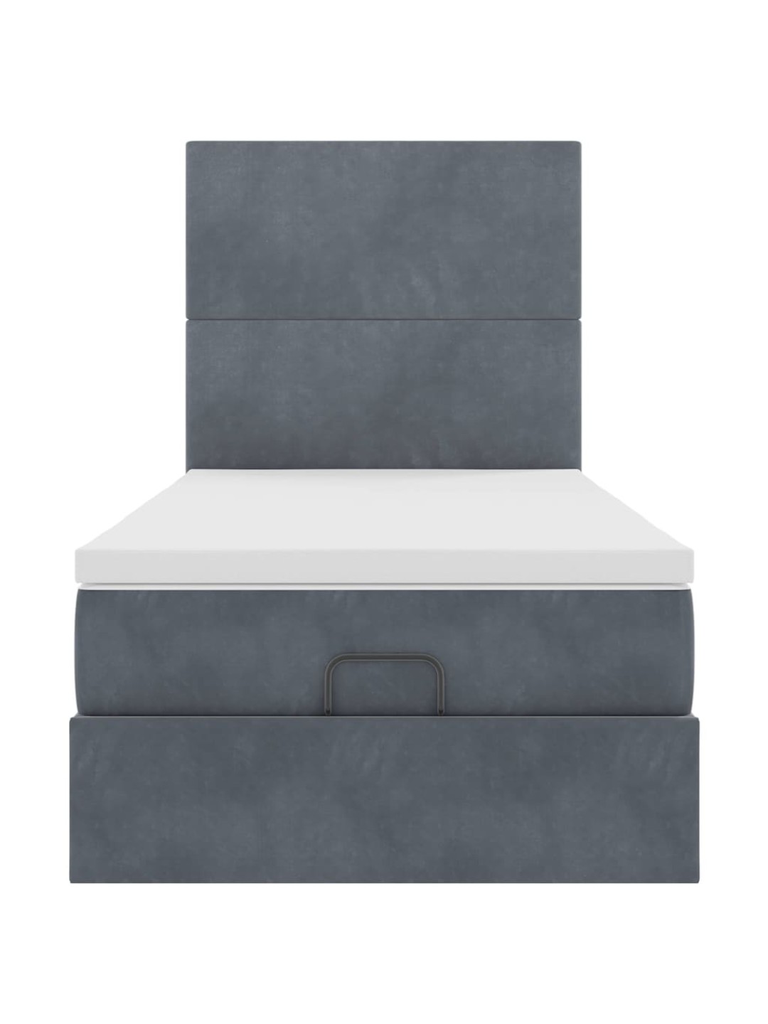 Ottomani voodiraam madratsitega, tumehall, 80x200 cm, samet