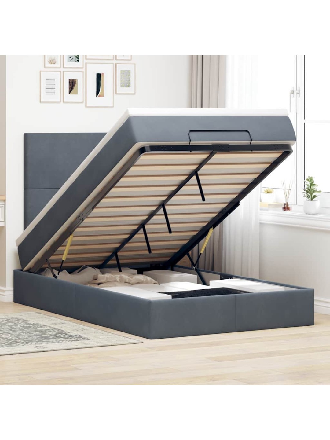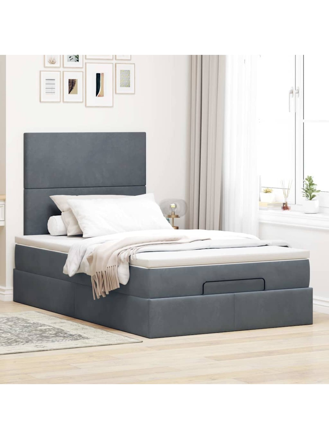 Ottomani voodiraam madratsitega, tumehall, 120x190 cm, samet
