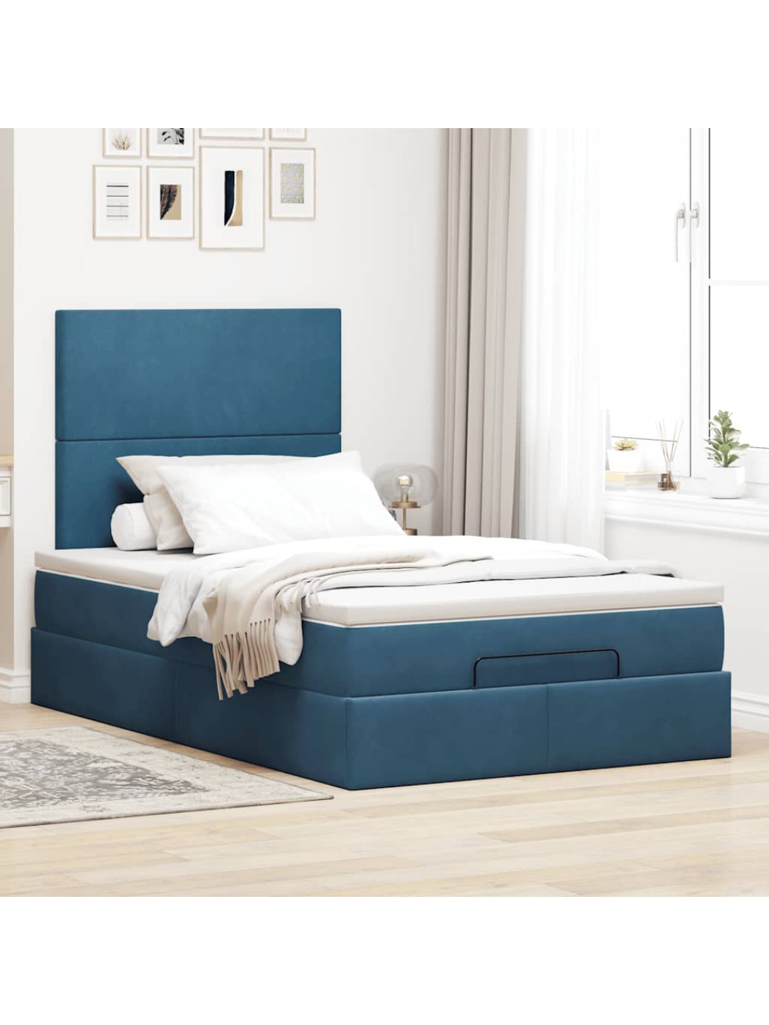 Ottomani voodiraam madratsitega, tumesinine, 120x200 cm, samet