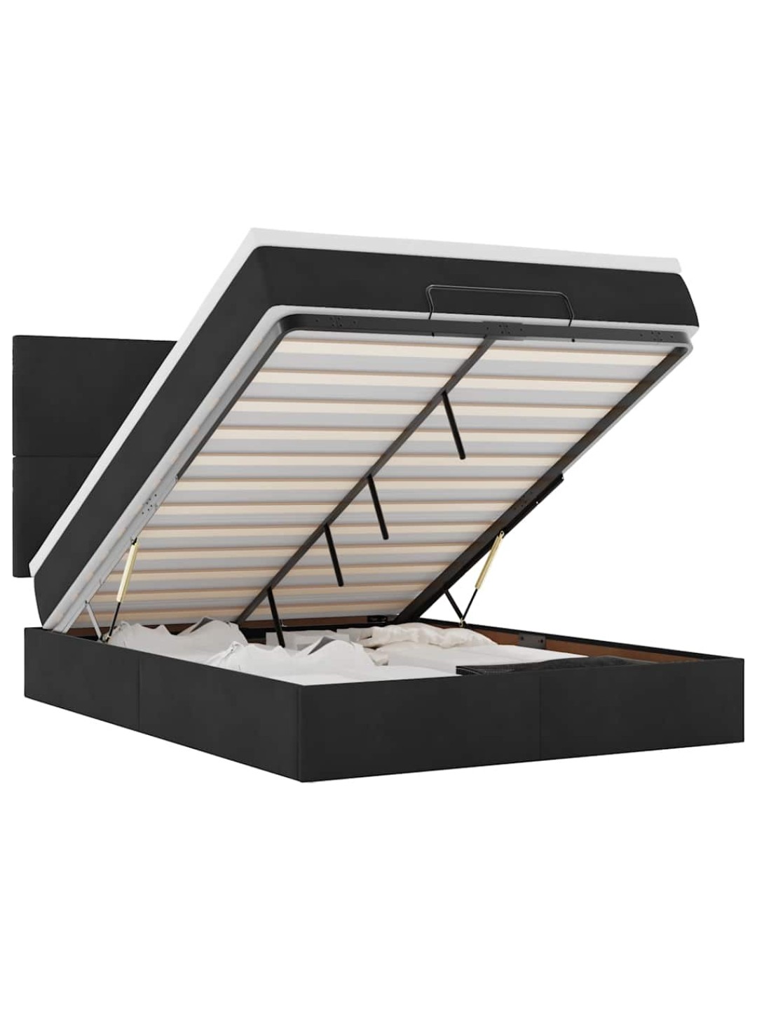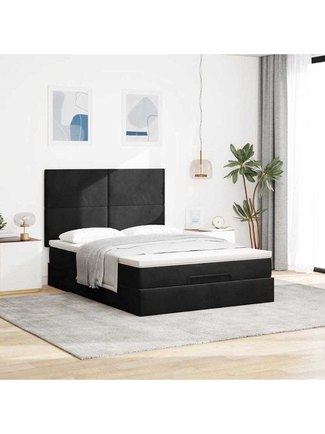 Ottomani voodi madratsitega, must, 140x190cm, samet