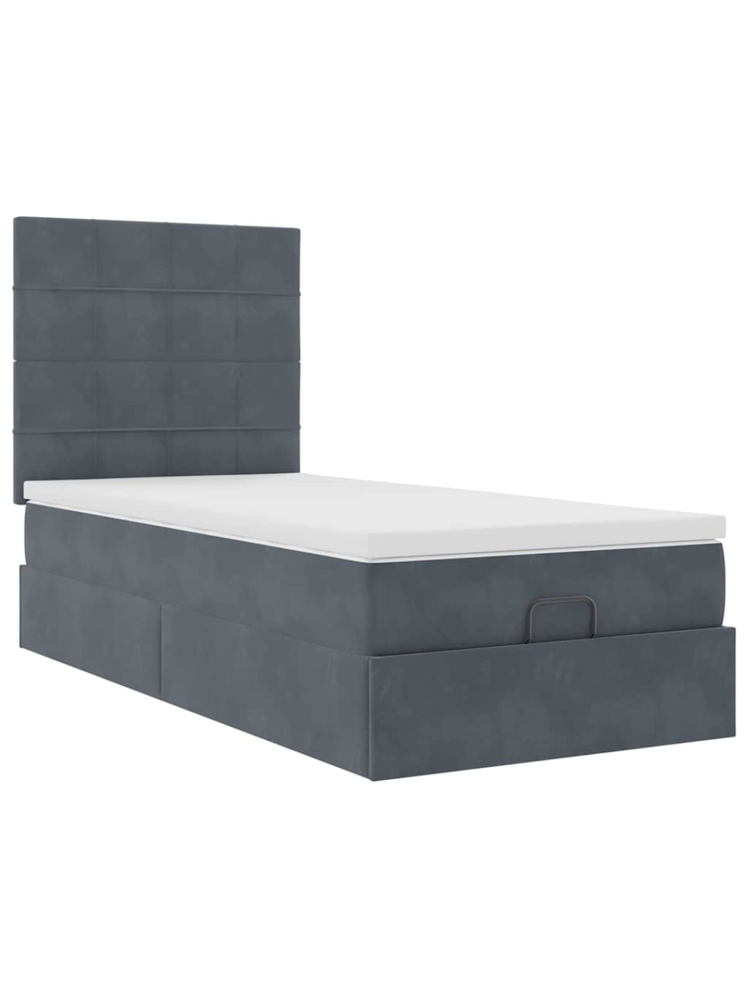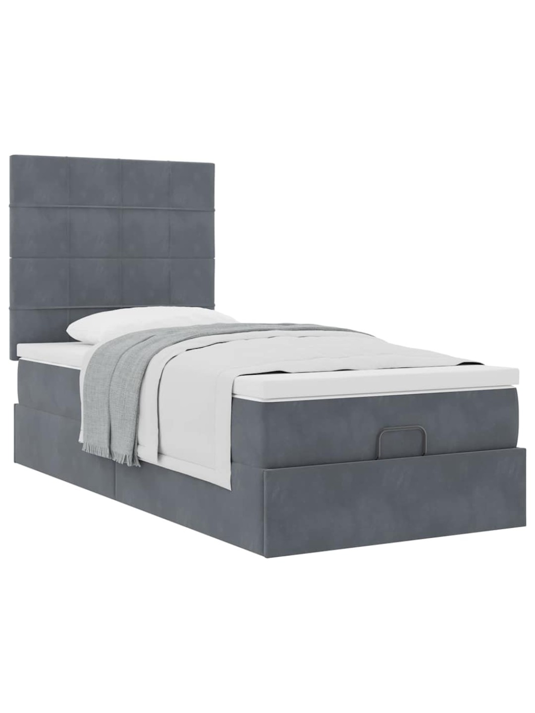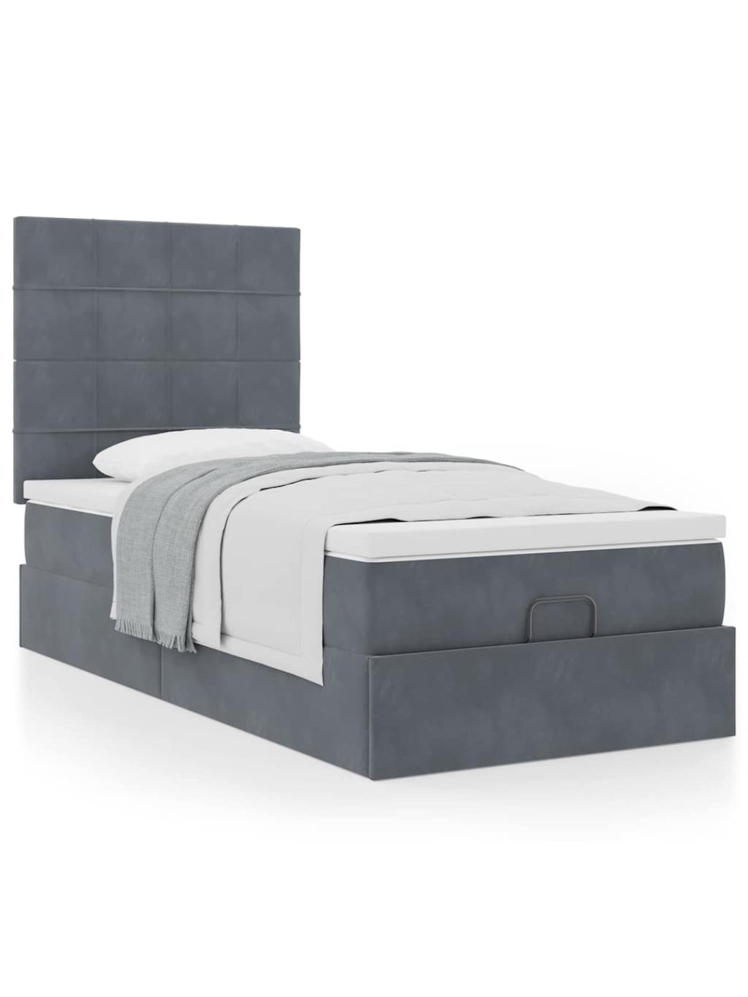 Ottomani voodiraam madratsitega, tumehall, 80x200 cm, samet