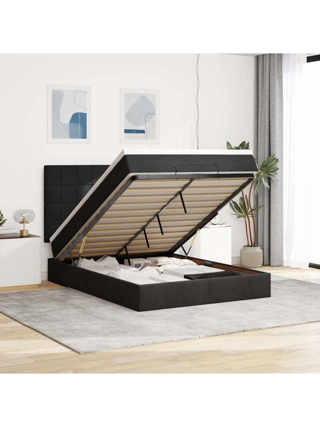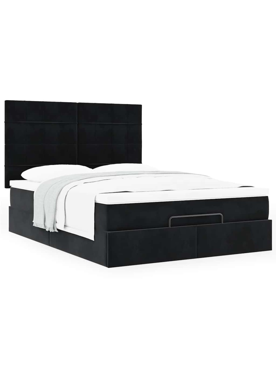 Ottomani voodi madratsitega, must, 140x190cm, samet