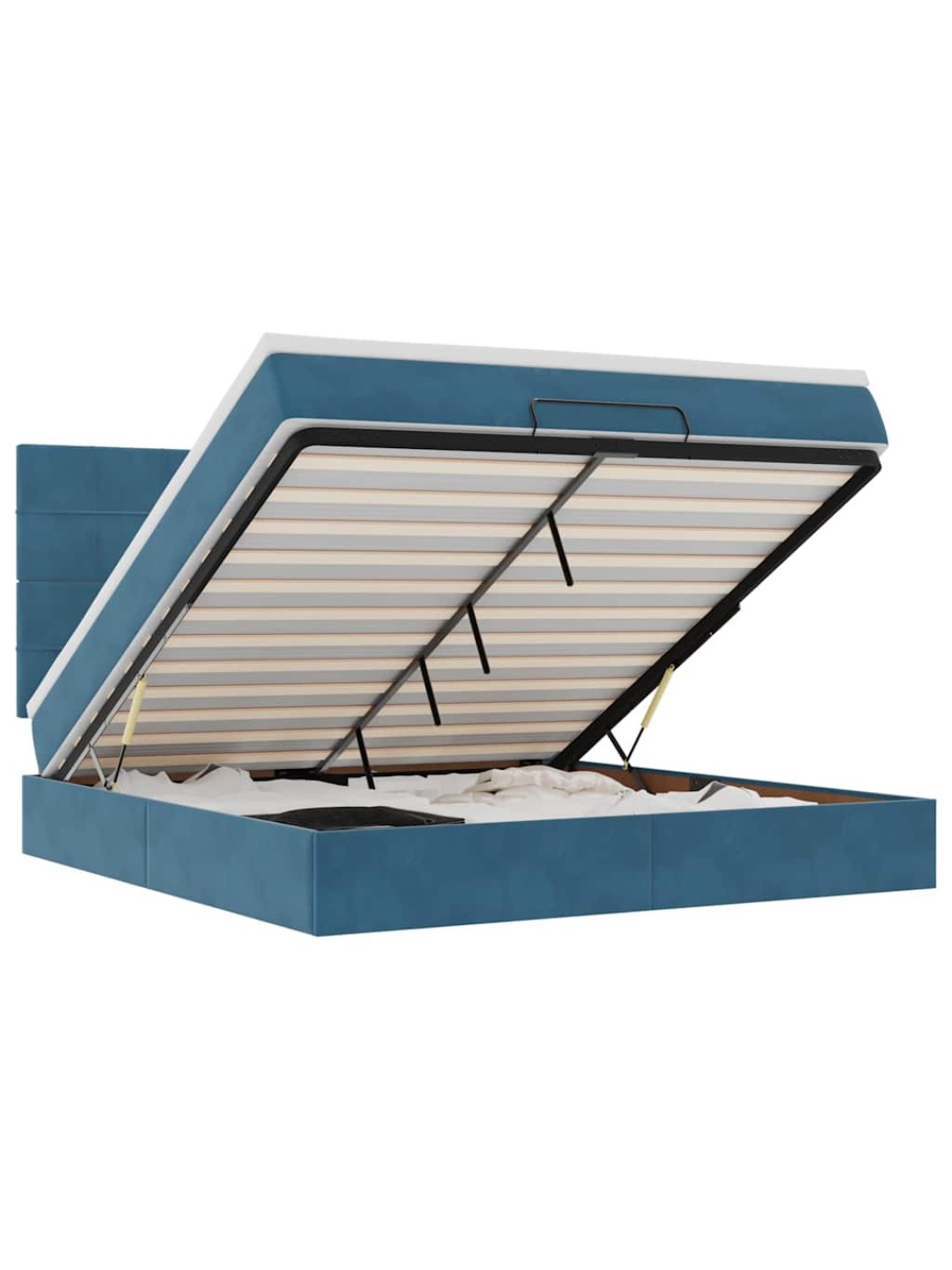 Ottomani voodiraam madratsitega, tumesinine, 180x200 cm, samet