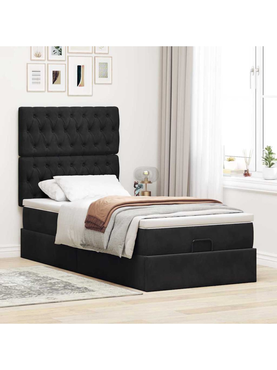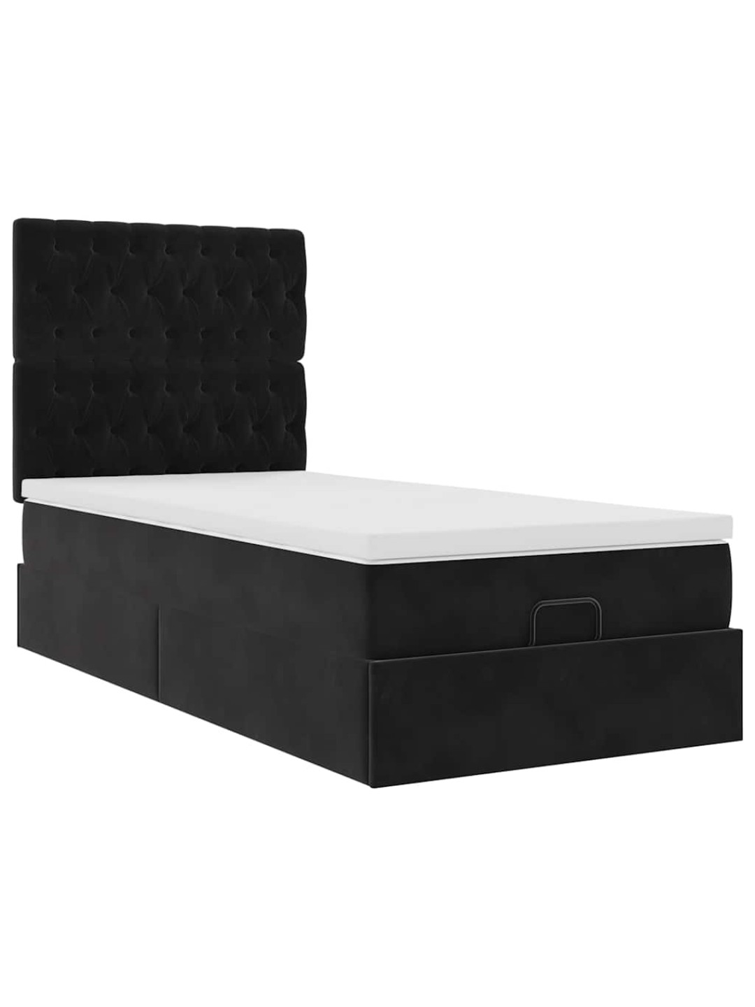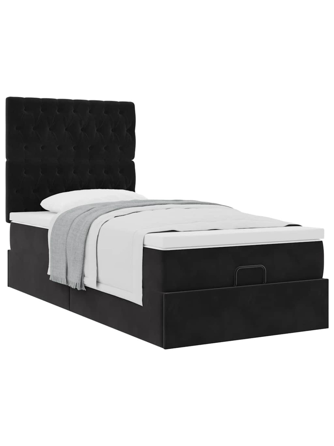 Ottomani voodiraam madratsitega, must, 90x200 cm, samet