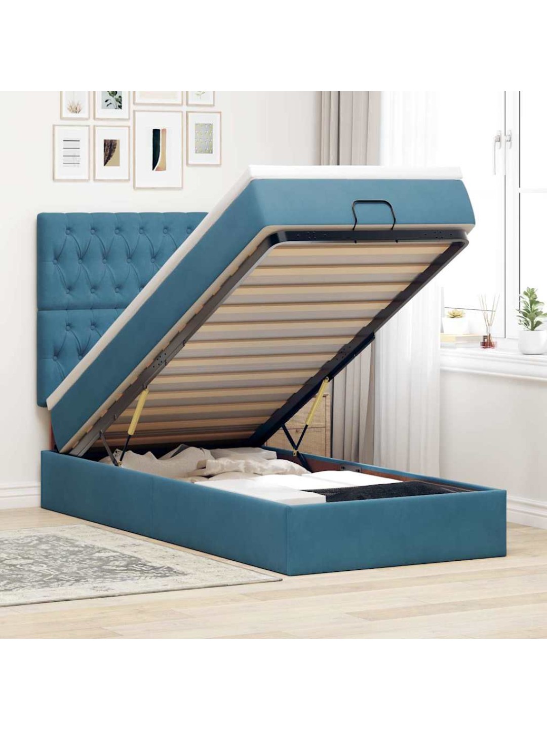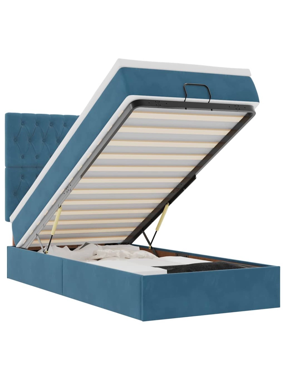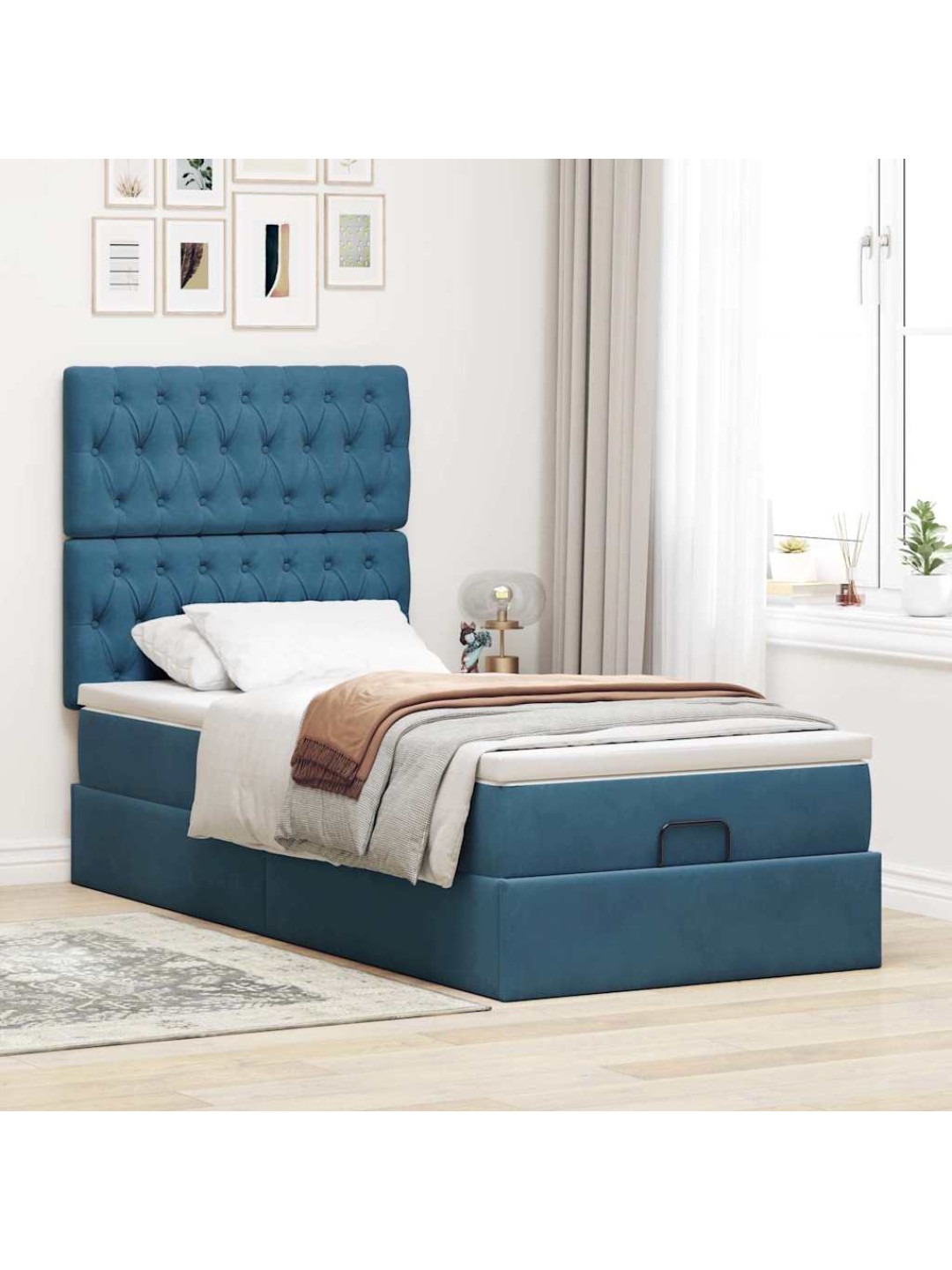 Ottomani voodiraam madratsitega, tumesinine, 100x200cm, samet