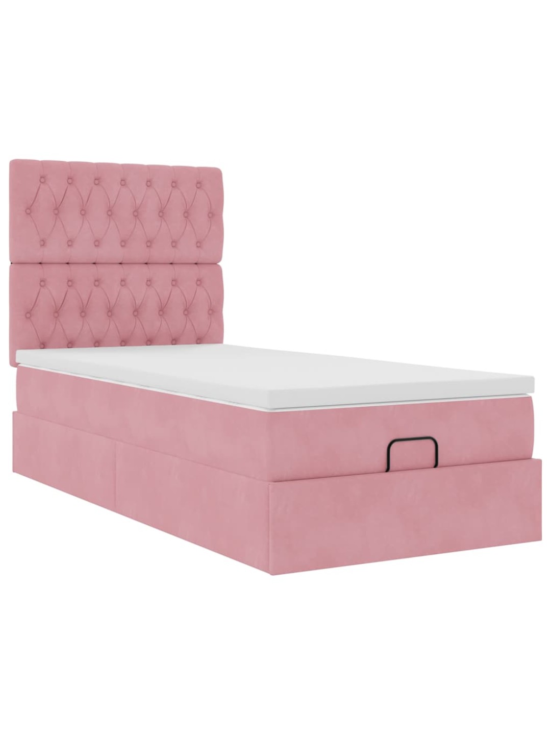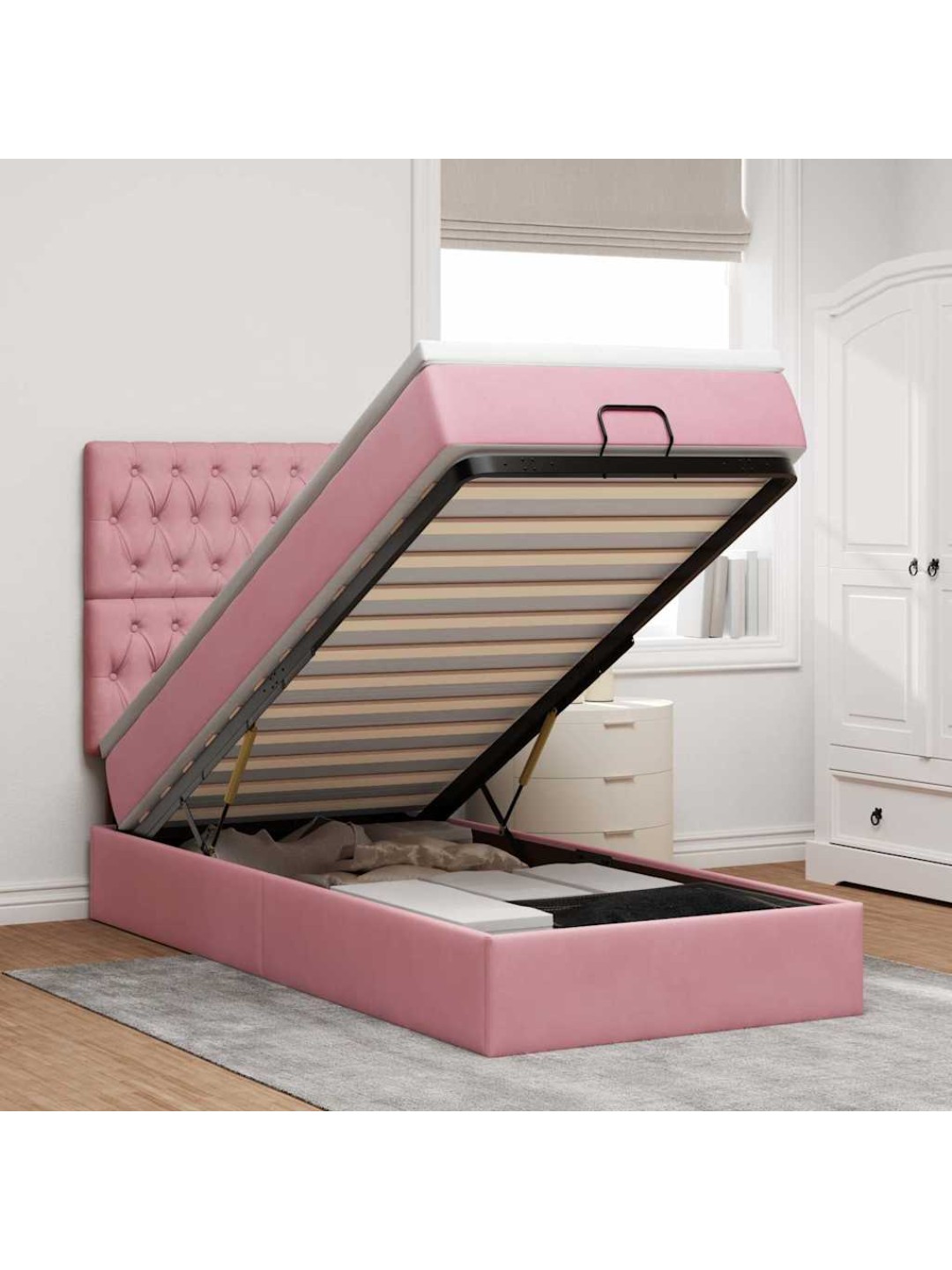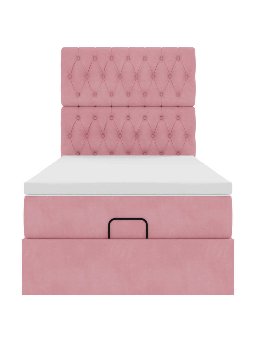 Ottomani voodiraam madratsitega, roosa, 100x200cm, samet
