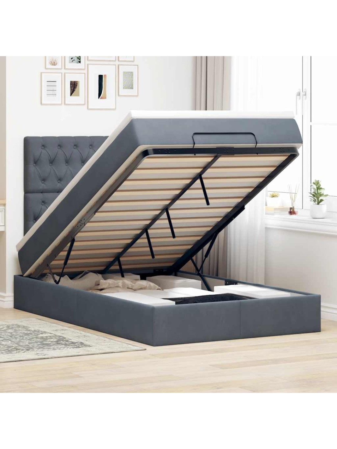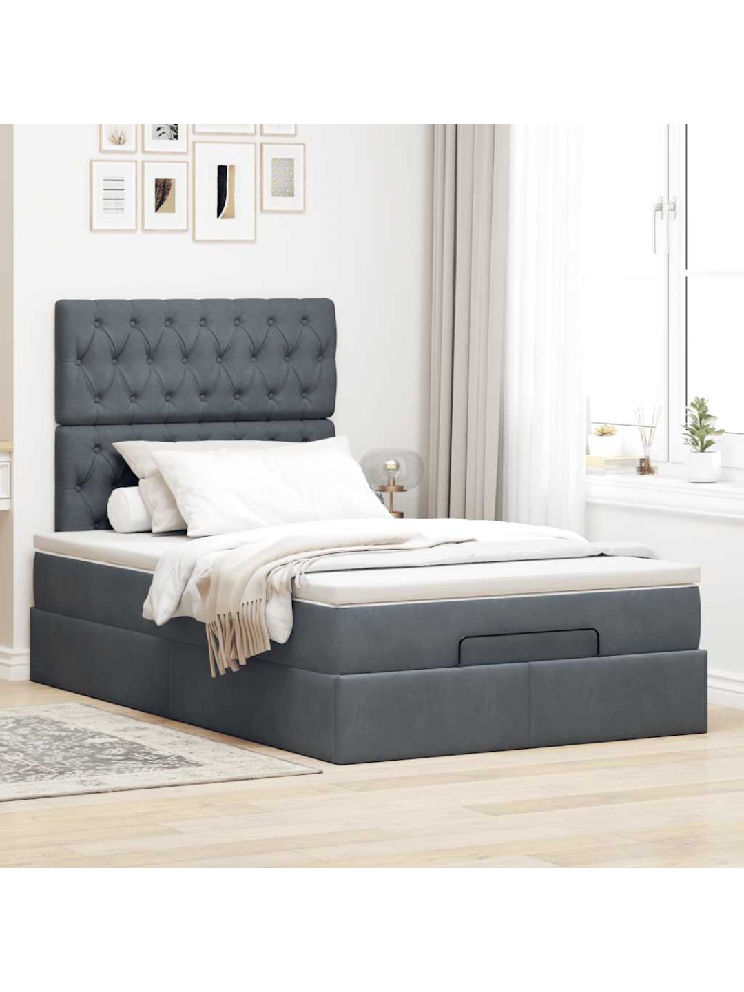 Ottomani voodiraam madratsitega, tumehall, 120x190 cm, samet