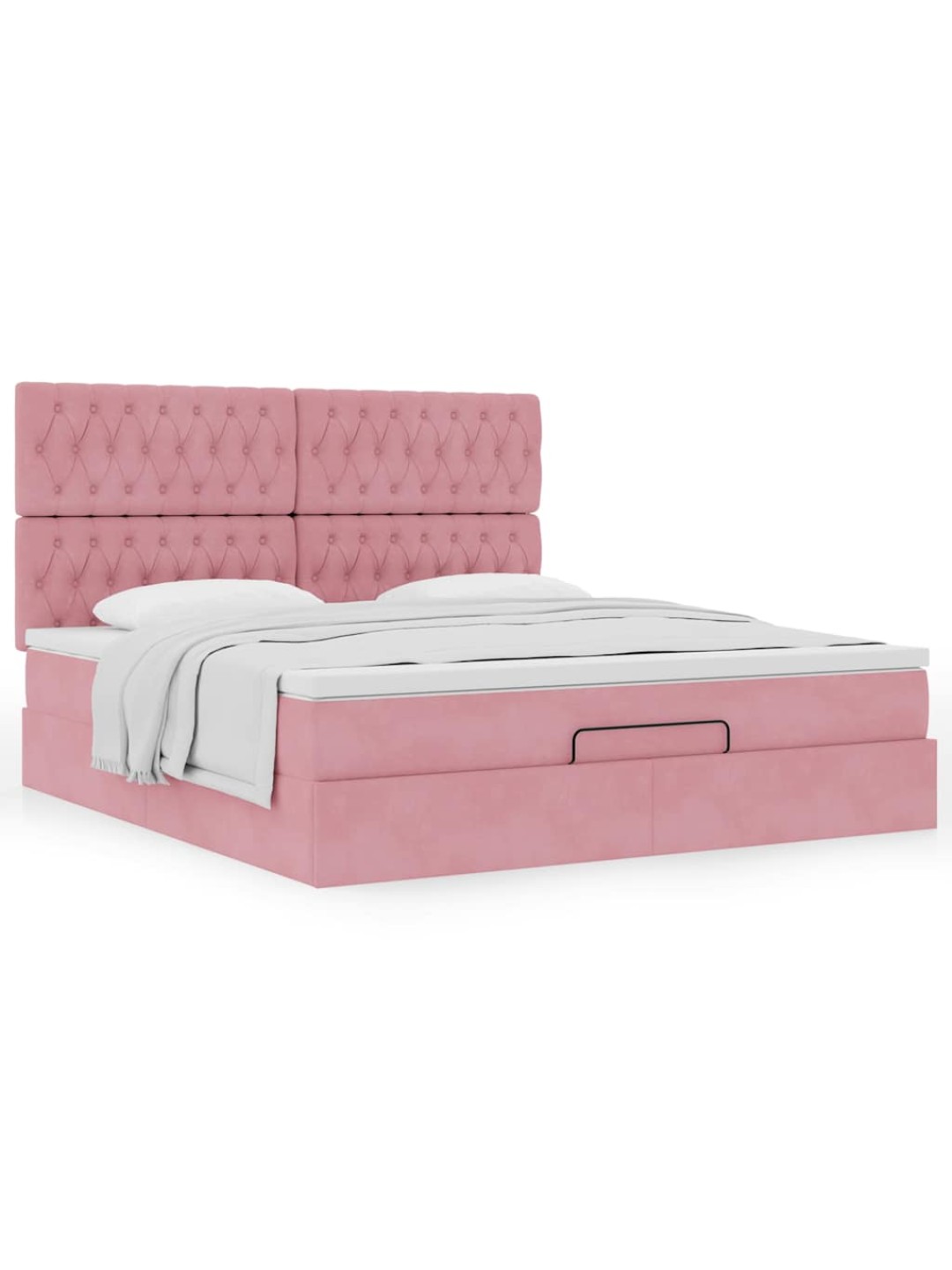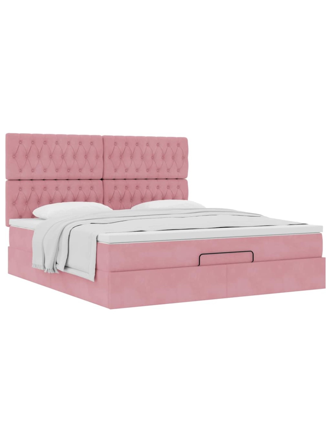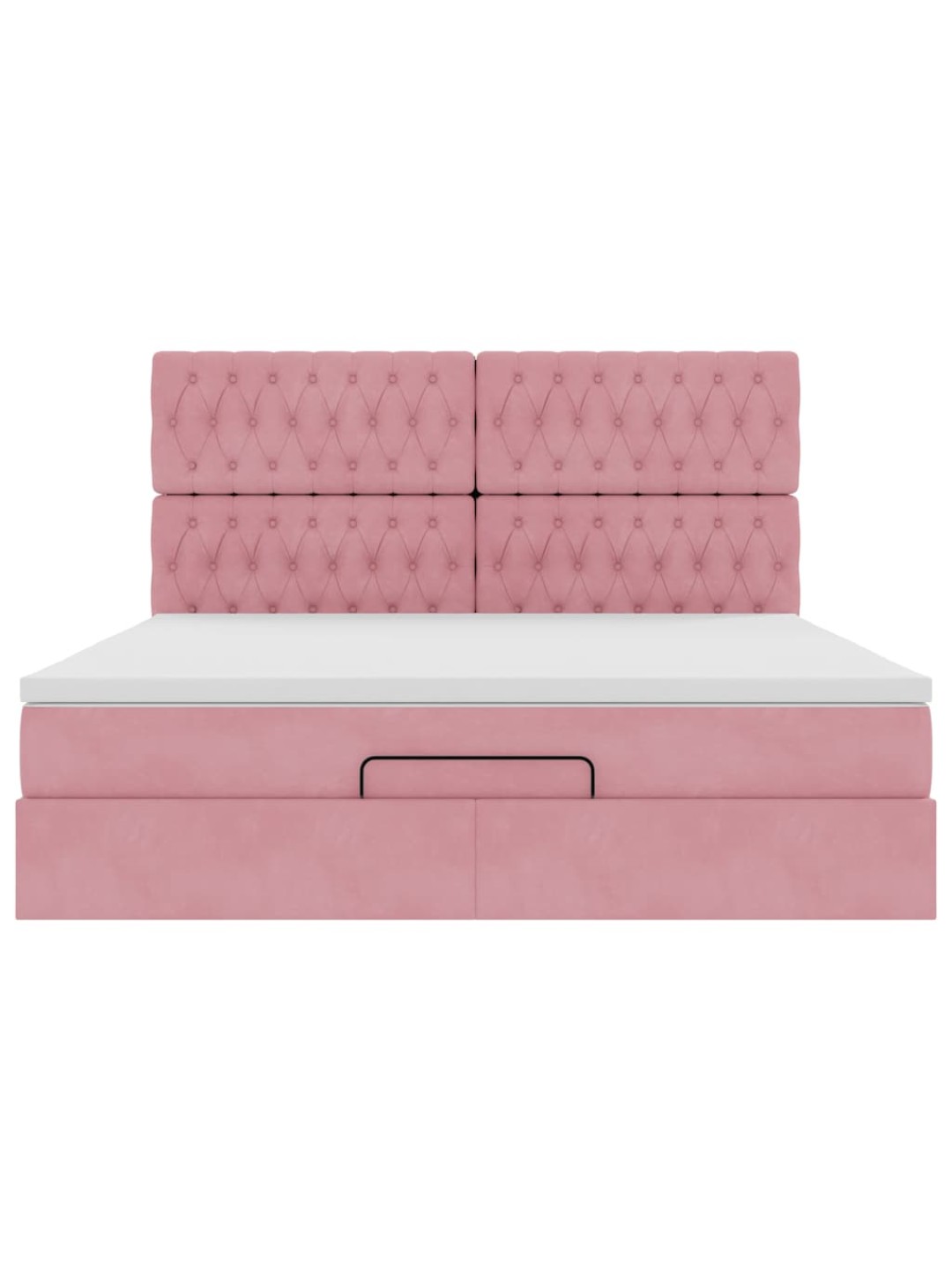 Ottomani voodiraam madratsitega, roosa, 160x200 cm, samet
