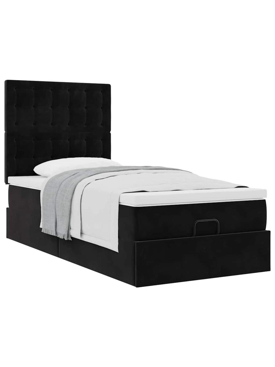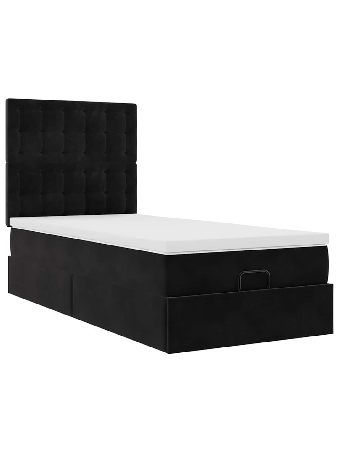 Ottomani voodiraam madratsitega, must, 90x200 cm, samet
