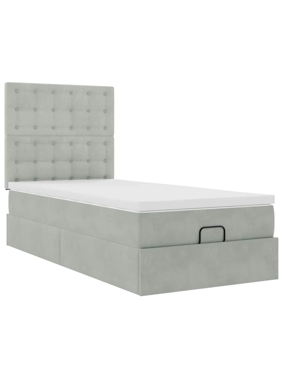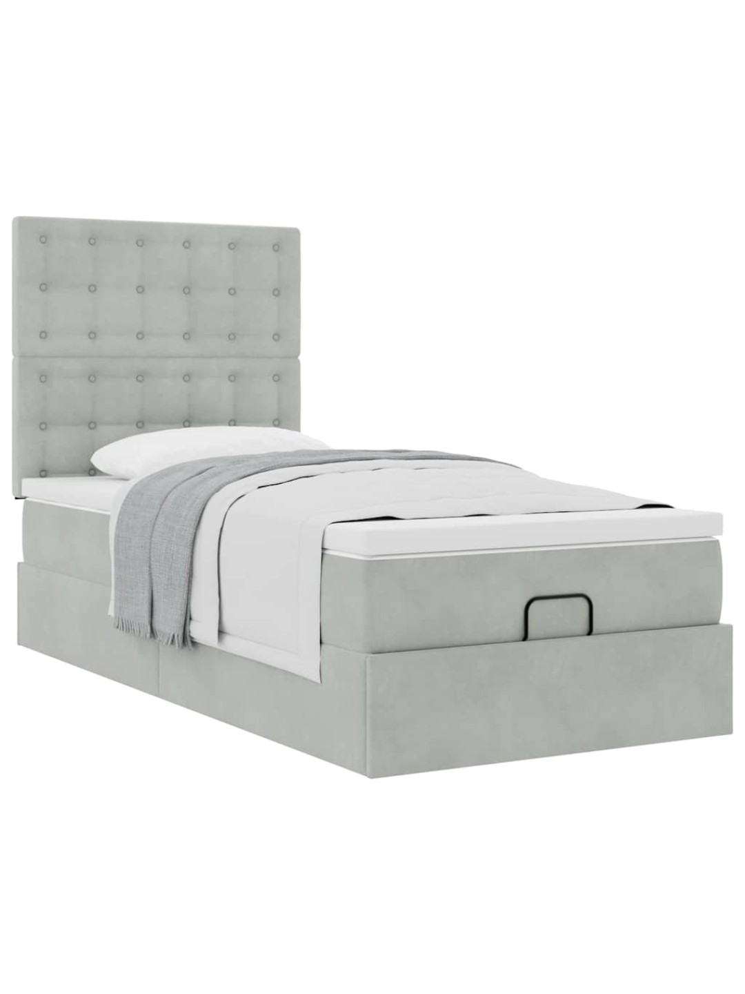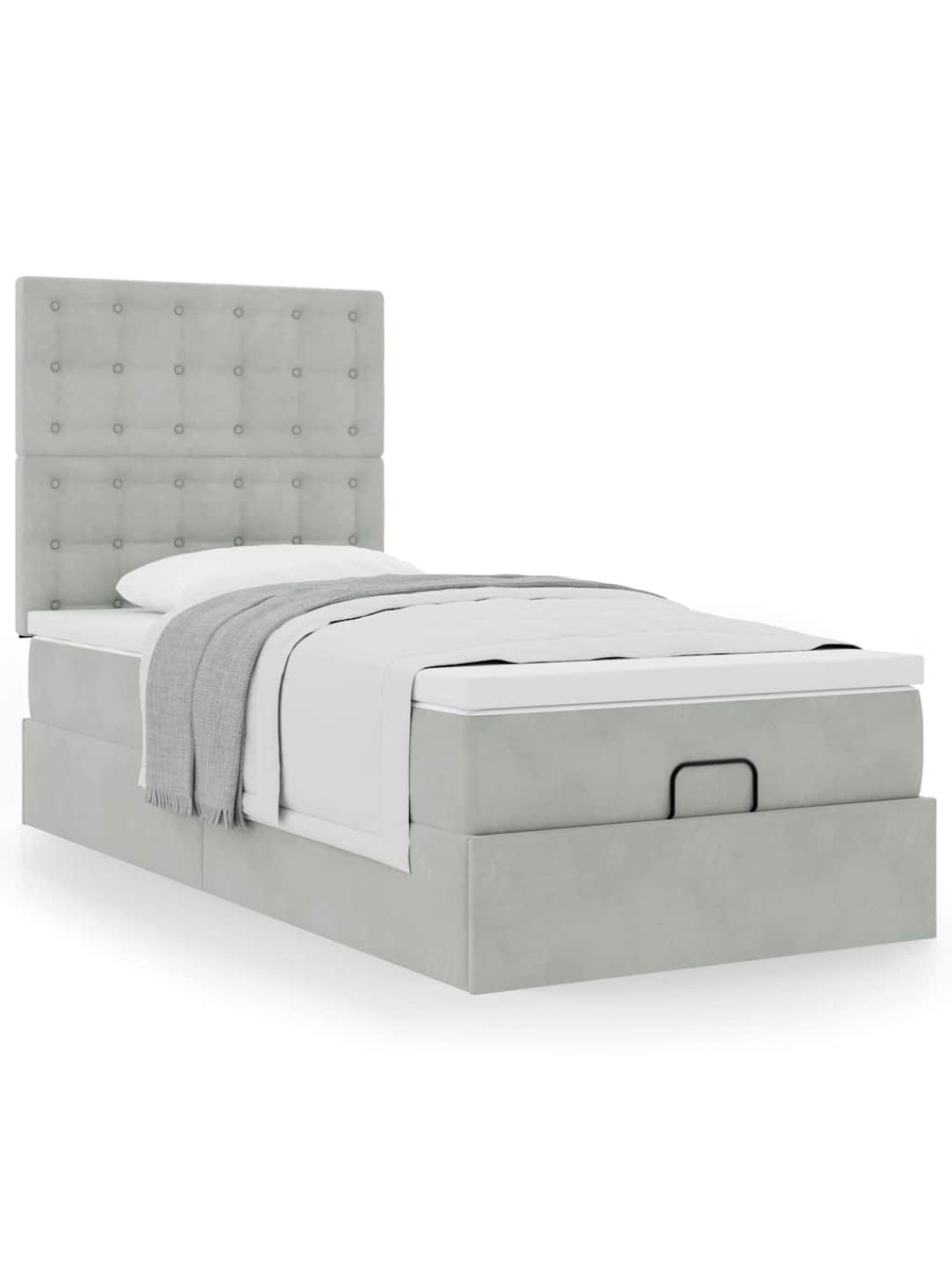 Ottomani voodiraam madratsitega, helehall, 100x200 cm, samet