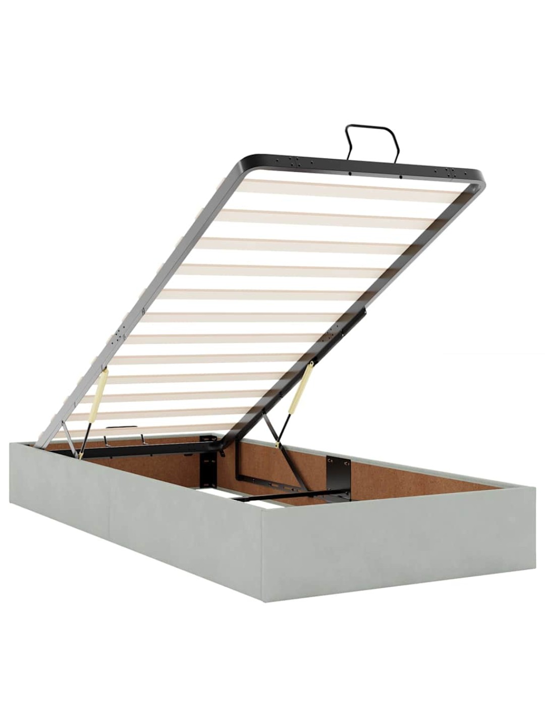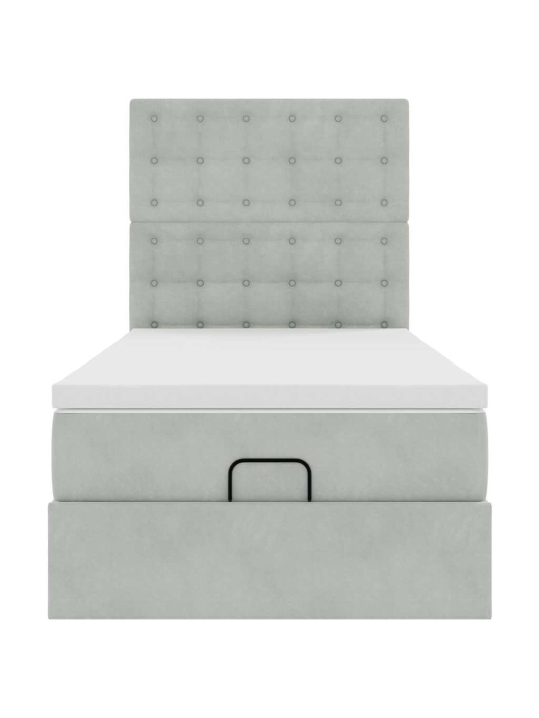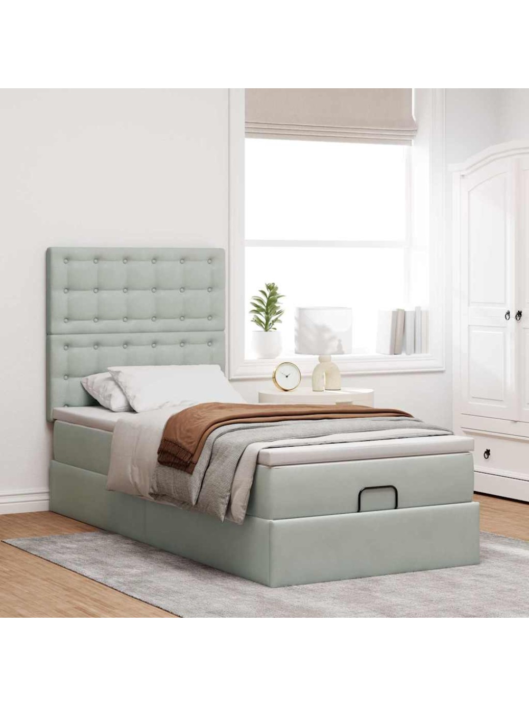 Ottomani voodiraam madratsitega, helehall, 100x200 cm, samet