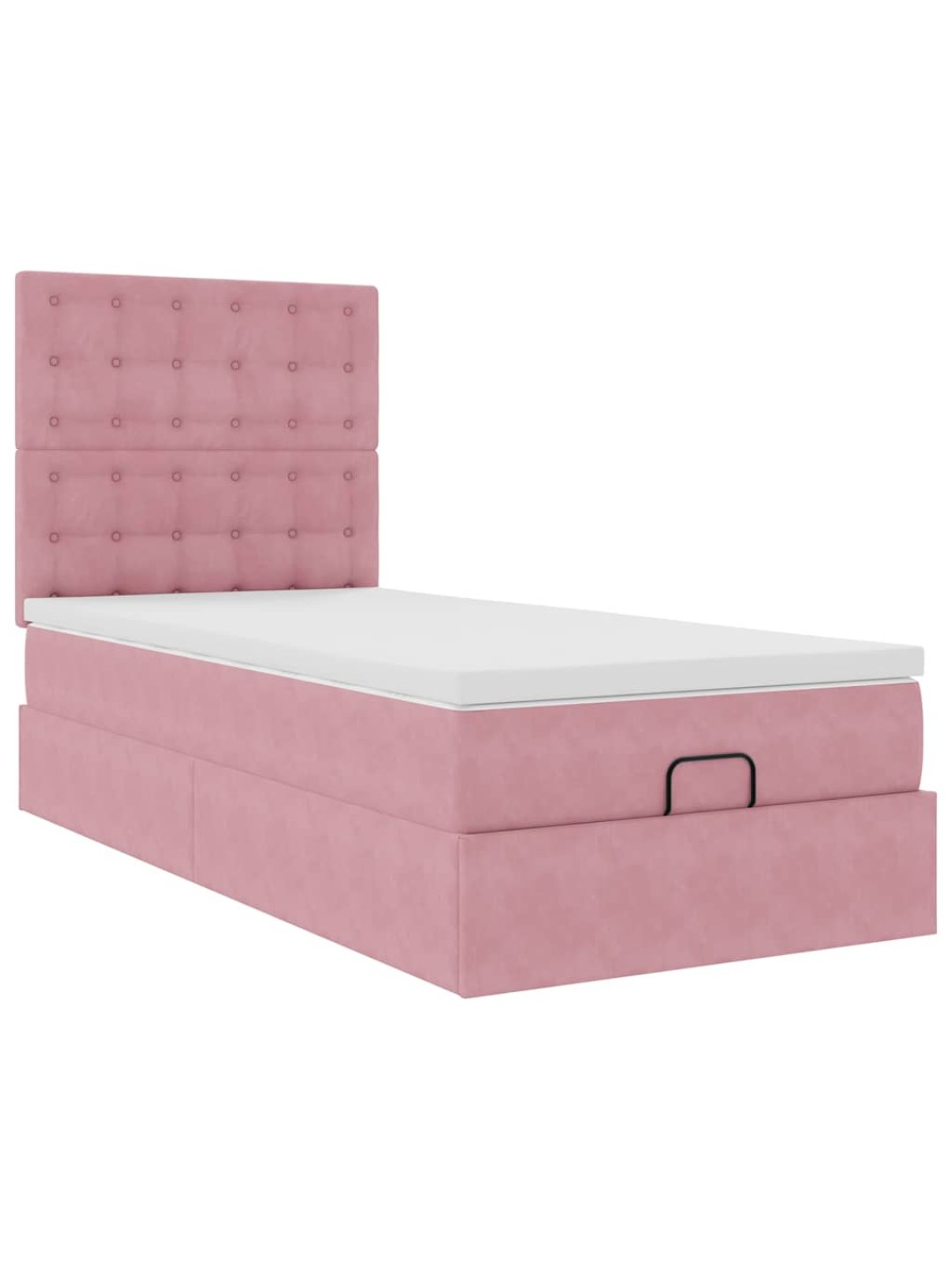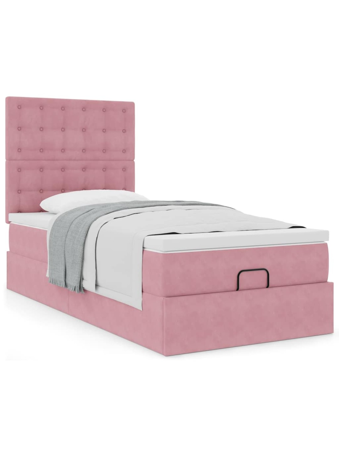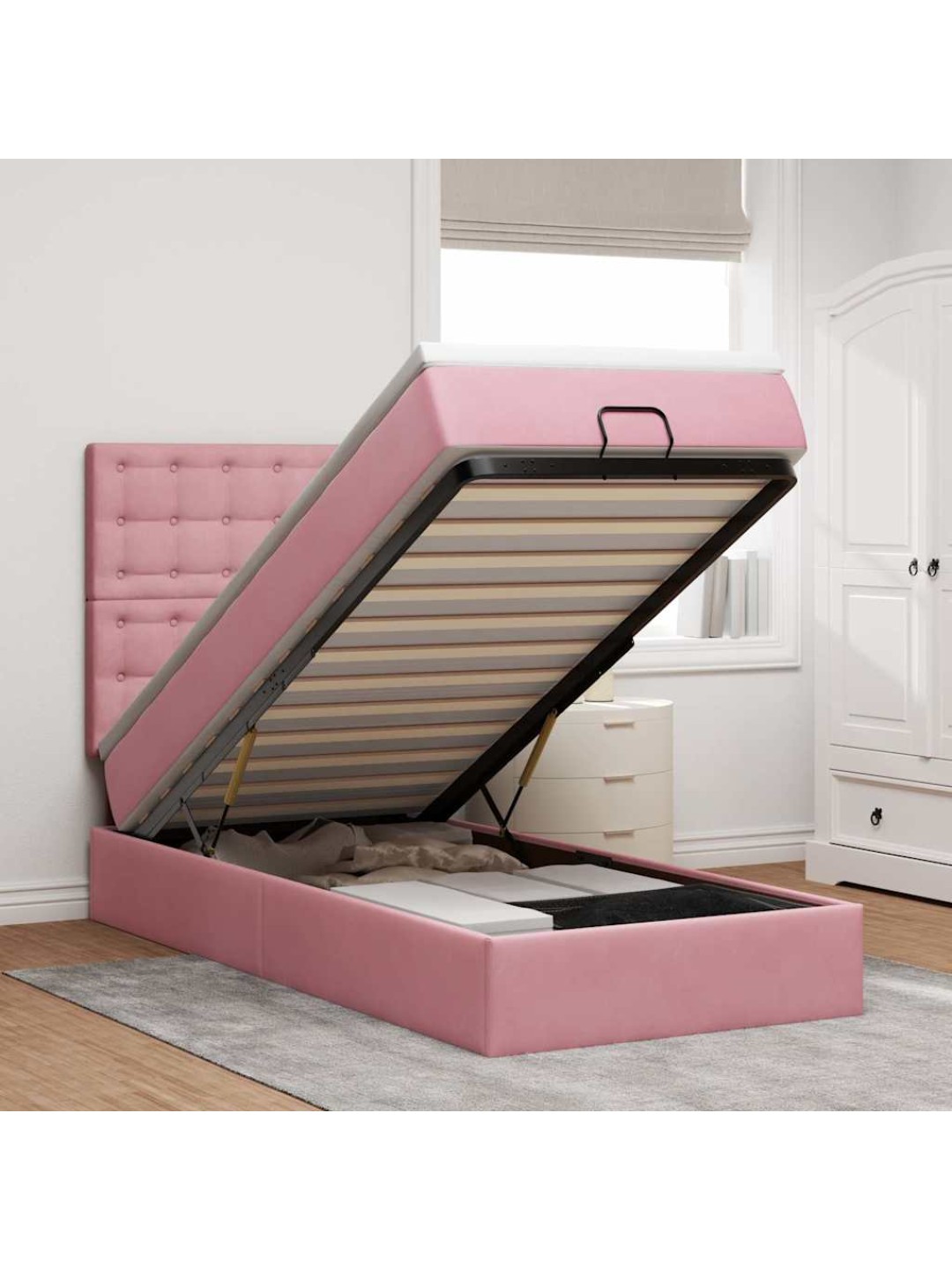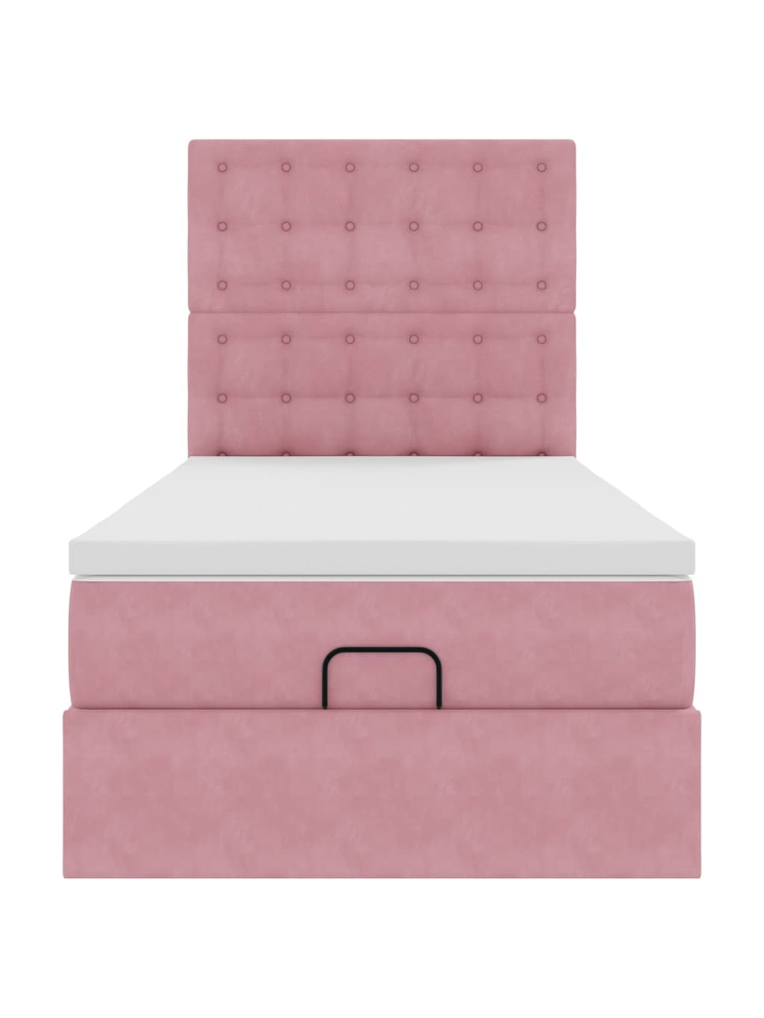 Ottomani voodiraam madratsitega, roosa, 100x200cm, samet