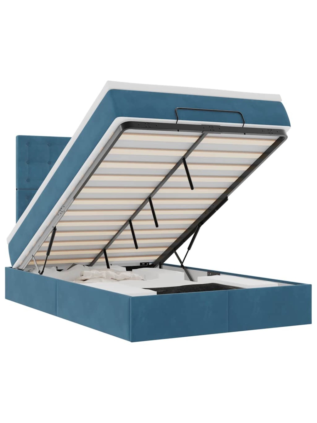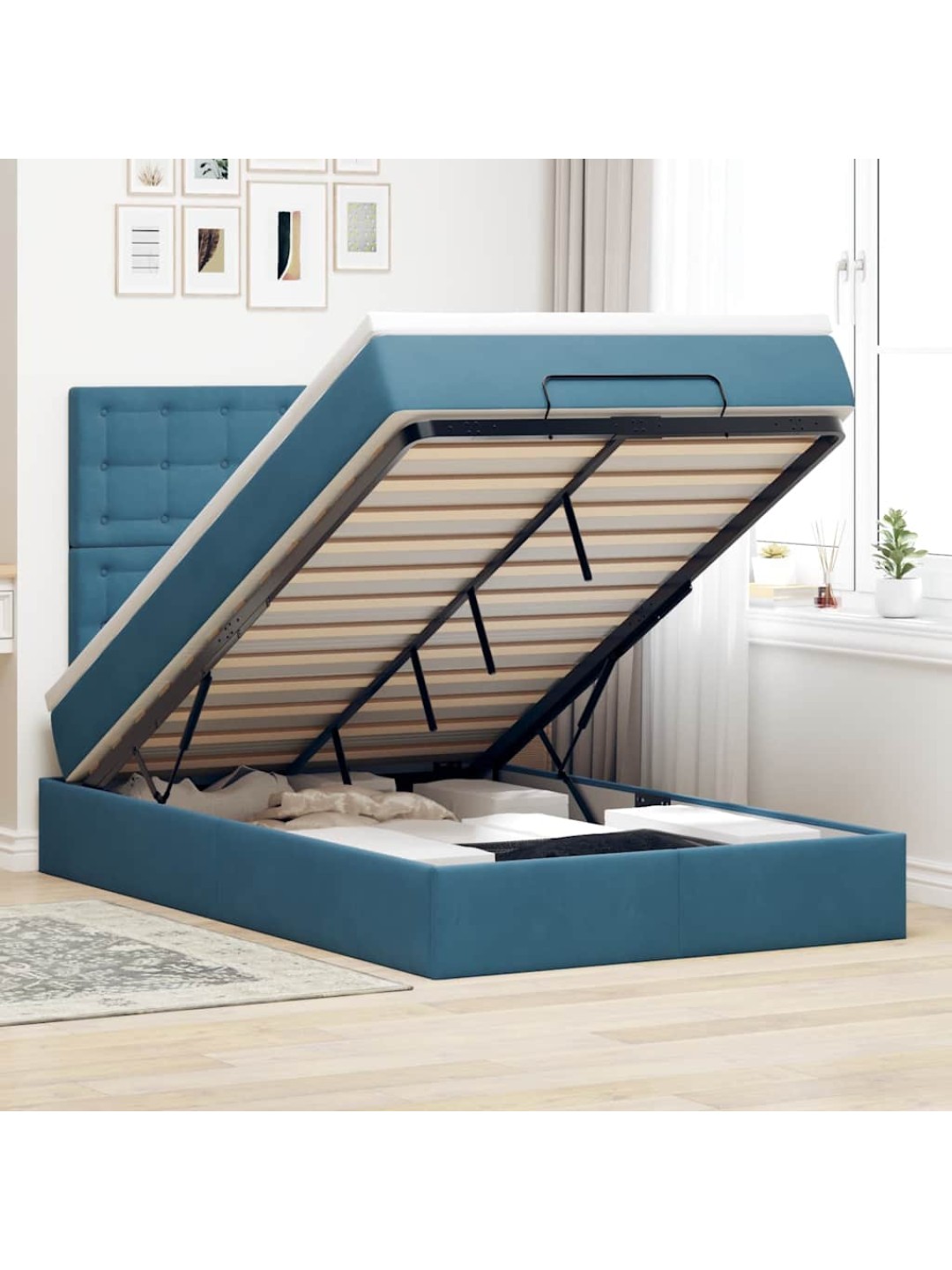 Ottomani voodiraam madratsitega, tumesinine, 120x200 cm, samet