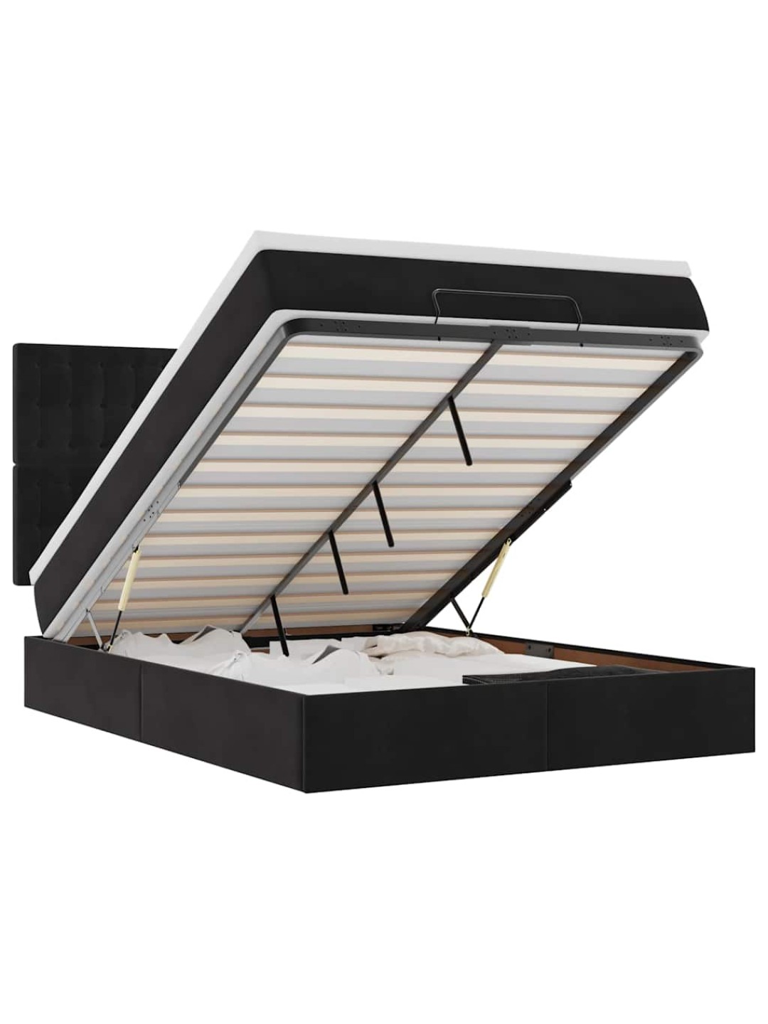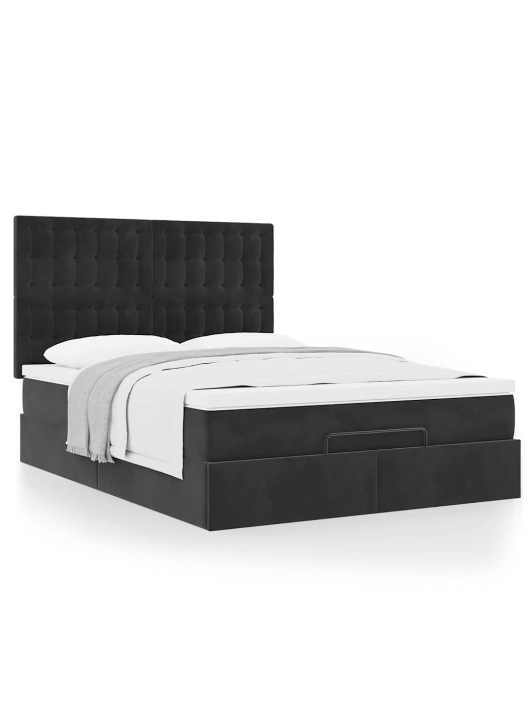 Ottomani voodi madratsitega, must, 140x190cm, samet