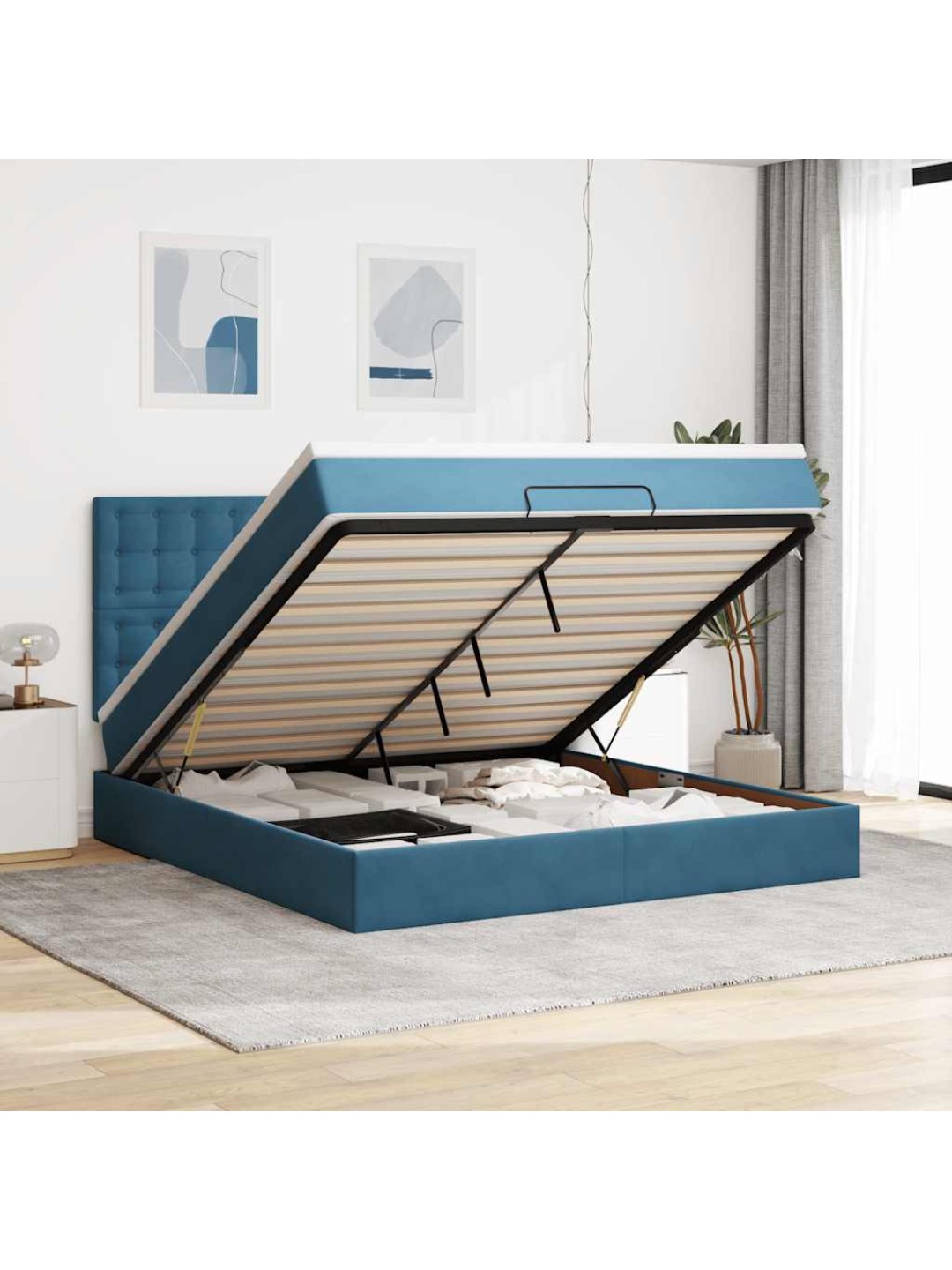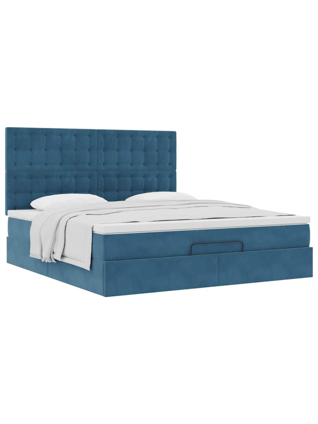 Ottomani voodiraam madratsitega, tumesinine, 180x200 cm, samet