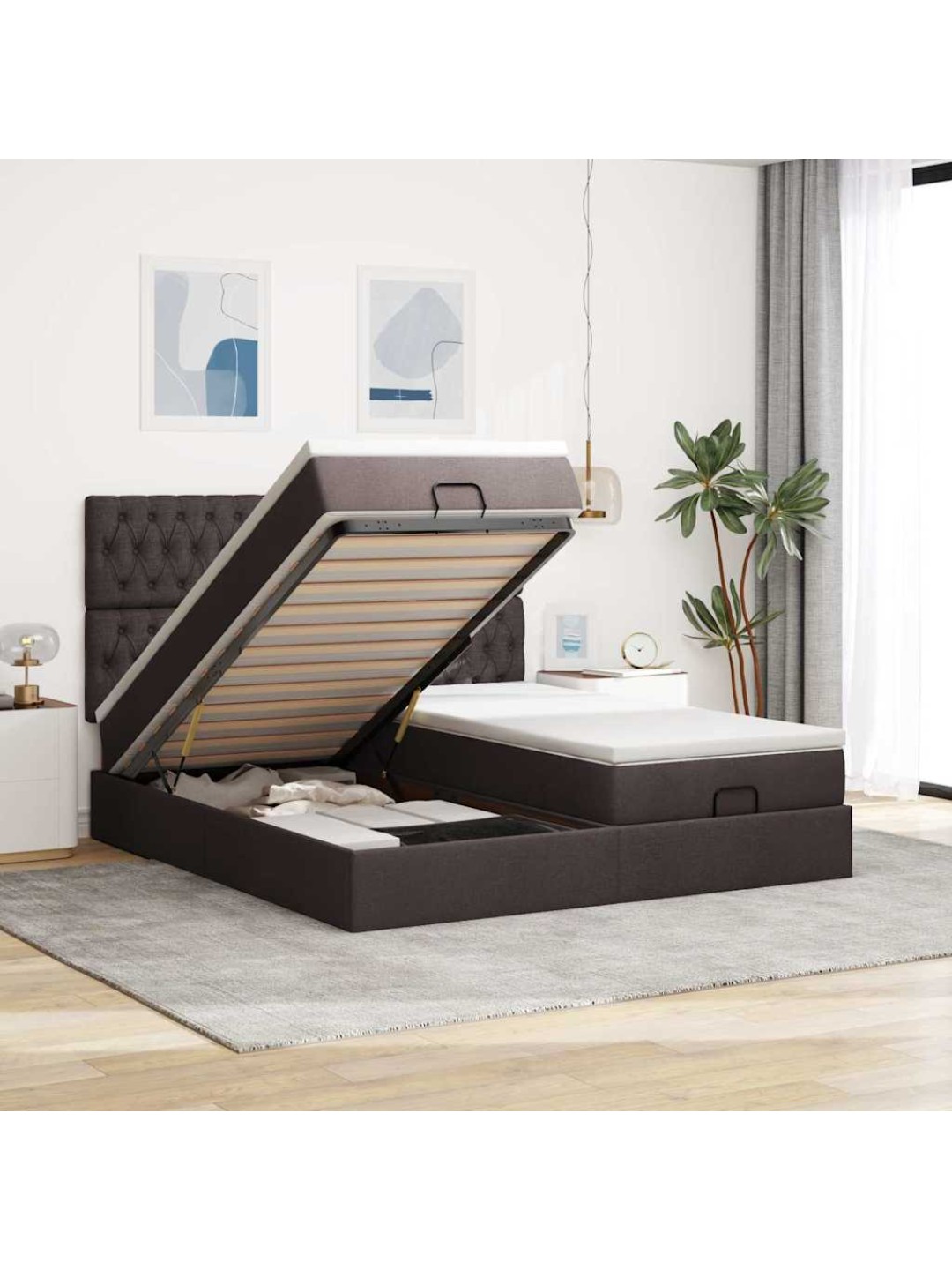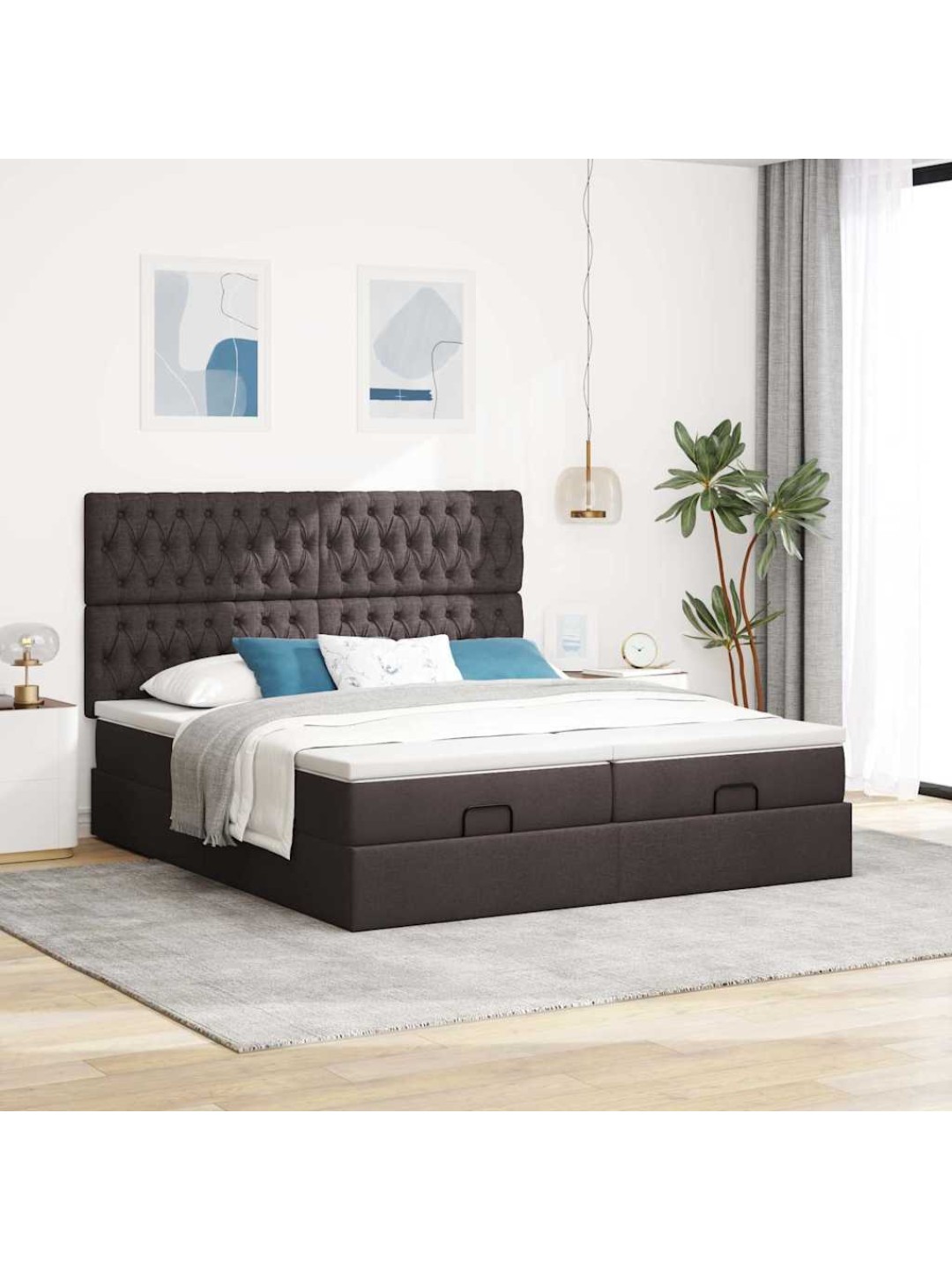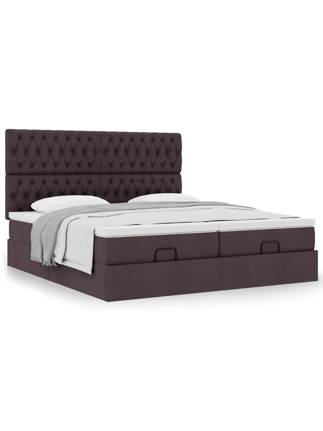 Ottomani voodiraam madratsitega, tumepruun, 200x200cm, kangas