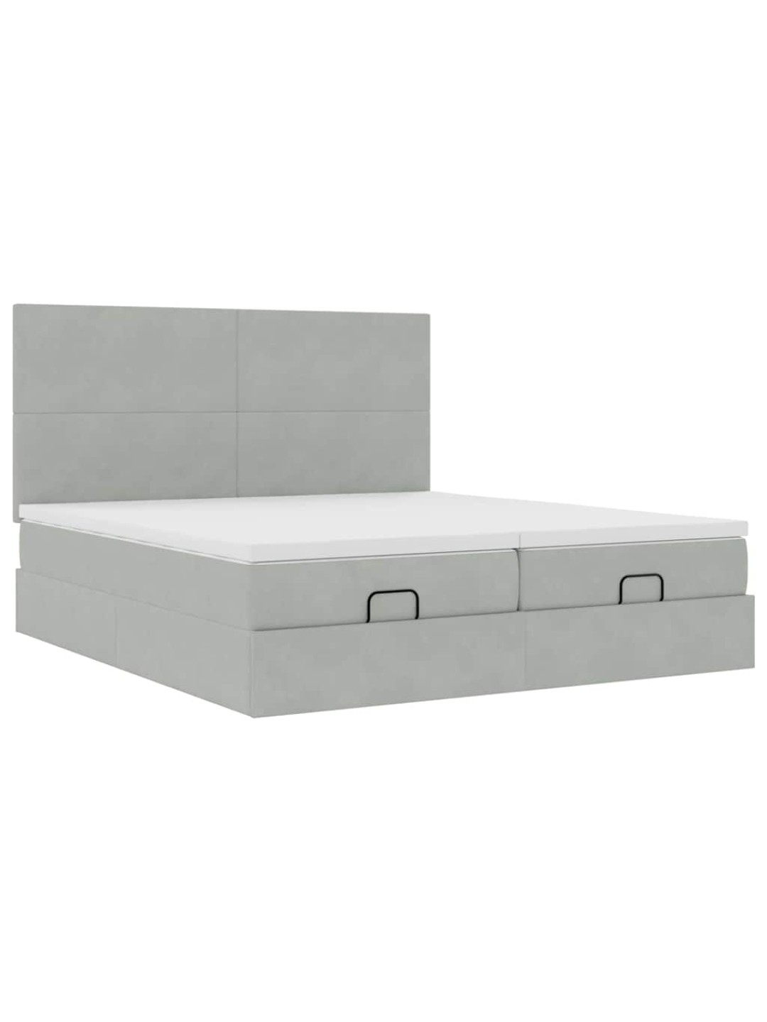 Ottomani voodiraam madratsitega, helehall, 200x200 cm, samet