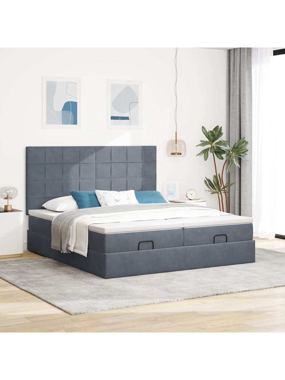 Ottomani voodiraam madratsitega, tumehall, 160x200 cm, samet