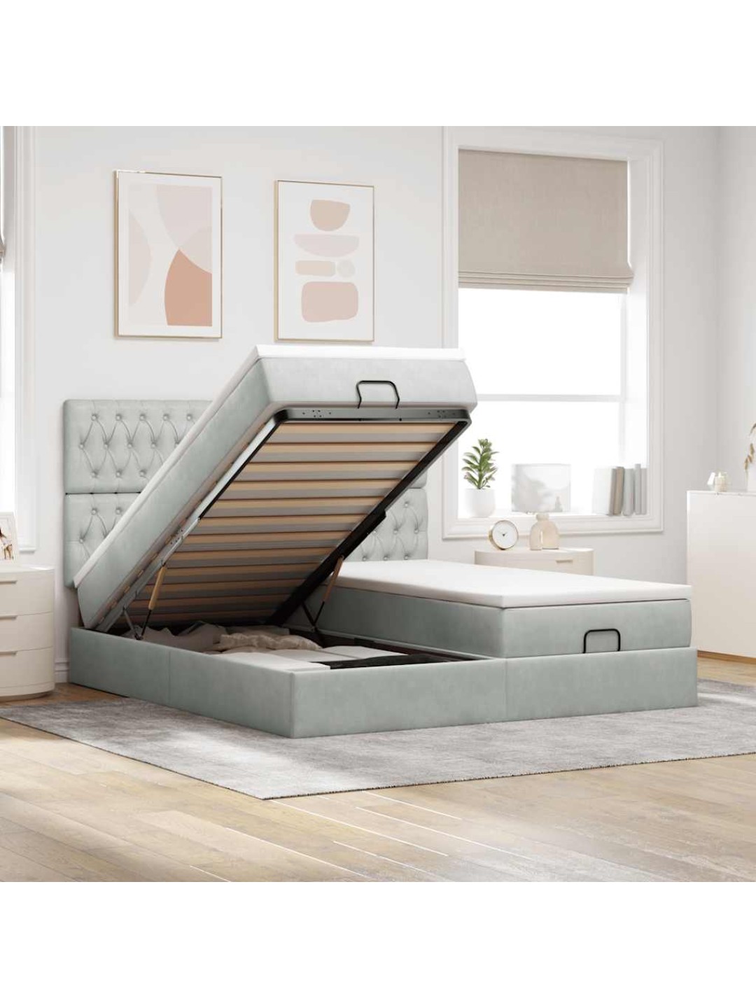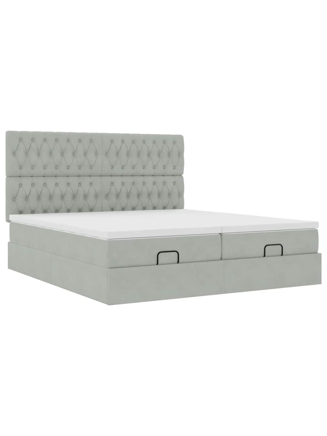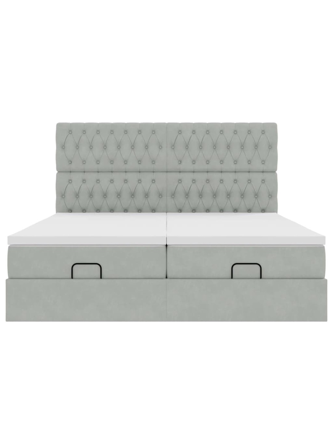 Ottomani voodiraam madratsitega, helehall, 160x200 cm, samet