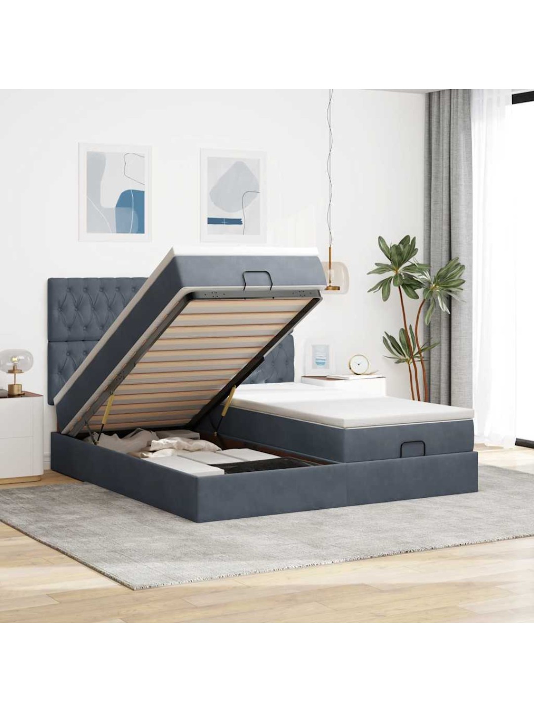 Ottomani voodiraam madratsitega, tumehall, 160x200 cm, samet