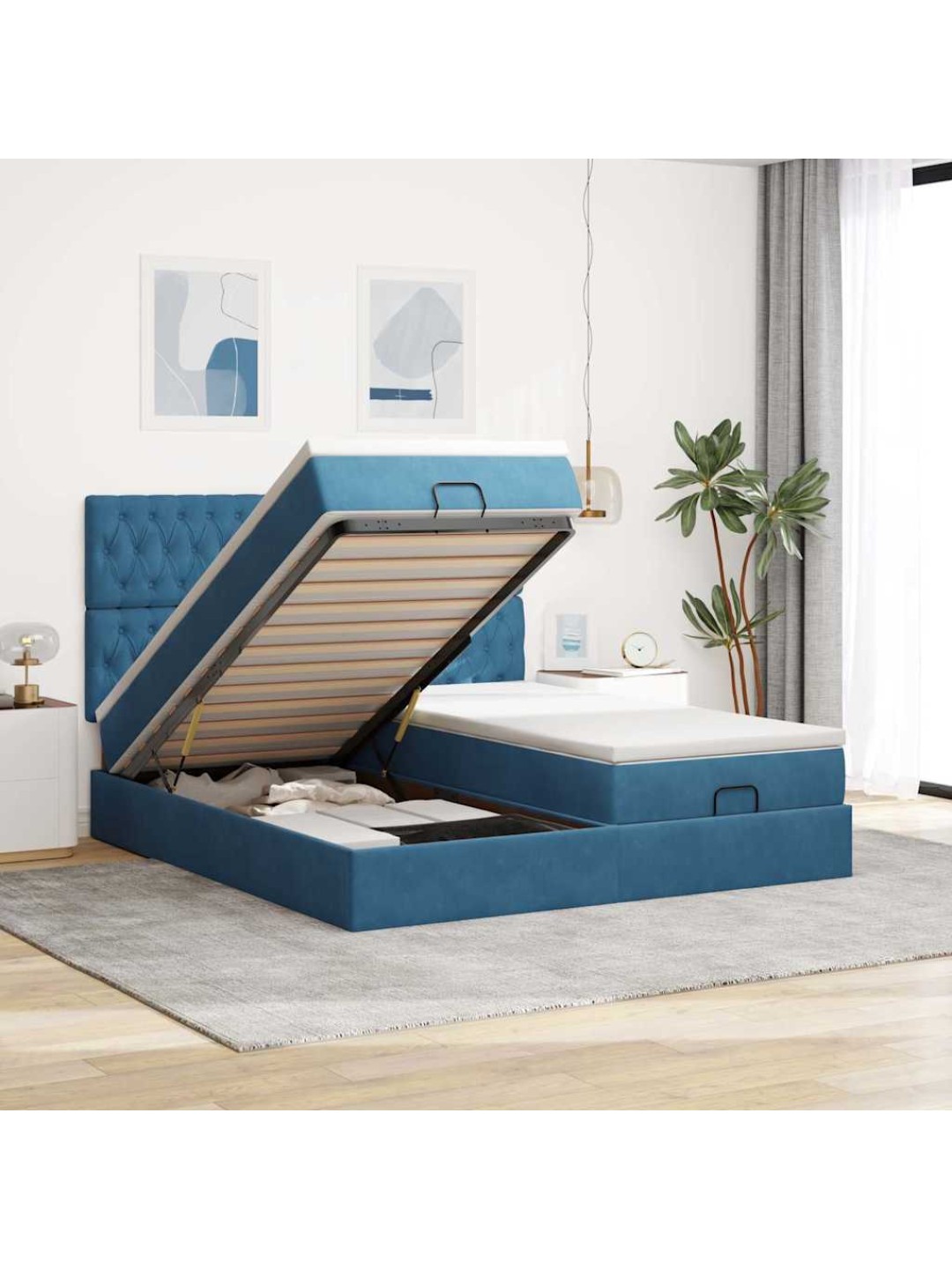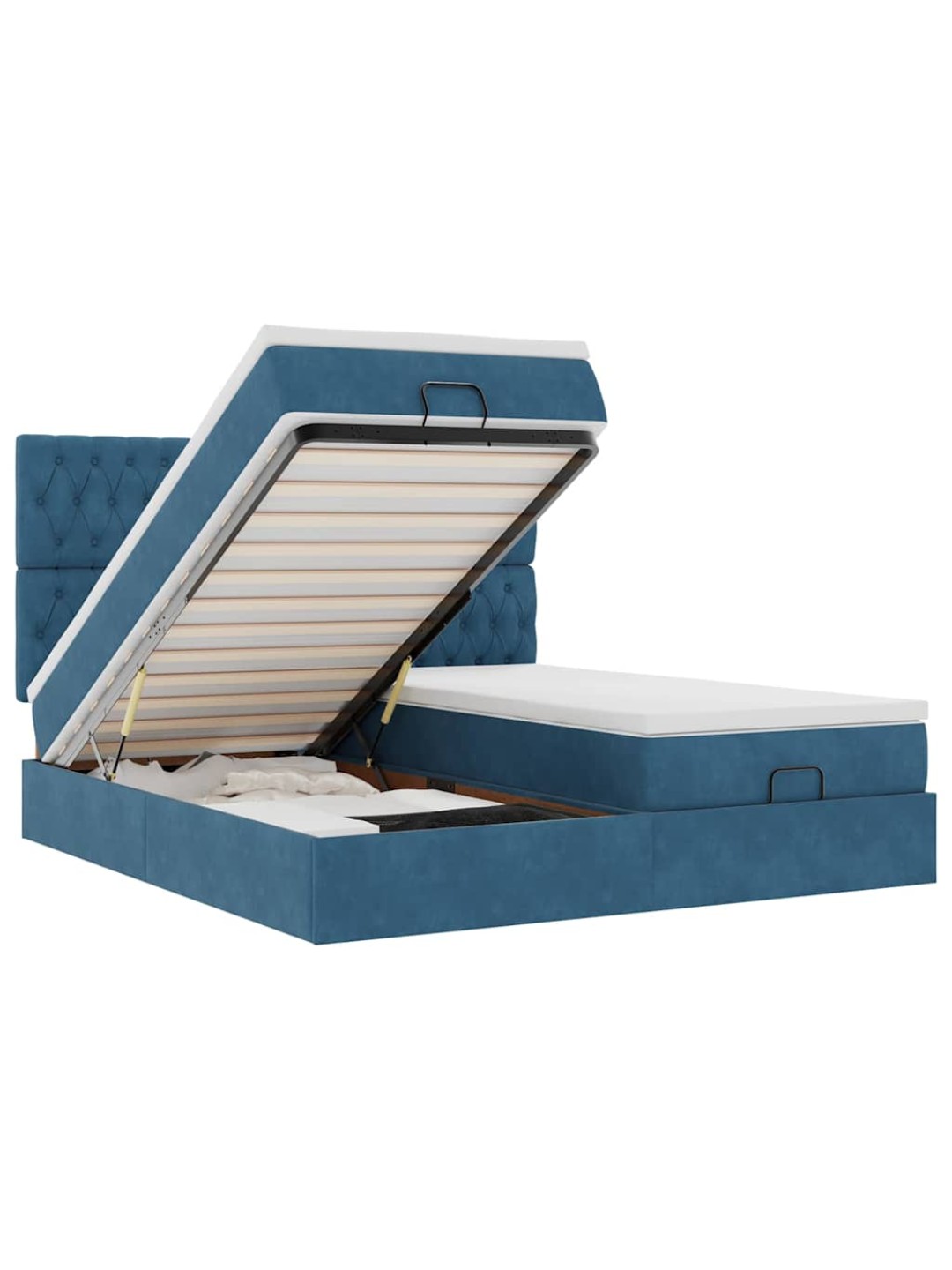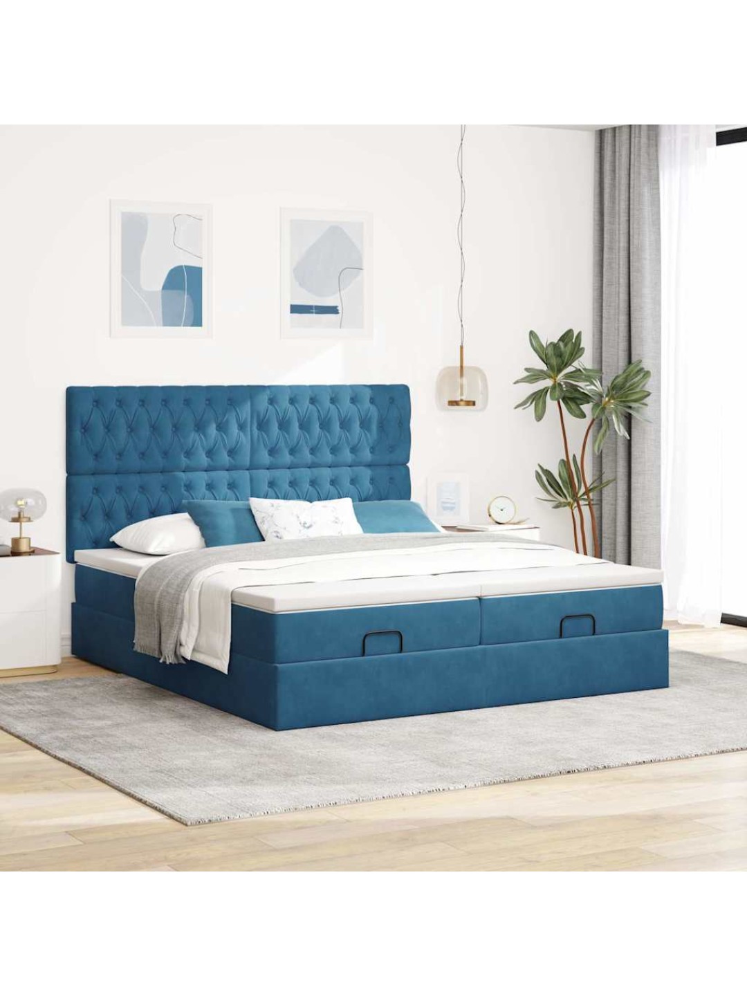 Ottomani voodiraam madratsitega, tumesinine, 200x200 cm, samet