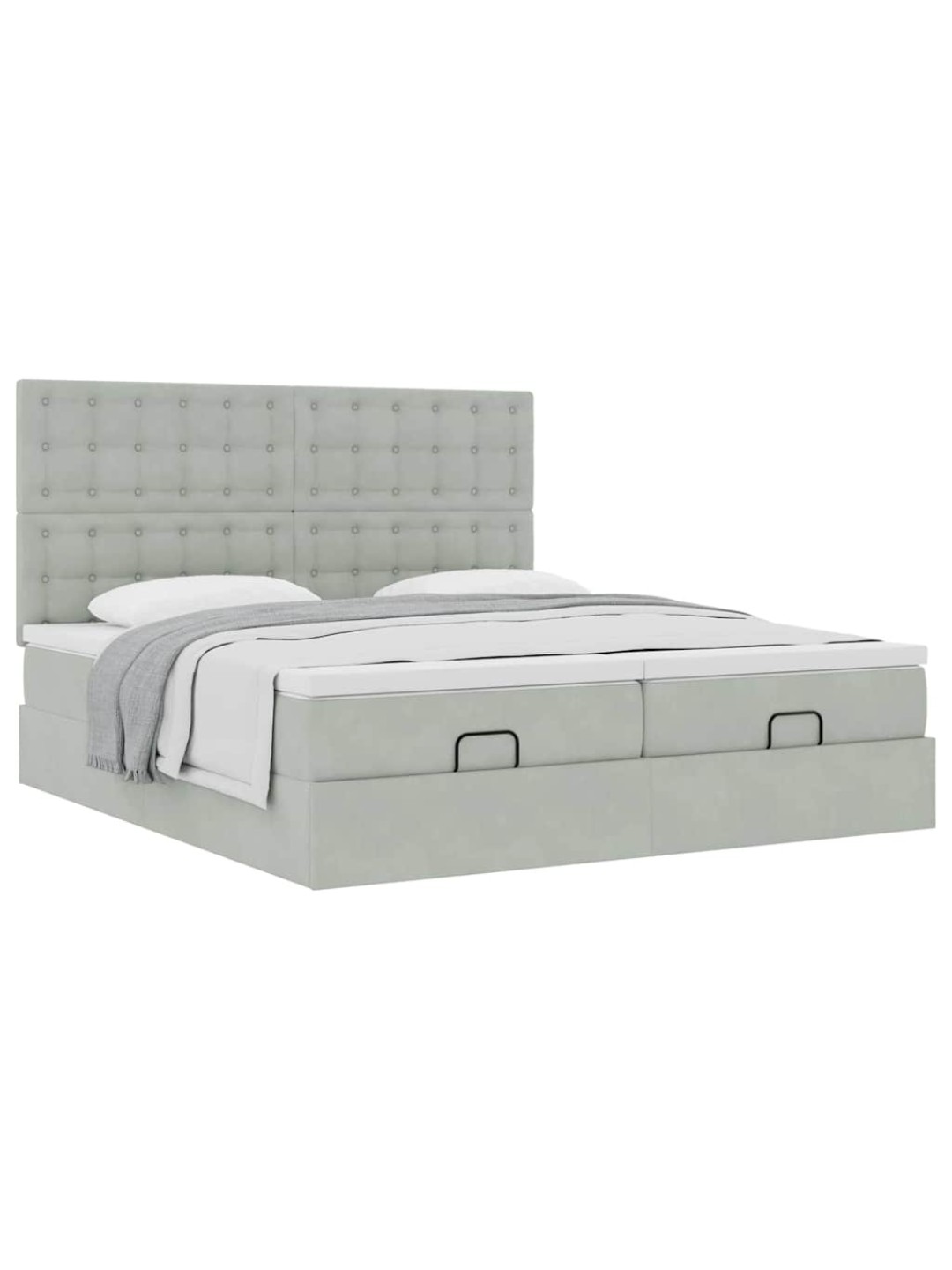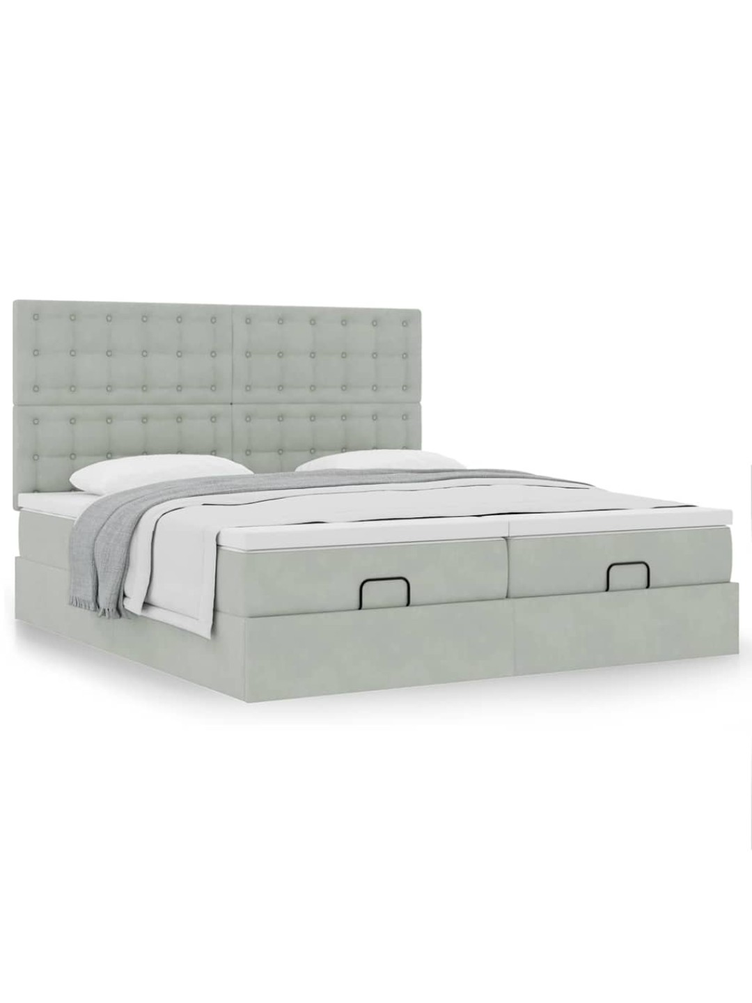Ottomani voodiraam madratsitega, helehall, 160x200 cm, samet