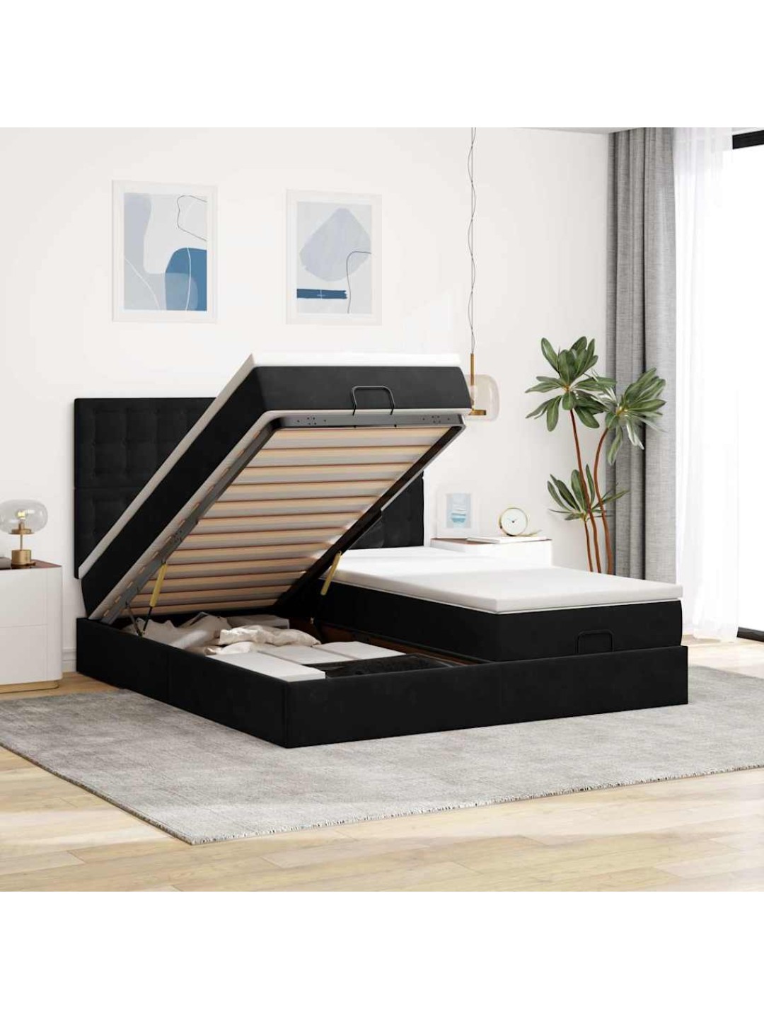 Ottomani voodiraam madratsitega, must, 180x200 cm, samet