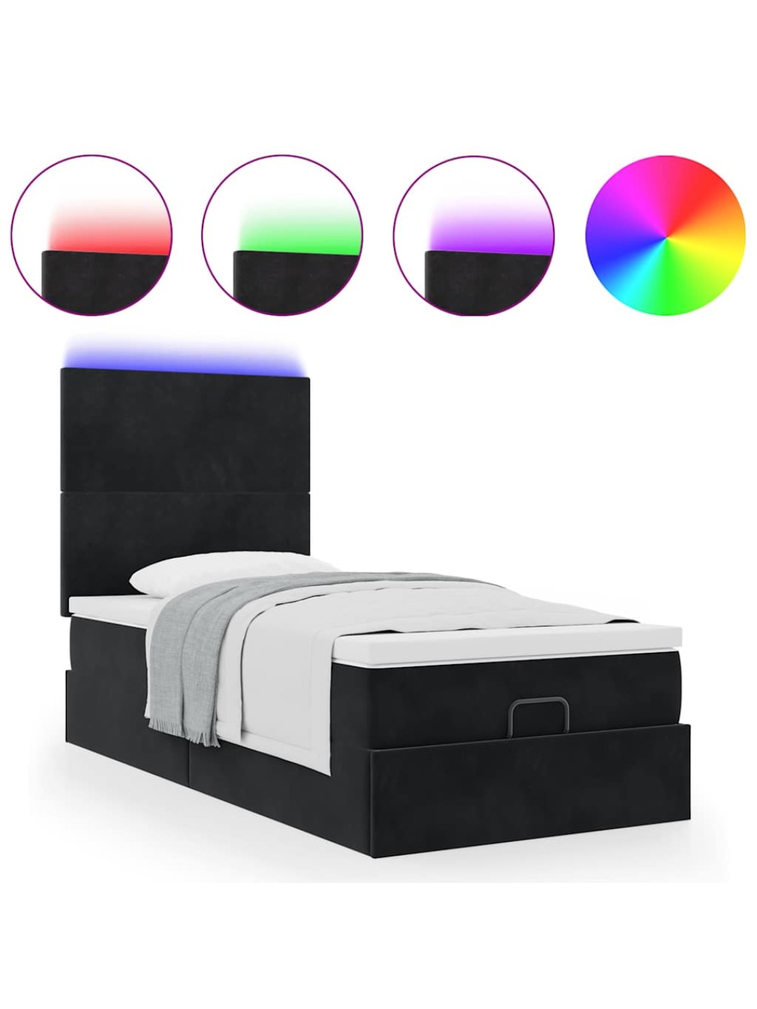 Ottomani voodiraam madratsitega, must, 90x200 cm, samet