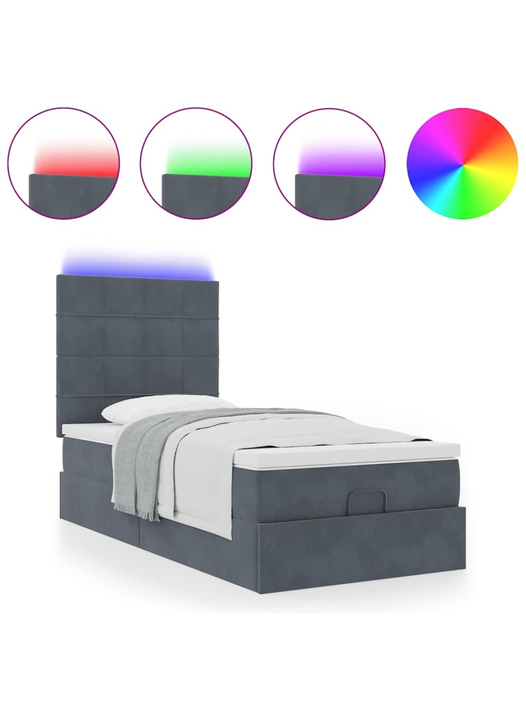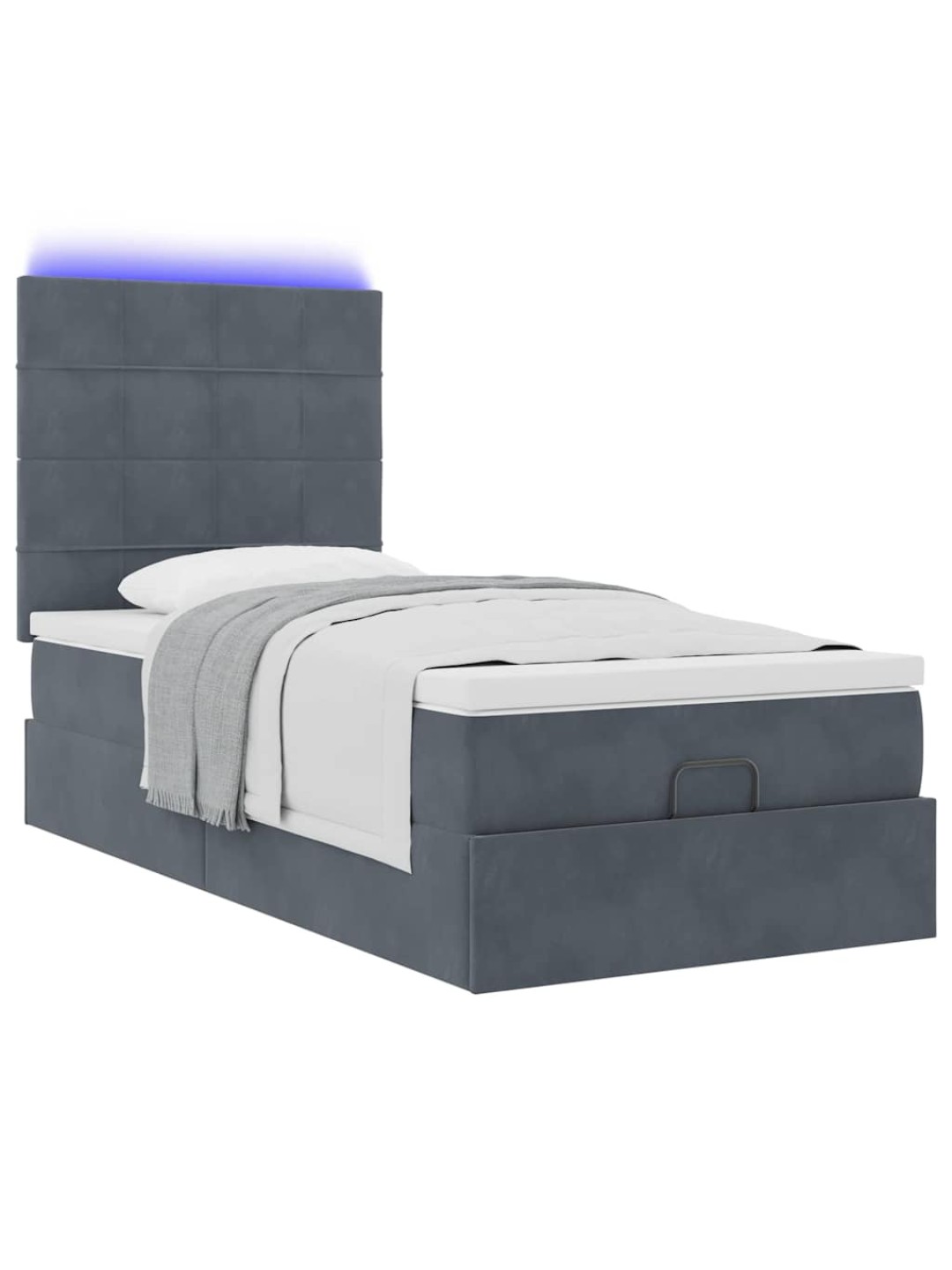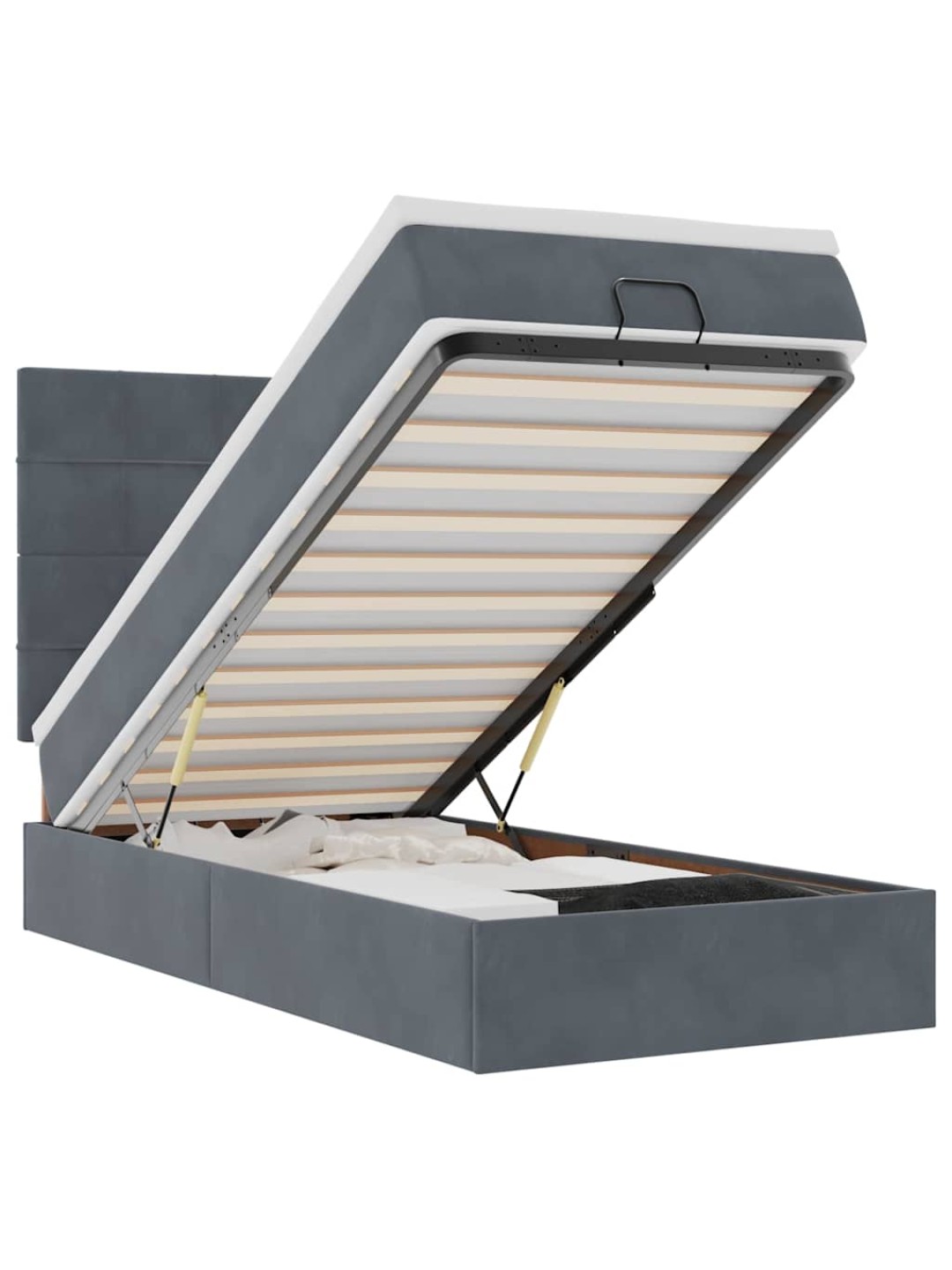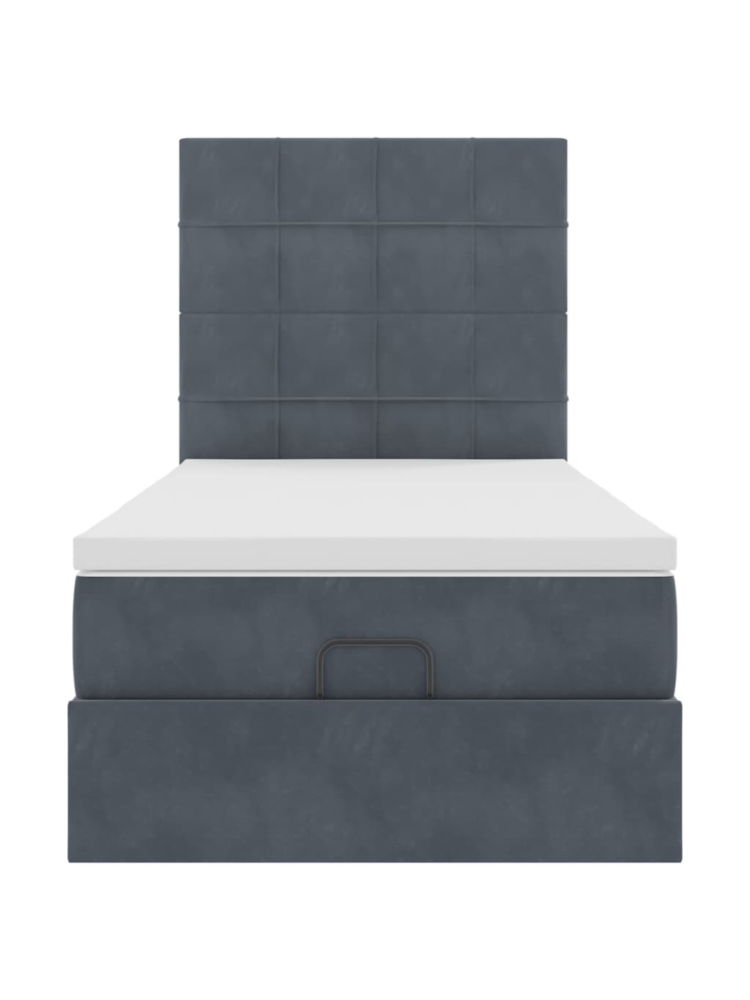 Ottomani voodiraam madratsitega, tumehall, 80x200 cm, samet