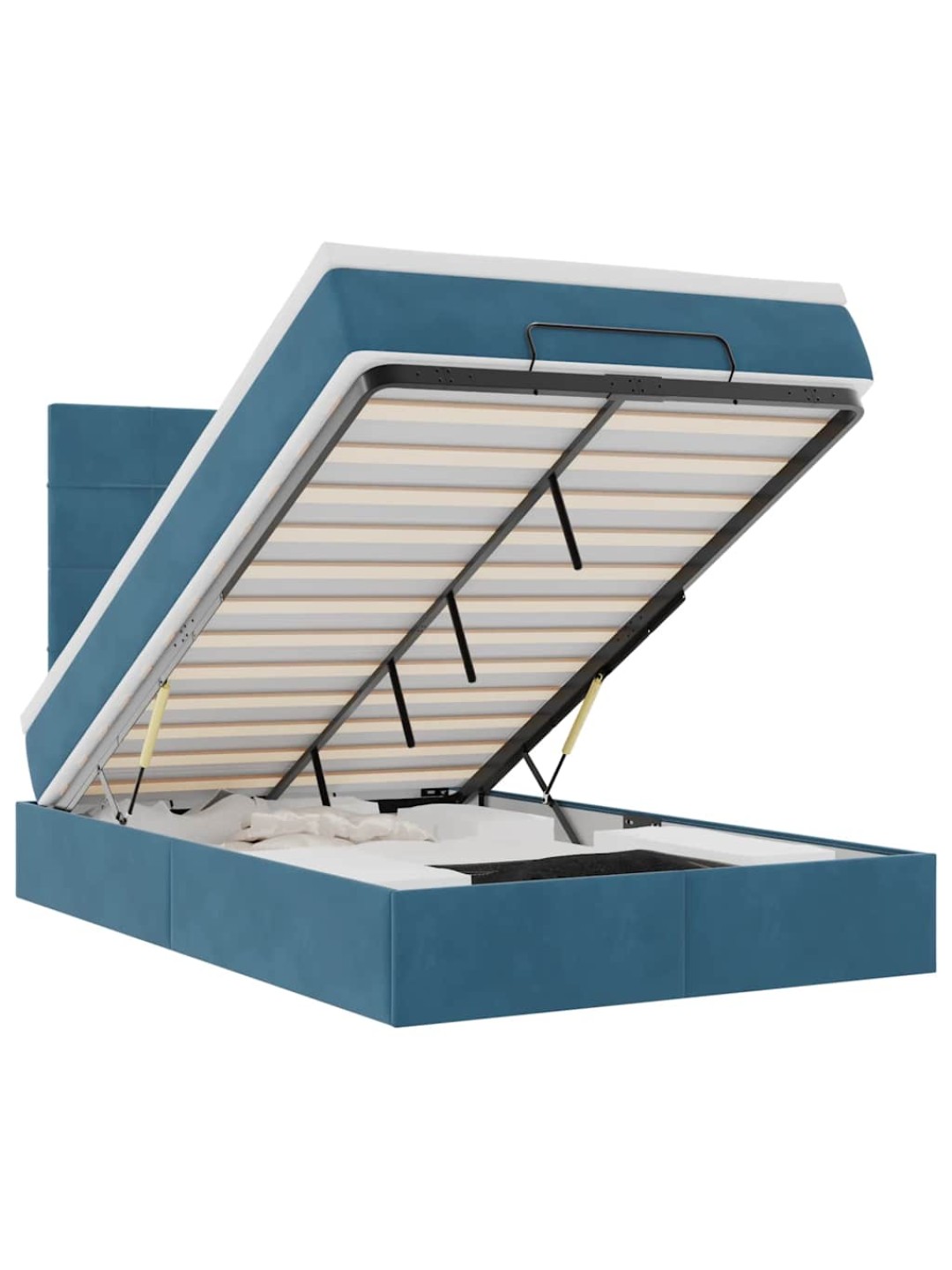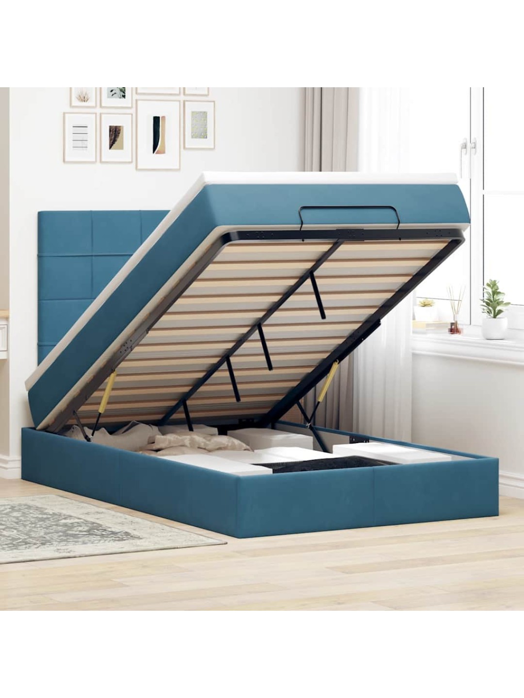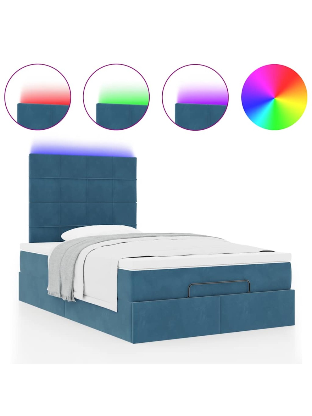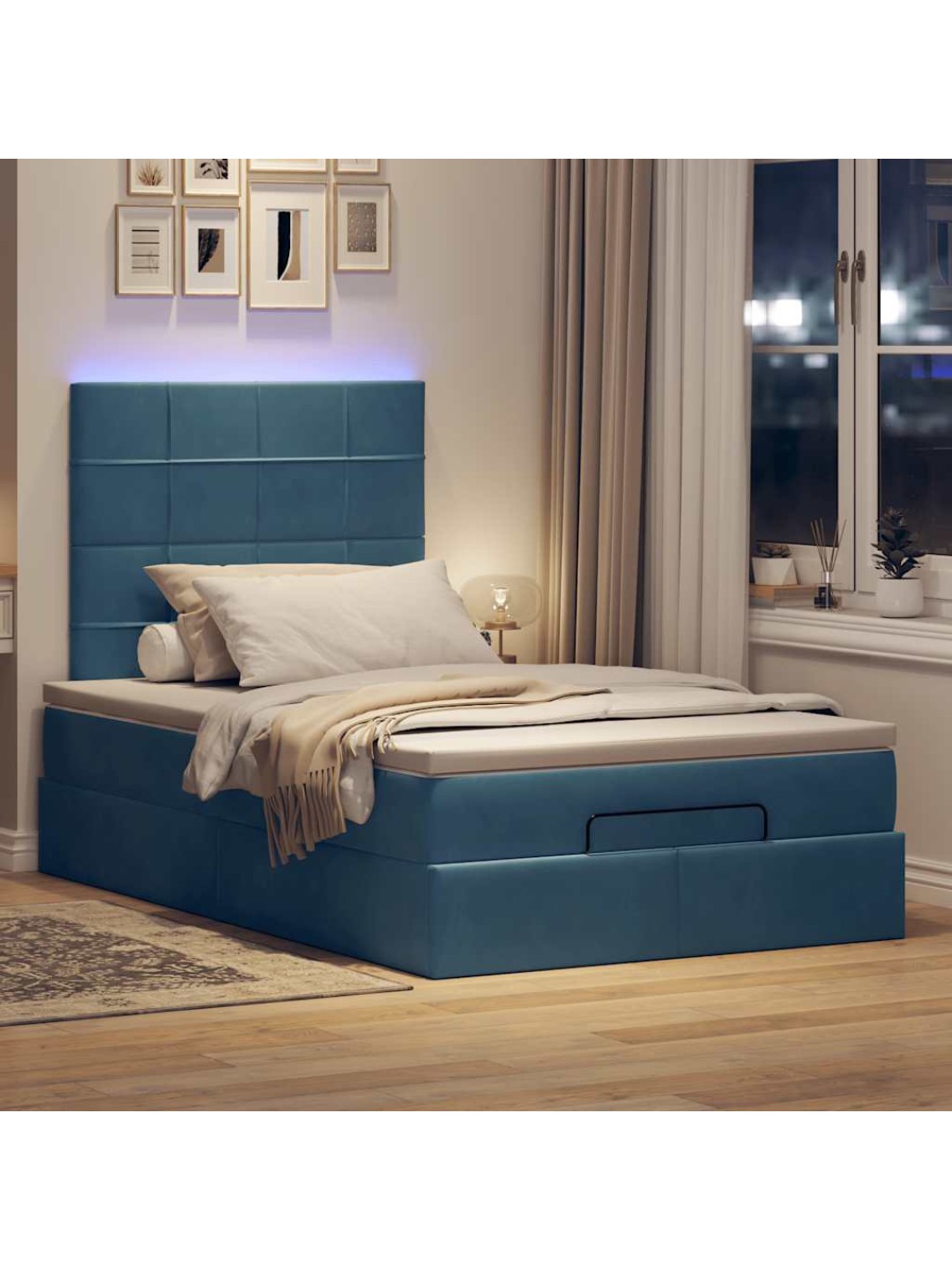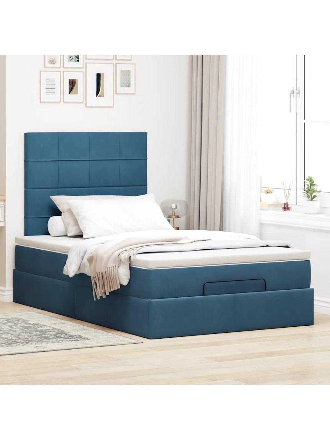 Ottomani voodiraam madratsitega, tumesinine, 120x200 cm, samet