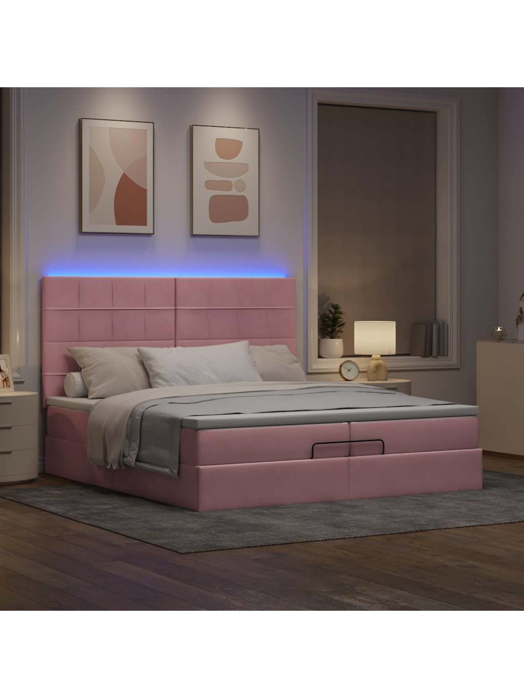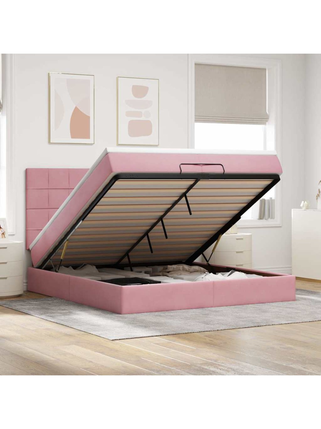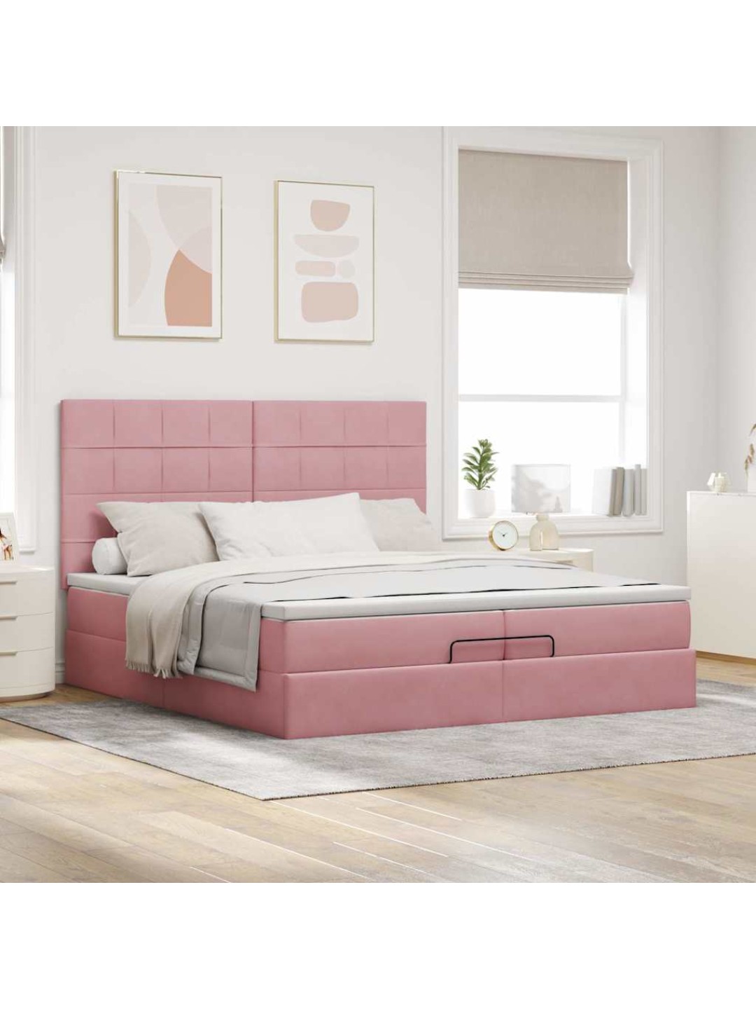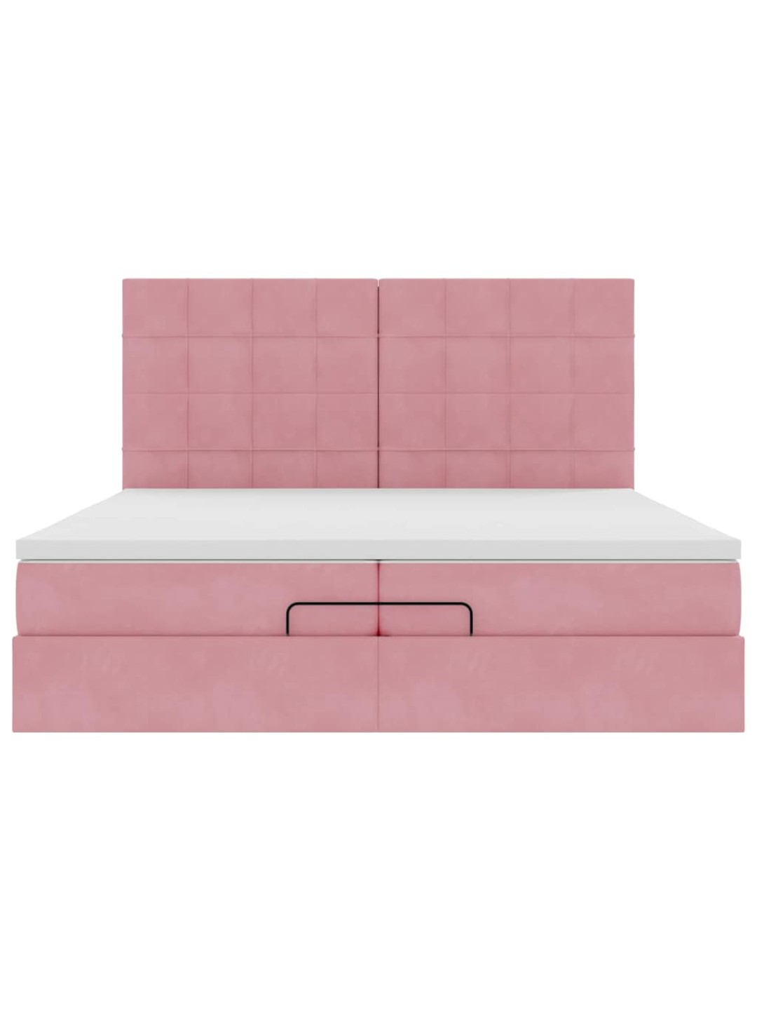 Ottomani voodiraam madratsitega, roosa, 200x200 cm, samet